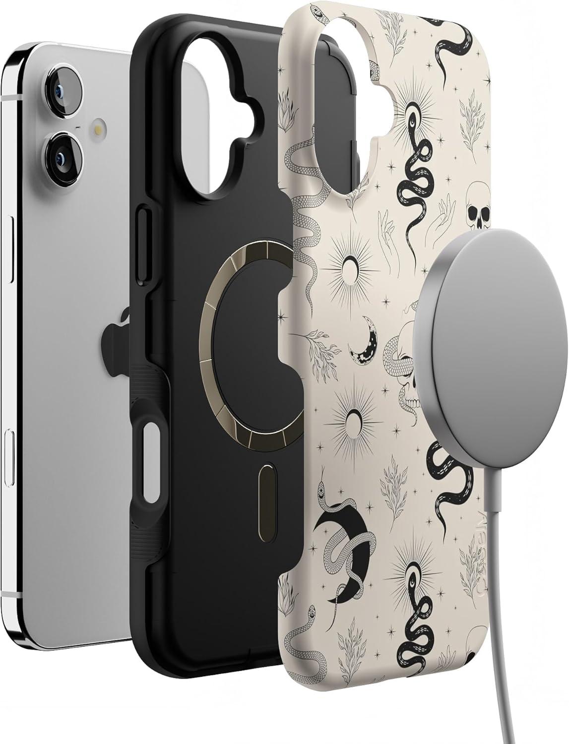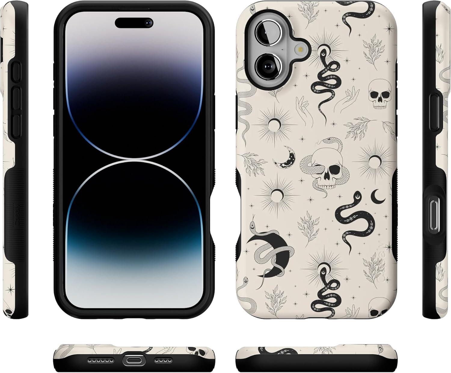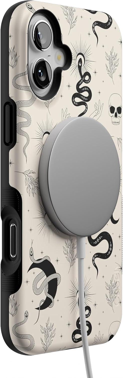 Casely iPhone 16 Case | All Smiles | Smiley Face Sticker | Bold Protective Design | MagSafe Compatible Design(No Further Explanation | Snakes & Skulls)