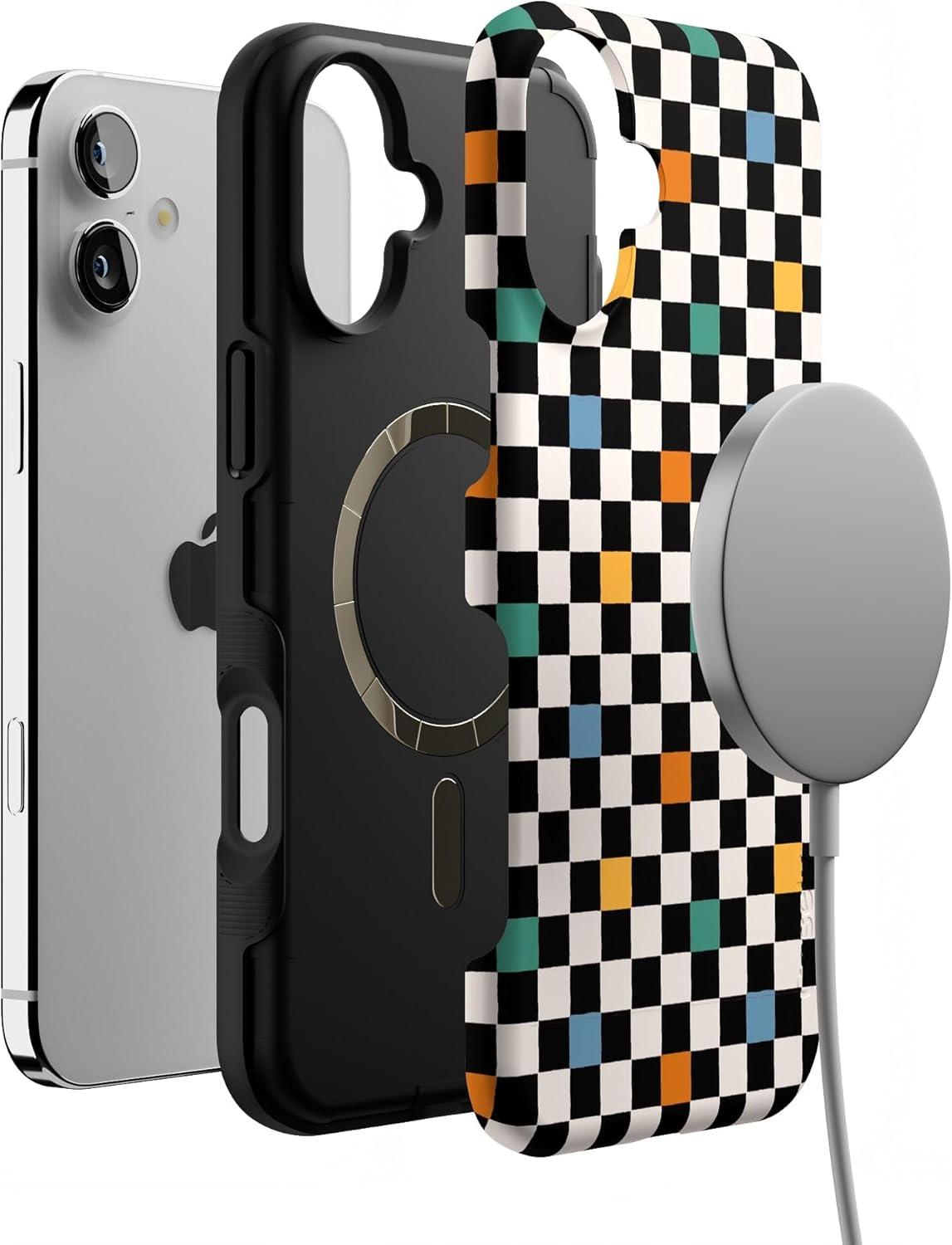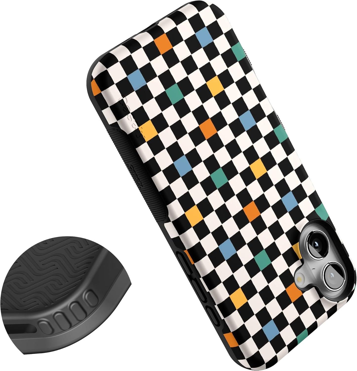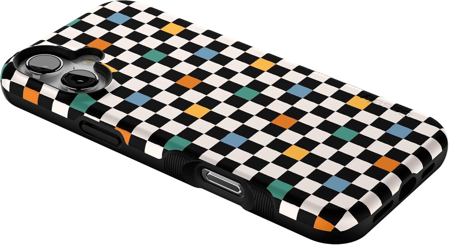Casely iPhone 16 Case | All Smiles | Smiley Face Sticker | Bold Protective Design | MagSafe Compatible Design(Old Skool | Retro Checkerboard)