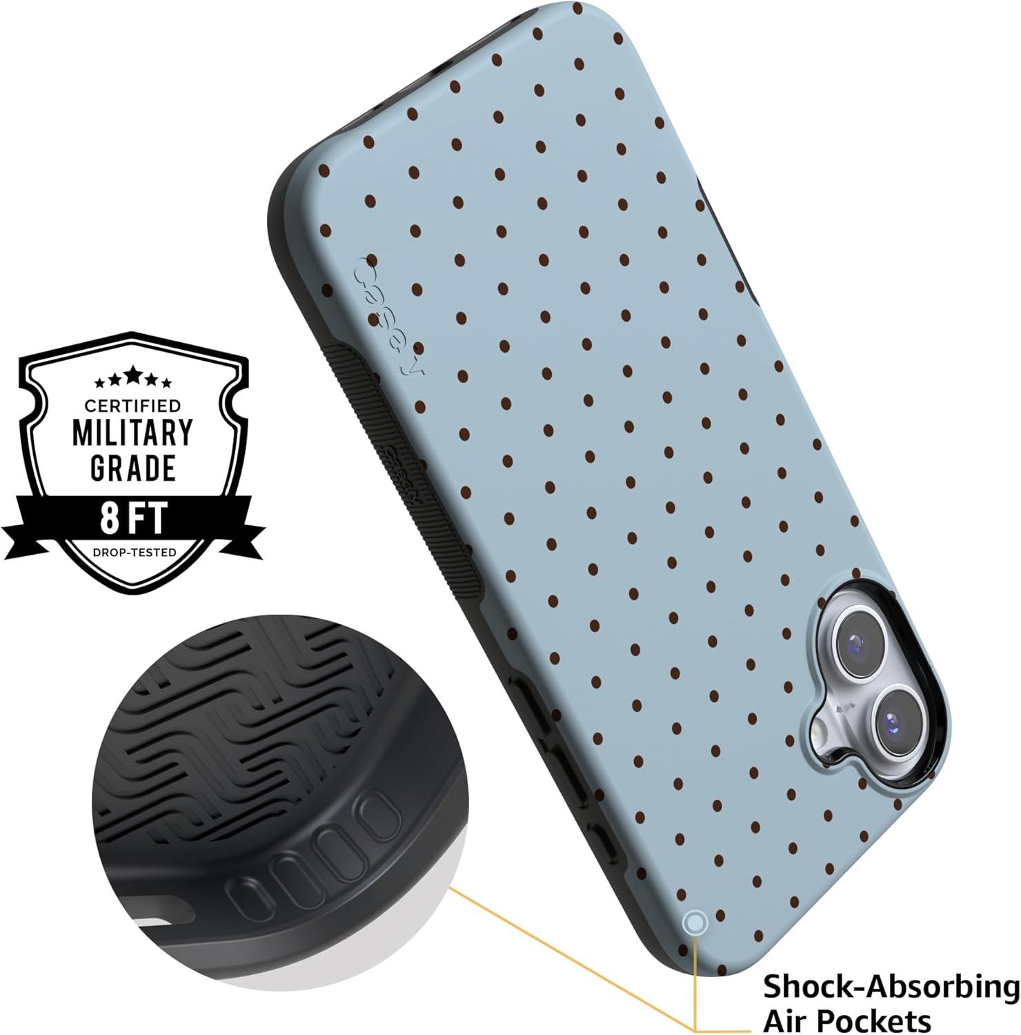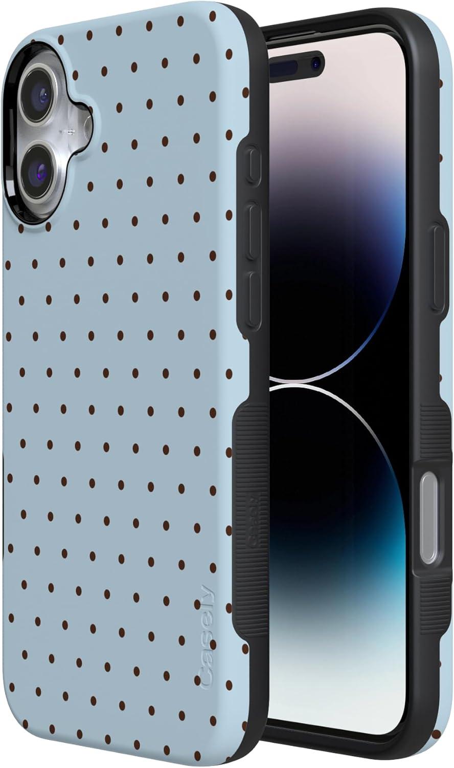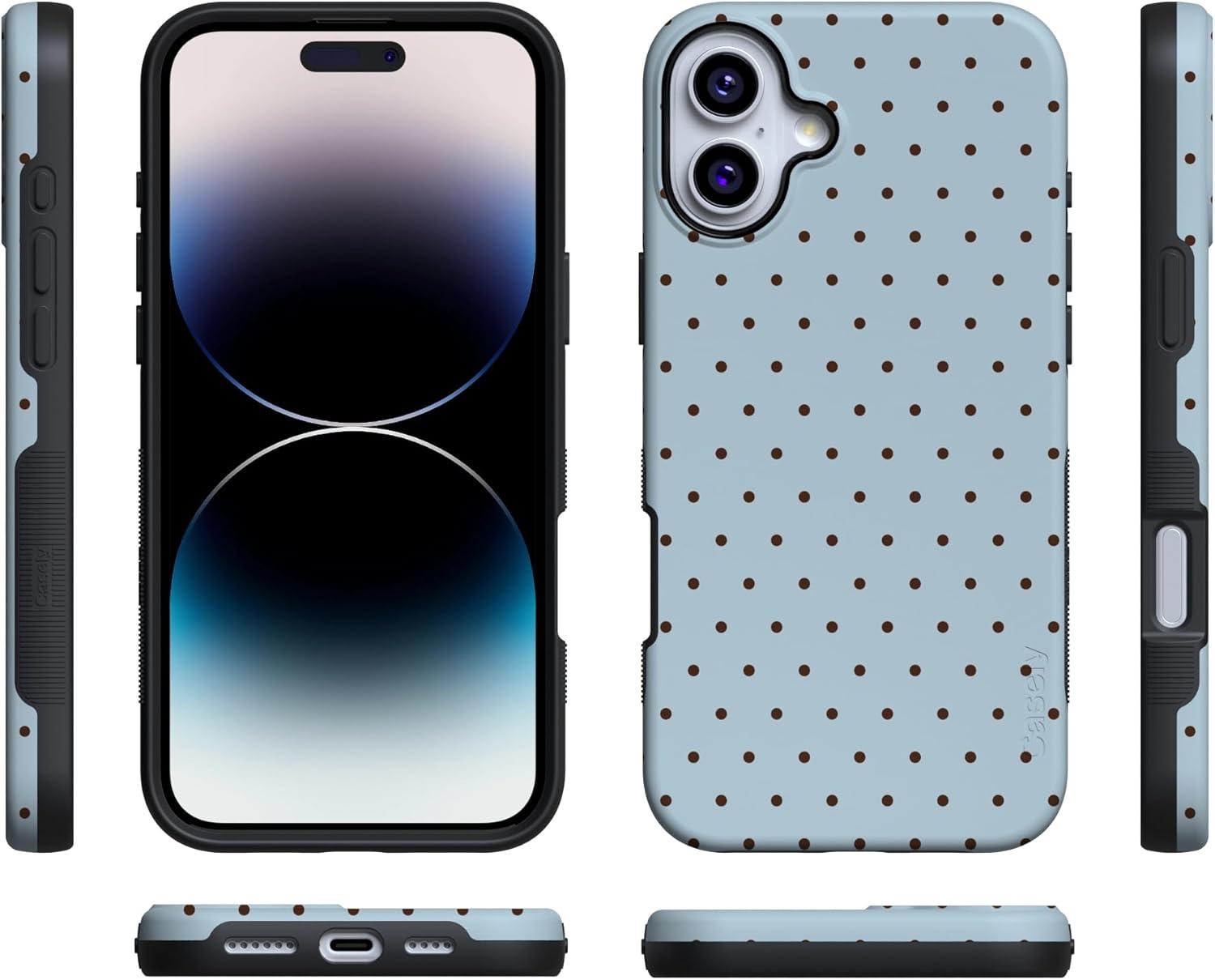 Casely iPhone 16 Case | All Smiles | Smiley Face Sticker | Bold Protective Design | MagSafe Compatible Design(On the Dot | Blue Polka Dot)