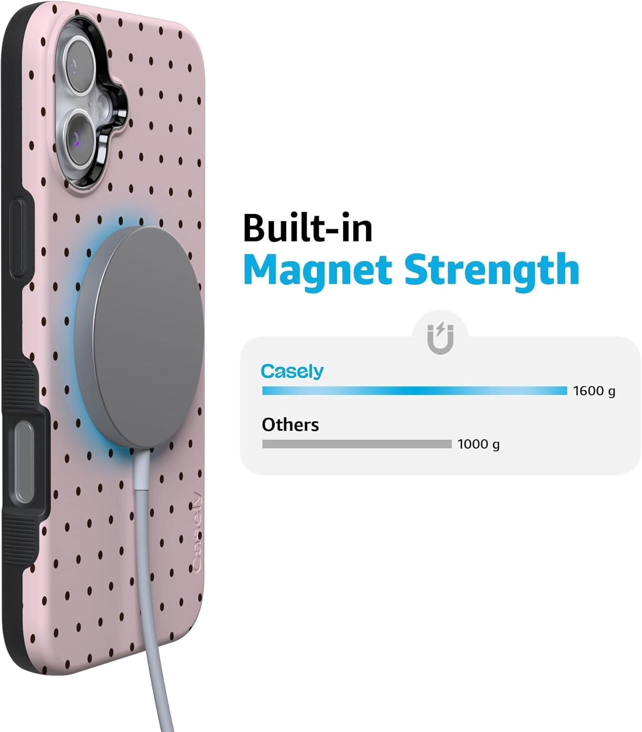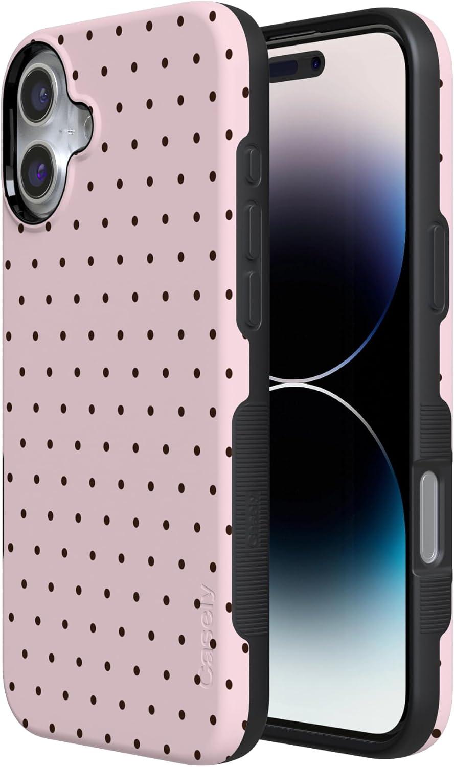 Casely iPhone 16 Case | All Smiles | Smiley Face Sticker | Bold Protective Design | MagSafe Compatible Design(On the Dot | Pink Polka Dot)