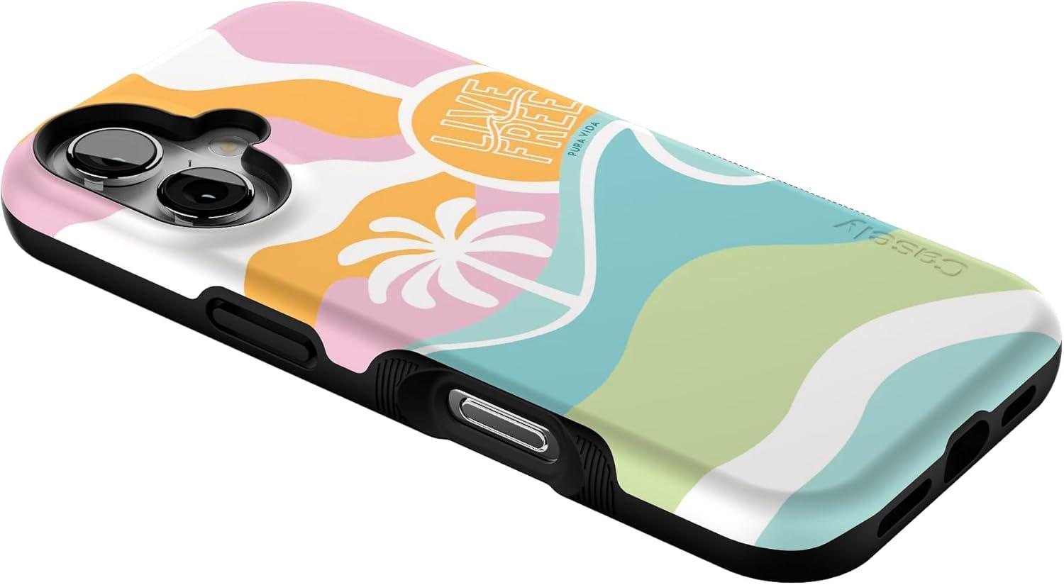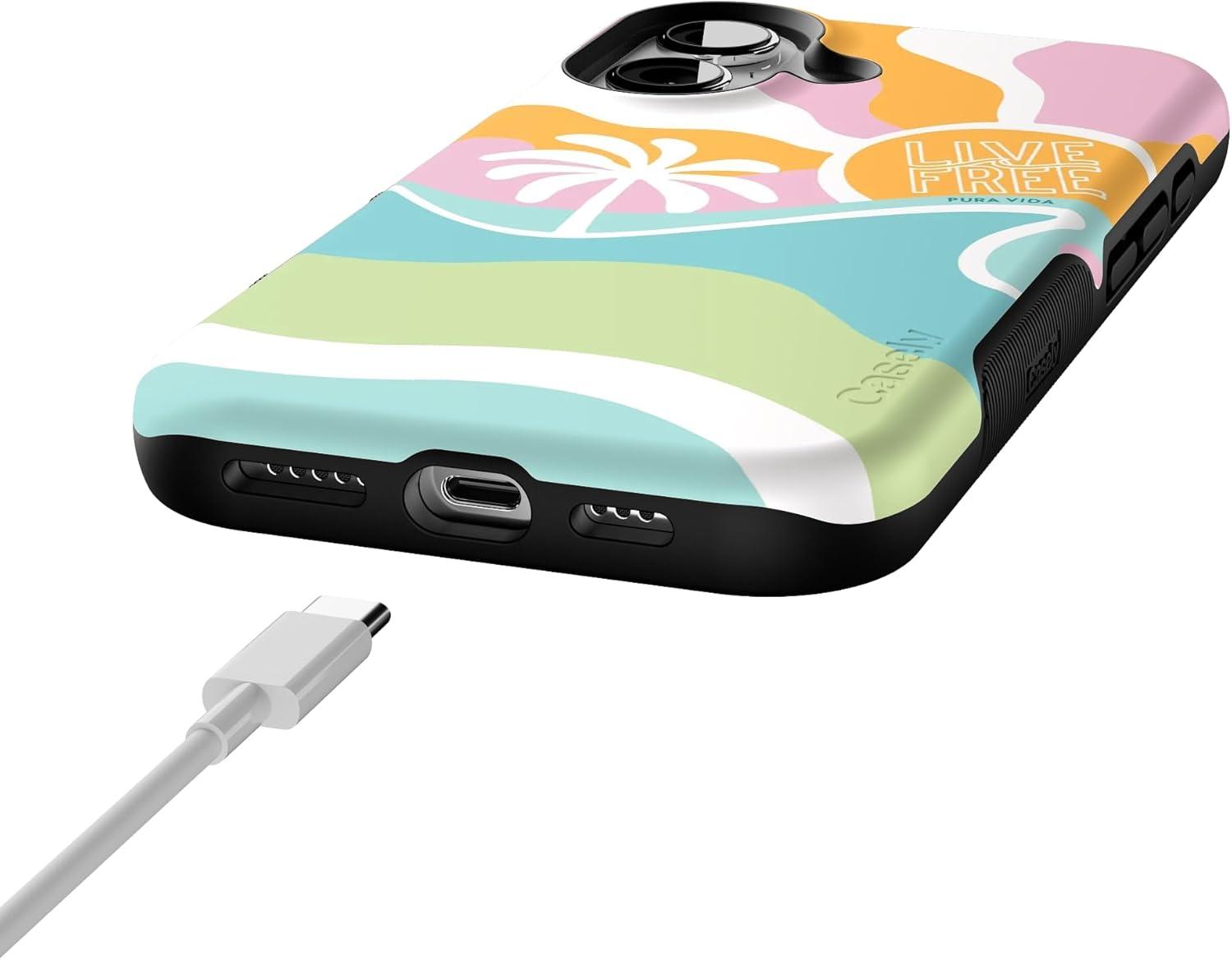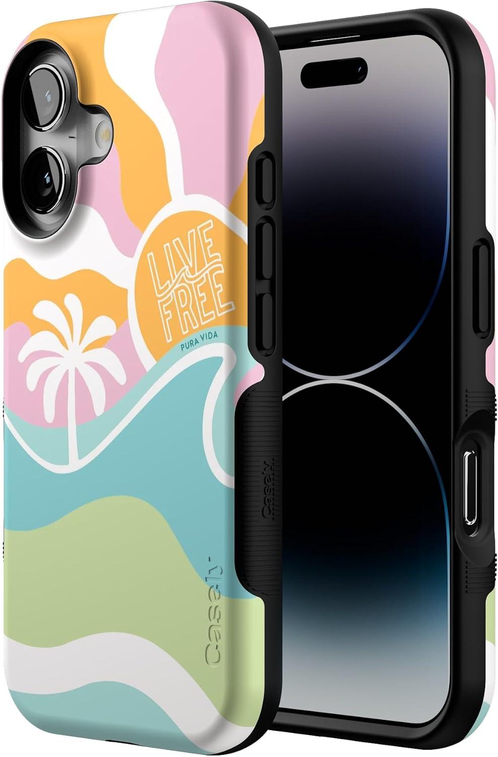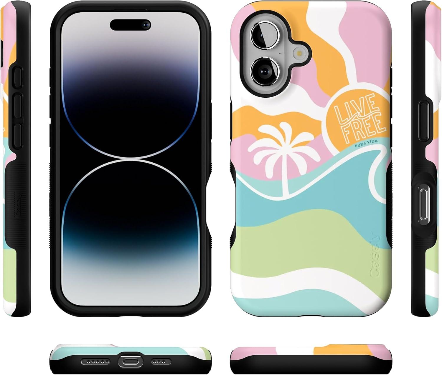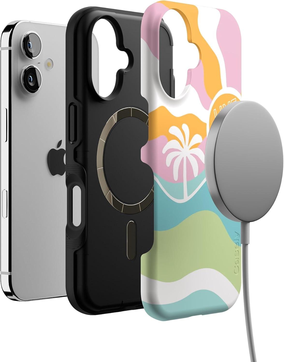 Casely iPhone 16 Case | All Smiles | Smiley Face Sticker | Bold Protective Design | MagSafe Compatible Design(Pura Vida | Tropical Dreams)
