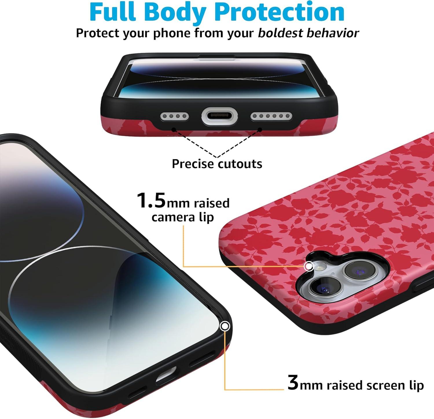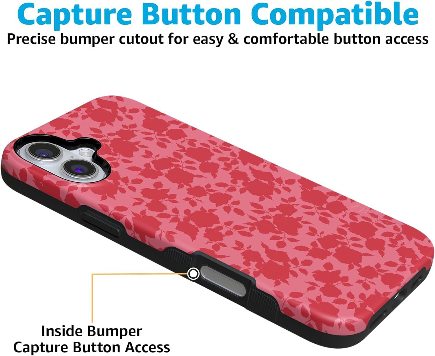 Casely iPhone 16 Case | All Smiles | Smiley Face Sticker | Bold Protective Design | MagSafe Compatible Design(Rose Garden | Red Aesthetic)