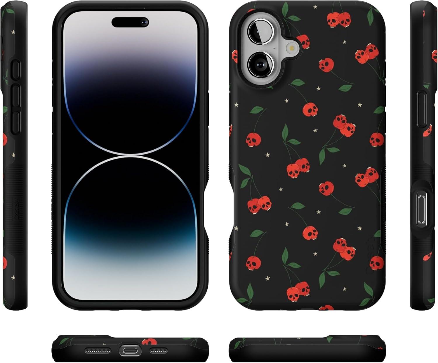 Casely iPhone 16 Case | All Smiles | Smiley Face Sticker | Bold Protective Design | MagSafe Compatible Design(Sweet Revenge | Cherry Skulls)