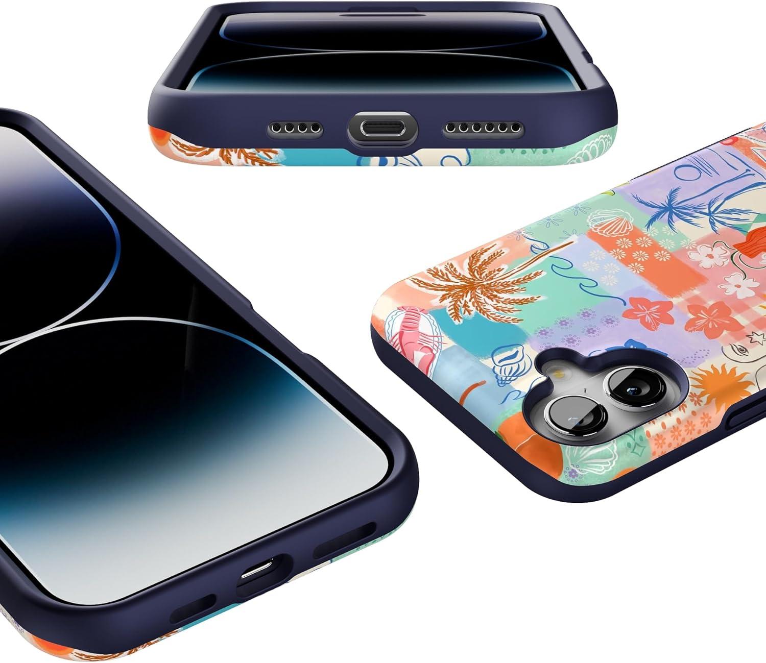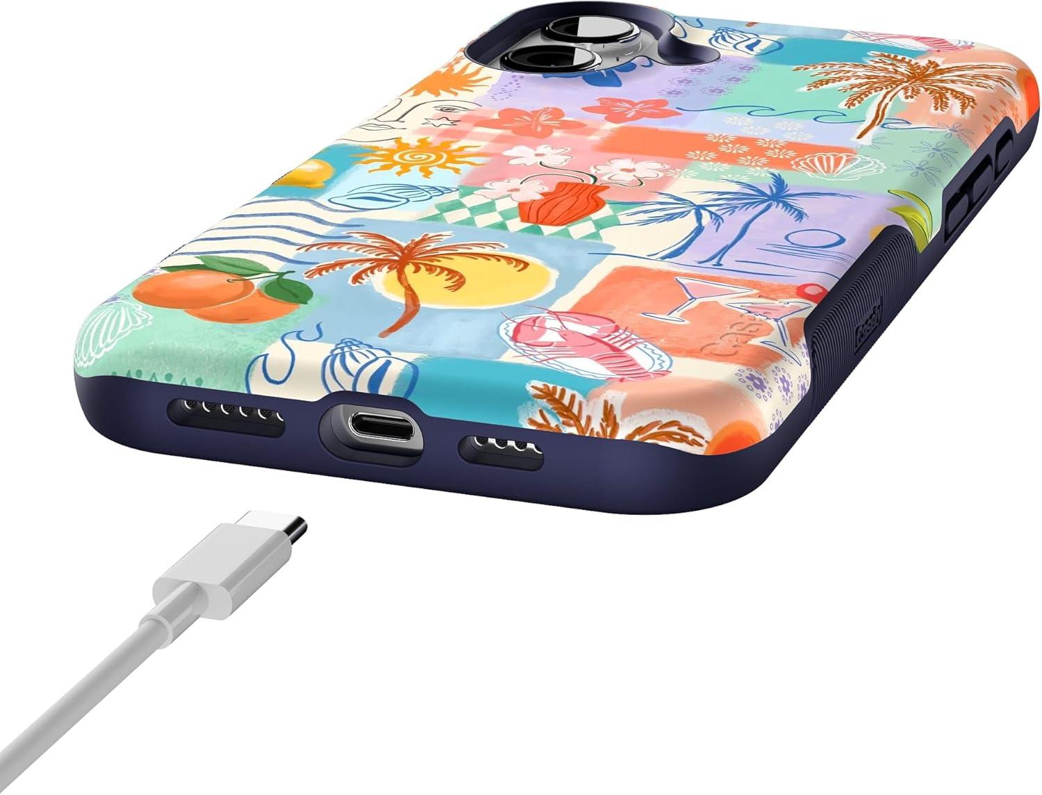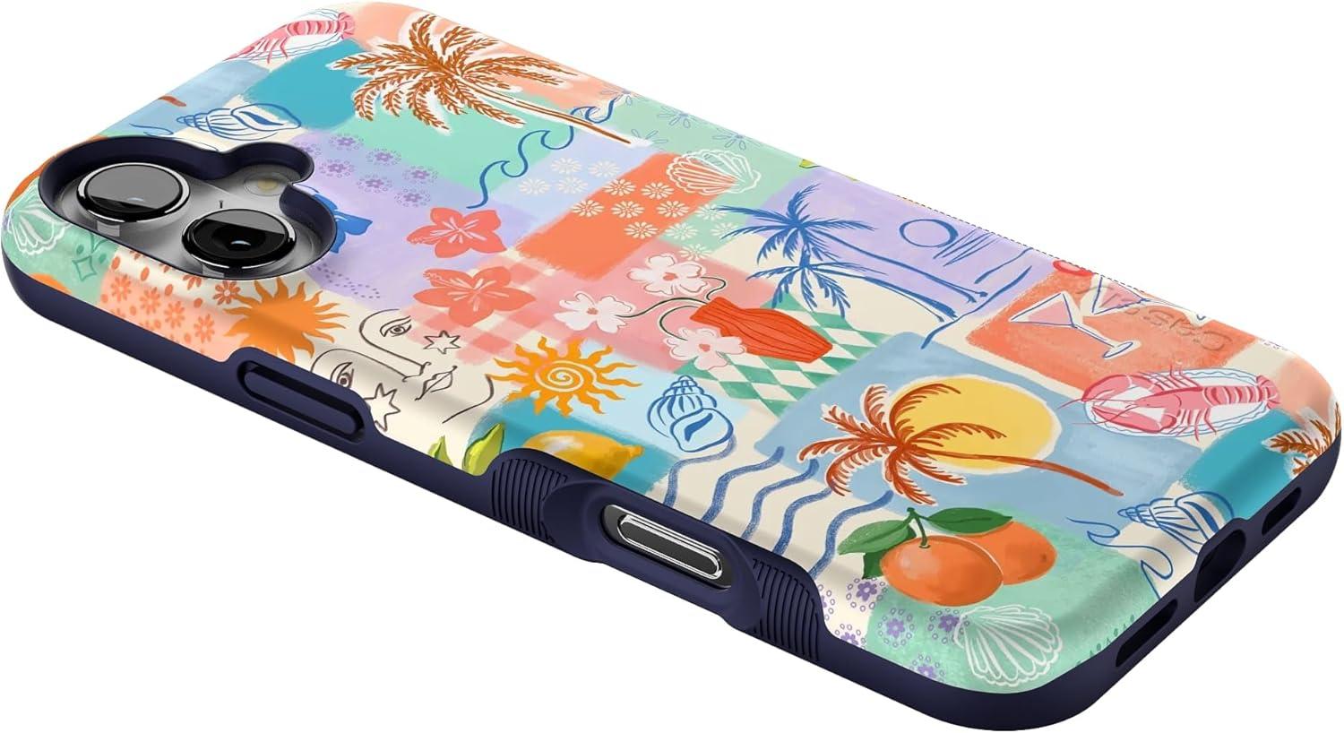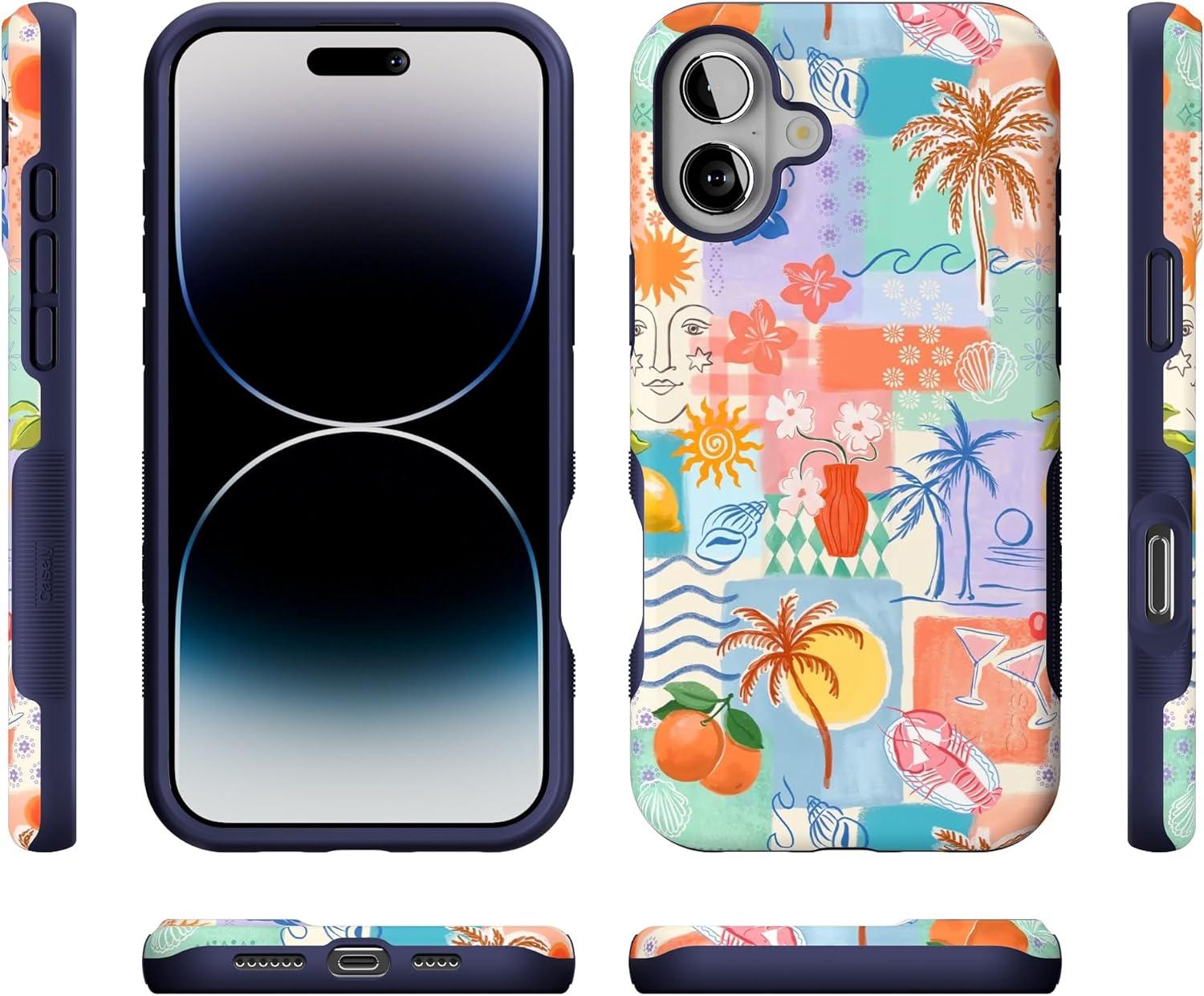Casely iPhone 16 Case | All Smiles | Smiley Face Sticker | Bold Protective Design | MagSafe Compatible Design(Tropical Heat | Beachy Collage)