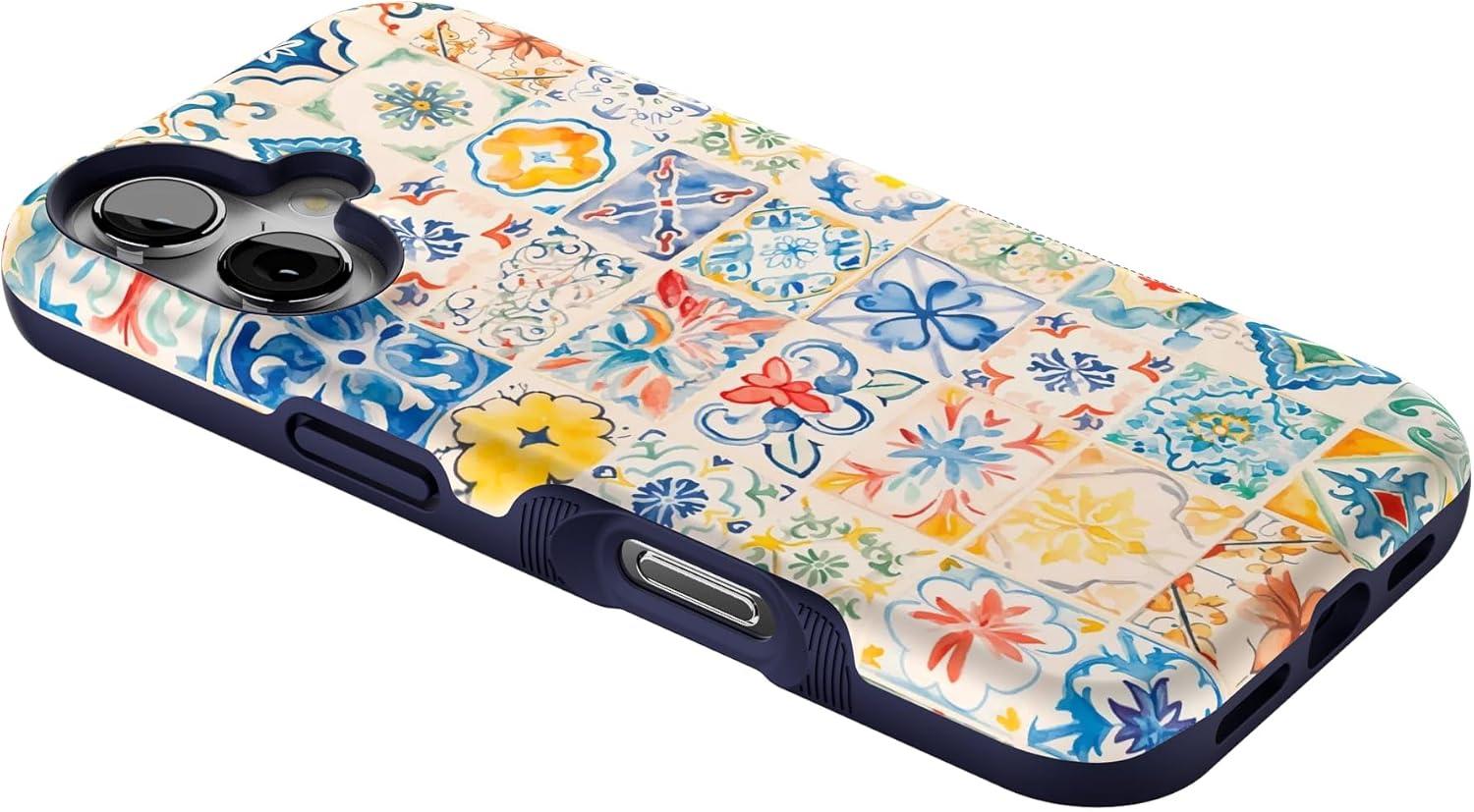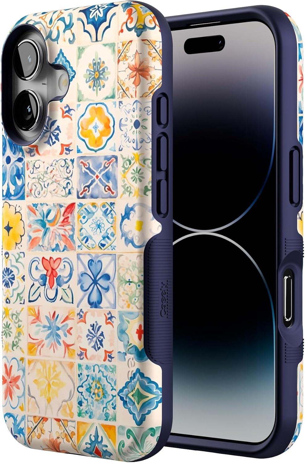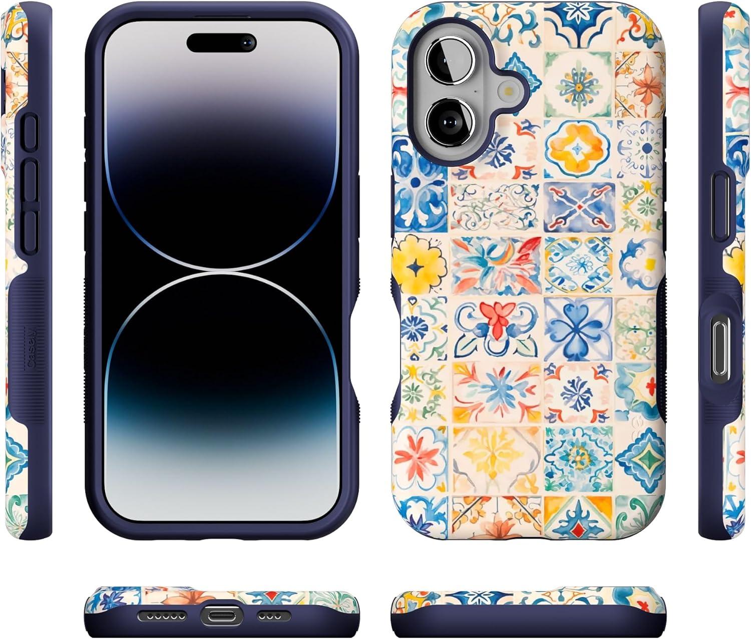 Casely iPhone 16 Case | All Smiles | Smiley Face Sticker | Bold Protective Design | MagSafe Compatible Design(Tuscan Tiles | Dolce Vita)