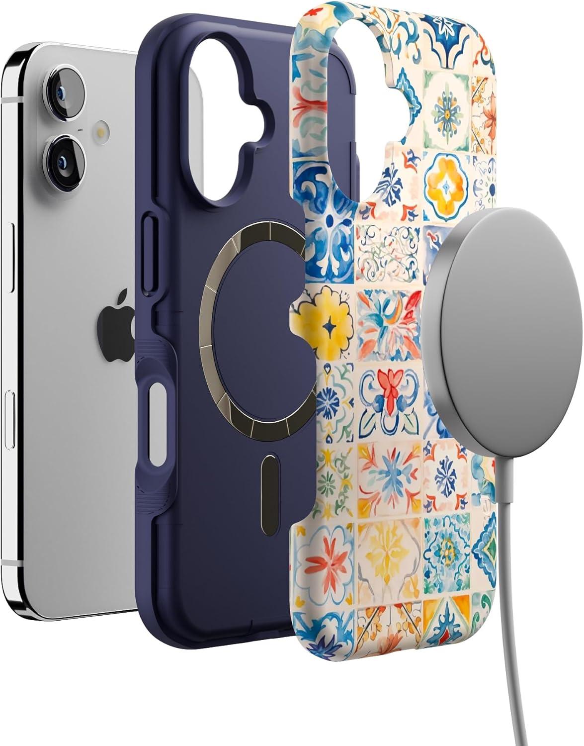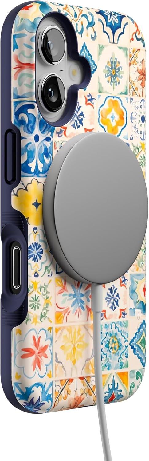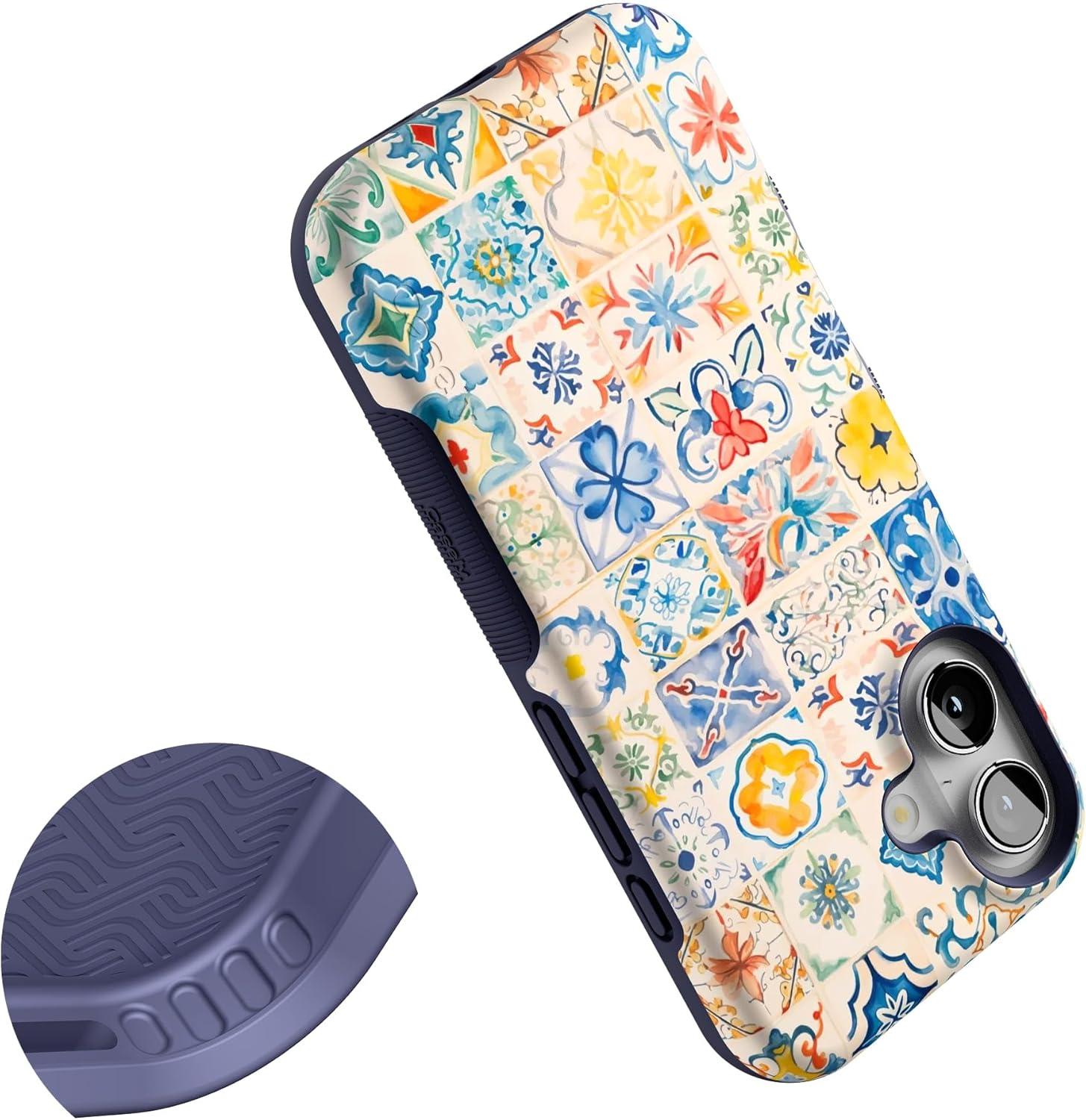 Casely iPhone 16 Case | All Smiles | Smiley Face Sticker | Bold Protective Design | MagSafe Compatible Design(Tuscan Tiles | Dolce Vita)