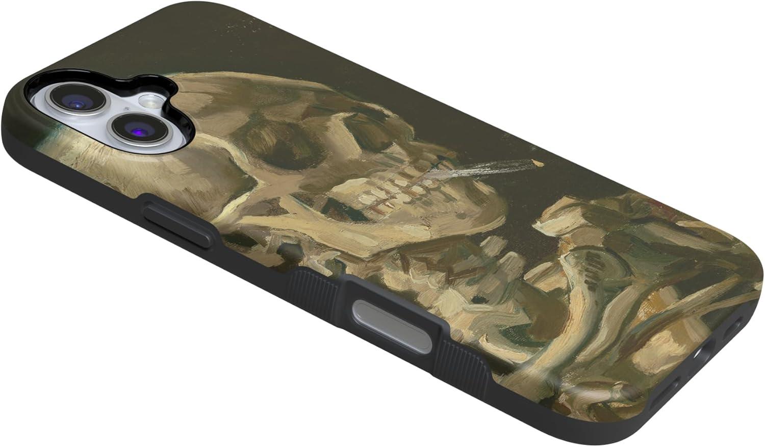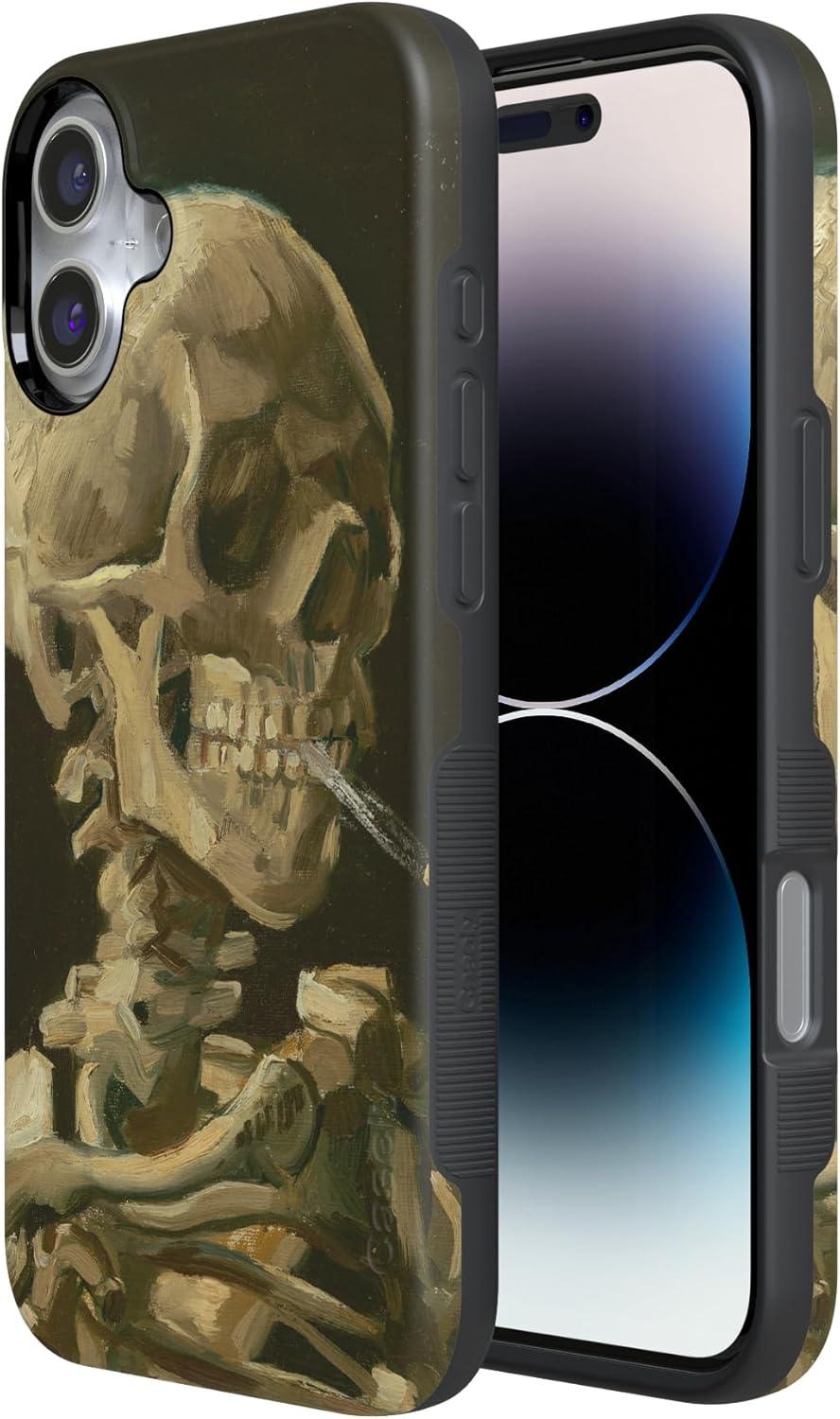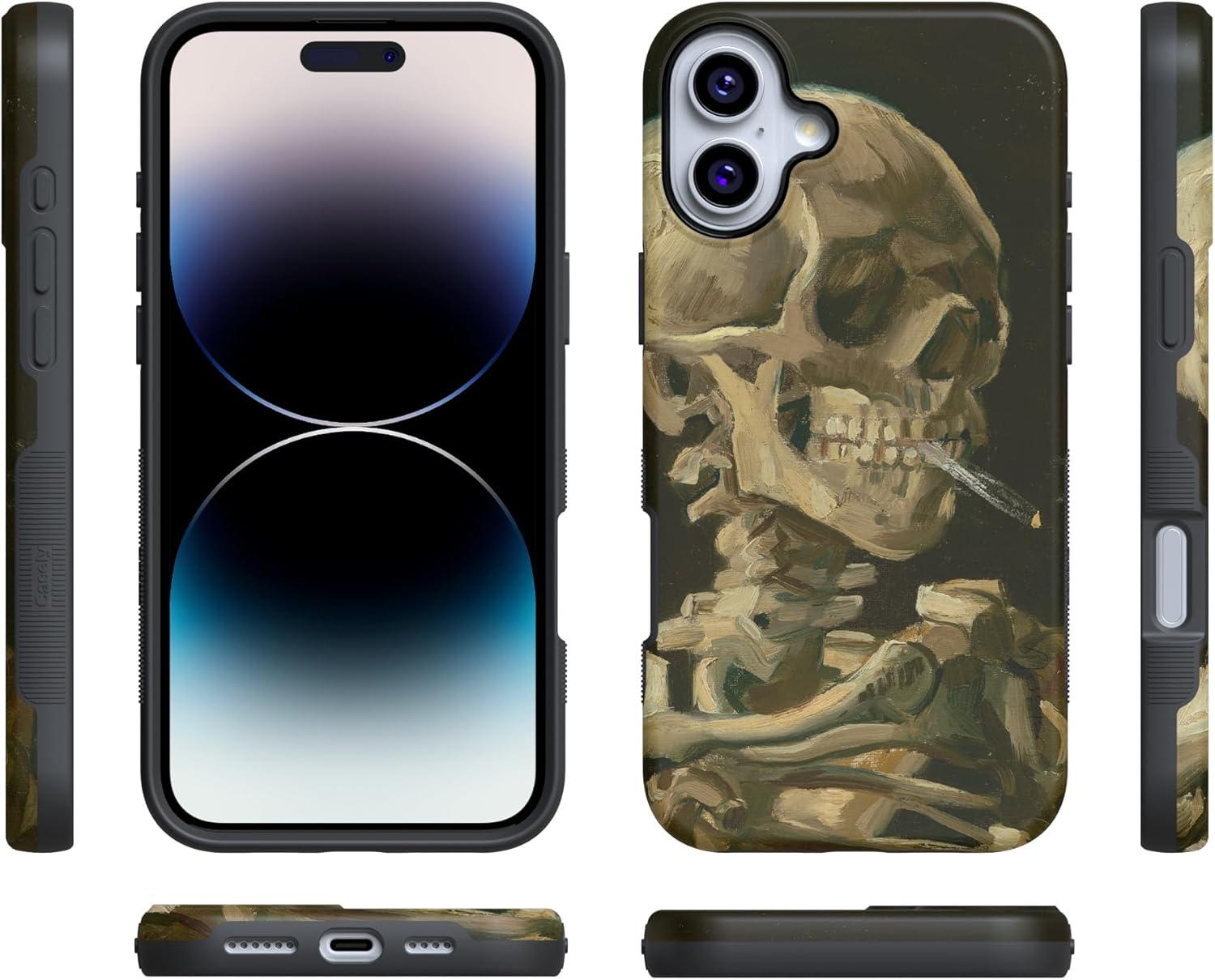 Casely iPhone 16 Case | All Smiles | Smiley Face Sticker | Bold Protective Design | MagSafe Compatible Design(Van Gogh | Skull of a Skeleton with Burning Cig)
