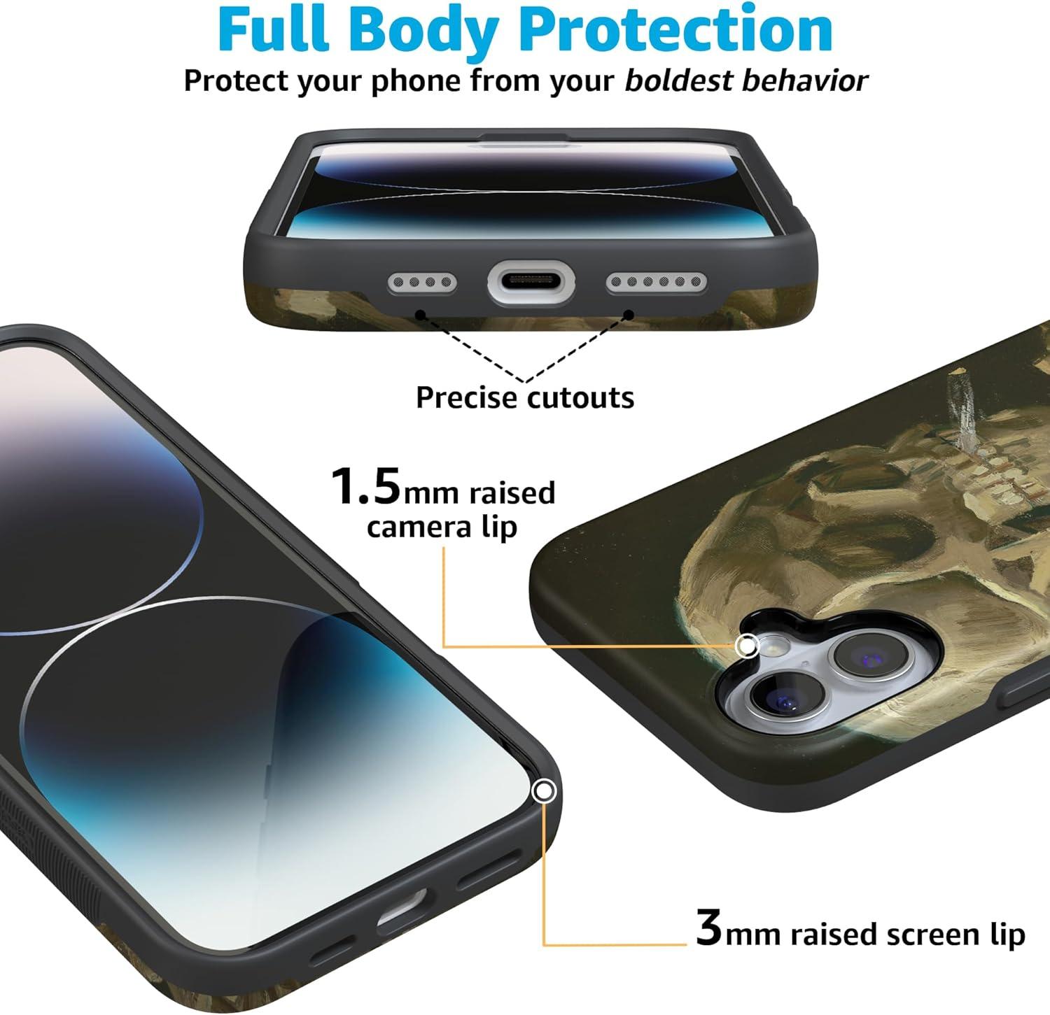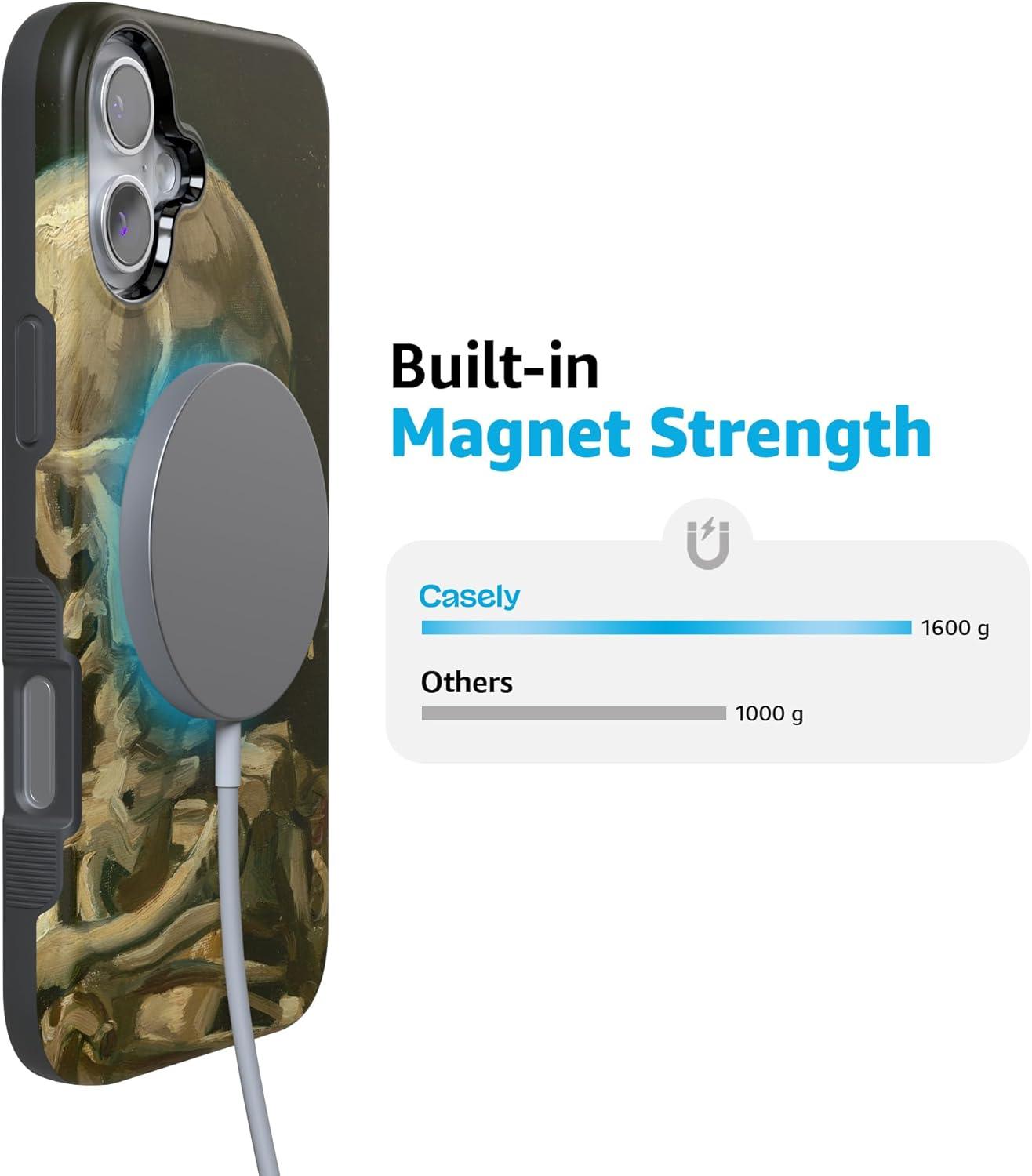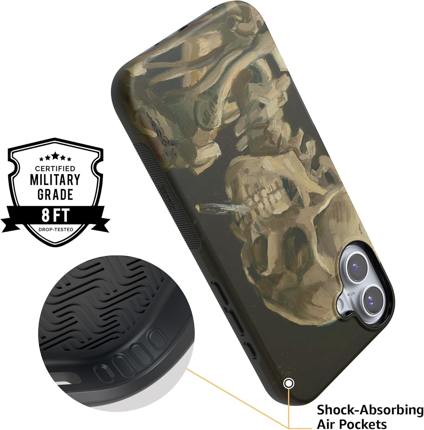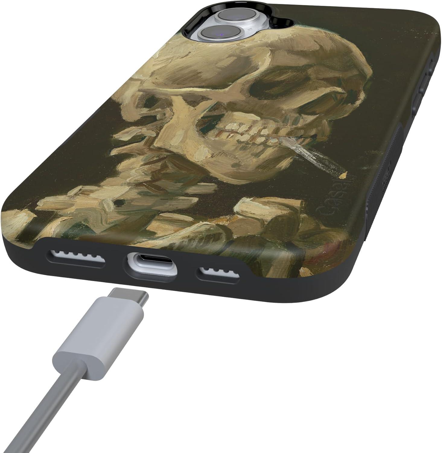Casely iPhone 16 Case | All Smiles | Smiley Face Sticker | Bold Protective Design | MagSafe Compatible Design(Van Gogh | Skull of a Skeleton with Burning Cig)