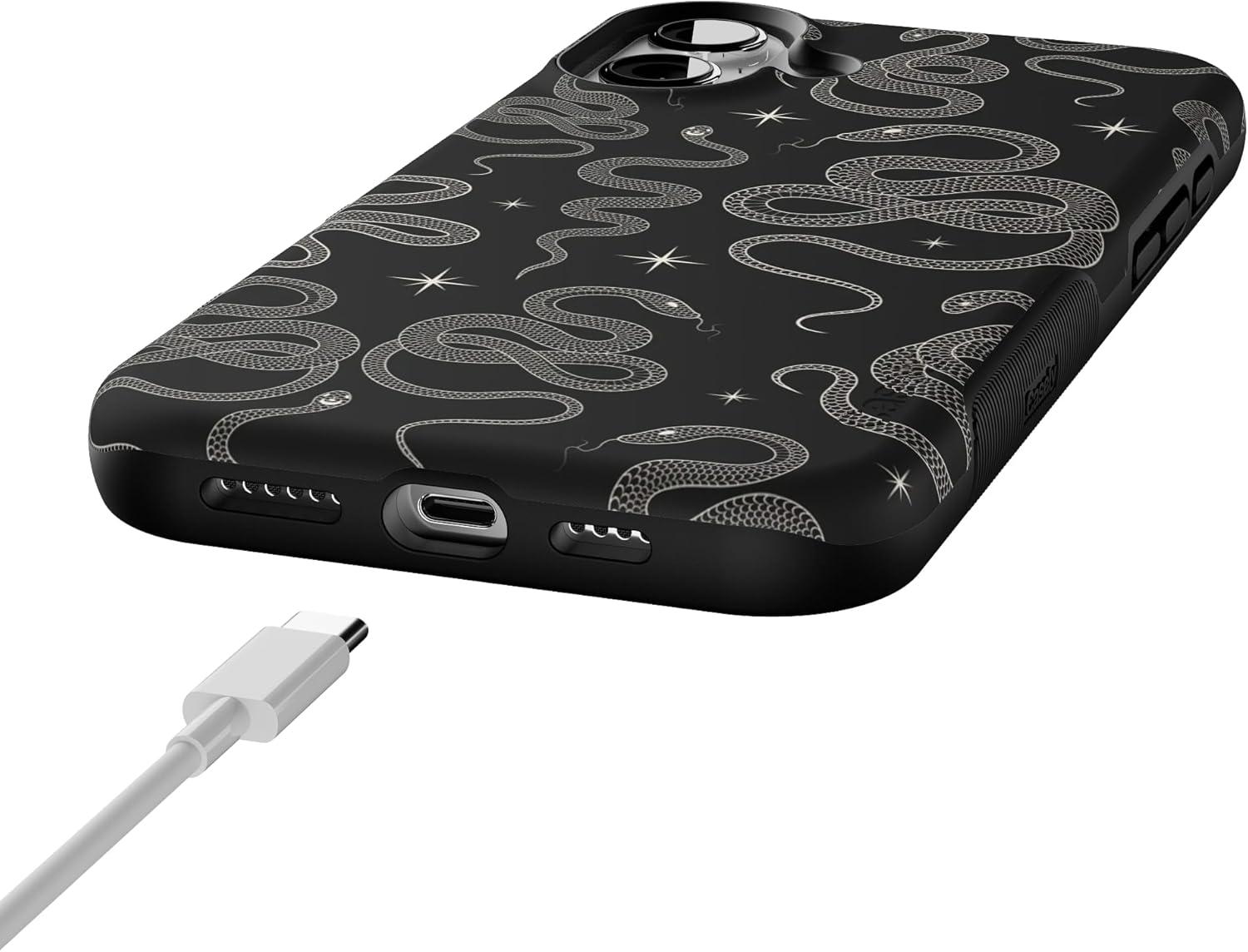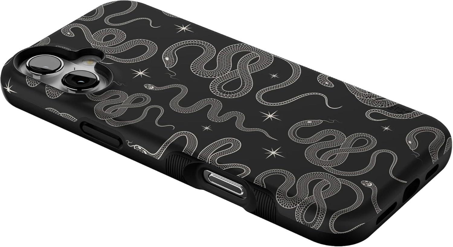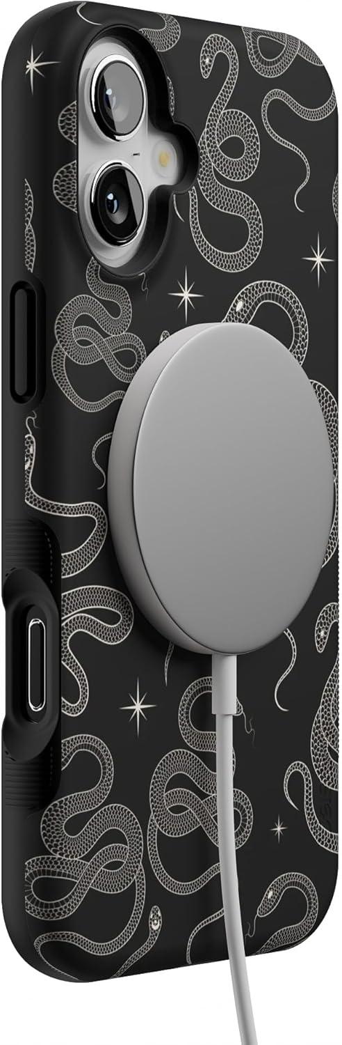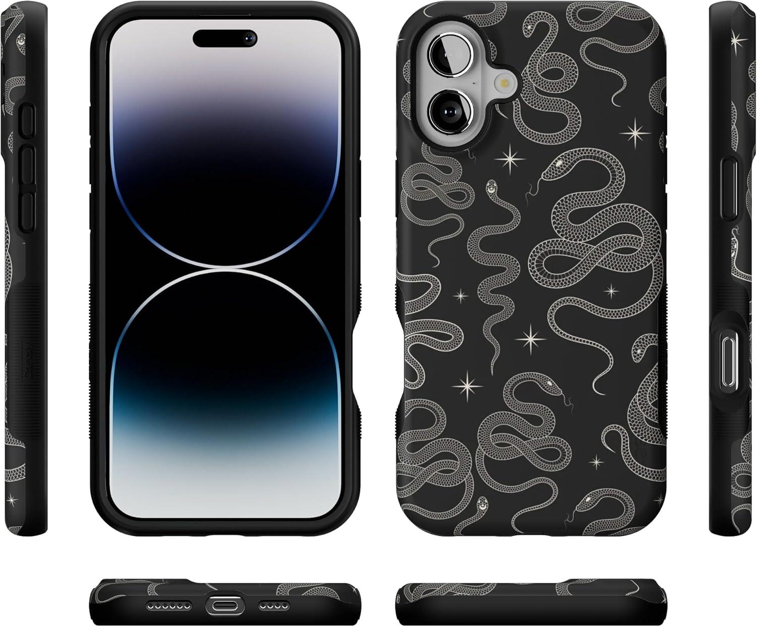 Casely iPhone 16 Case | All Smiles | Smiley Face Sticker | Bold Protective Design | MagSafe Compatible Design(We’re Ready For It | Black Serpent)