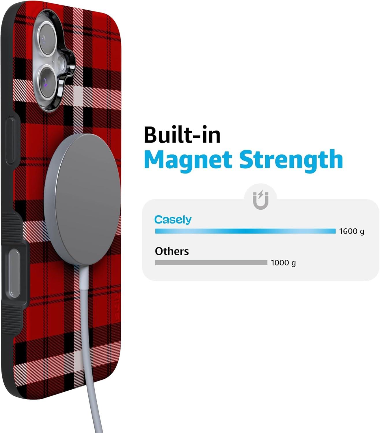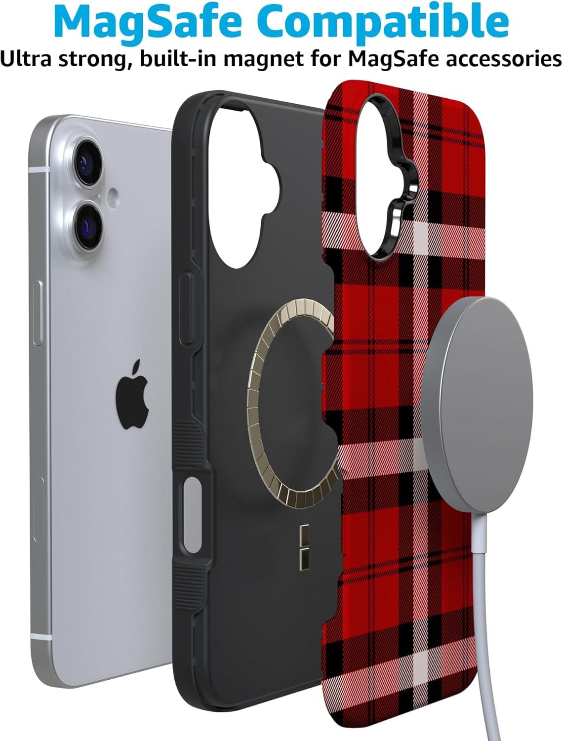 Casely iPhone 16 Case | As if! | Red Plaid | Bold Protective Design | MagSafe Compatible Design