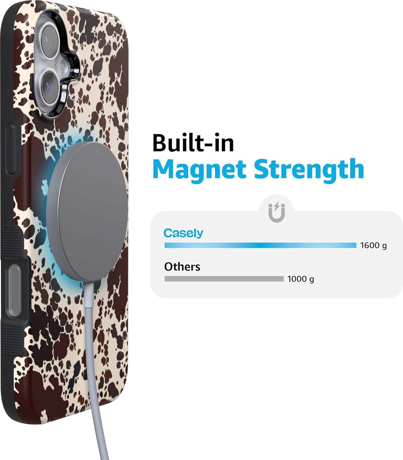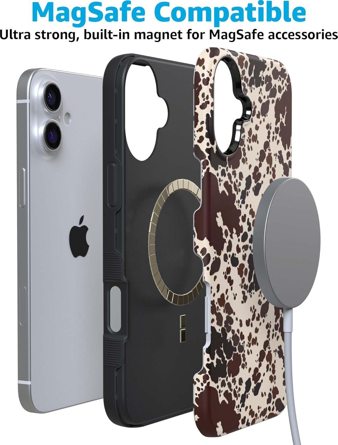 Casely iPhone 16 Case | Botanical Blooms | Floral Patchwork | Compatible with MagSafe | Bold Protective Design(Cowgirl Envy | Cow Print)