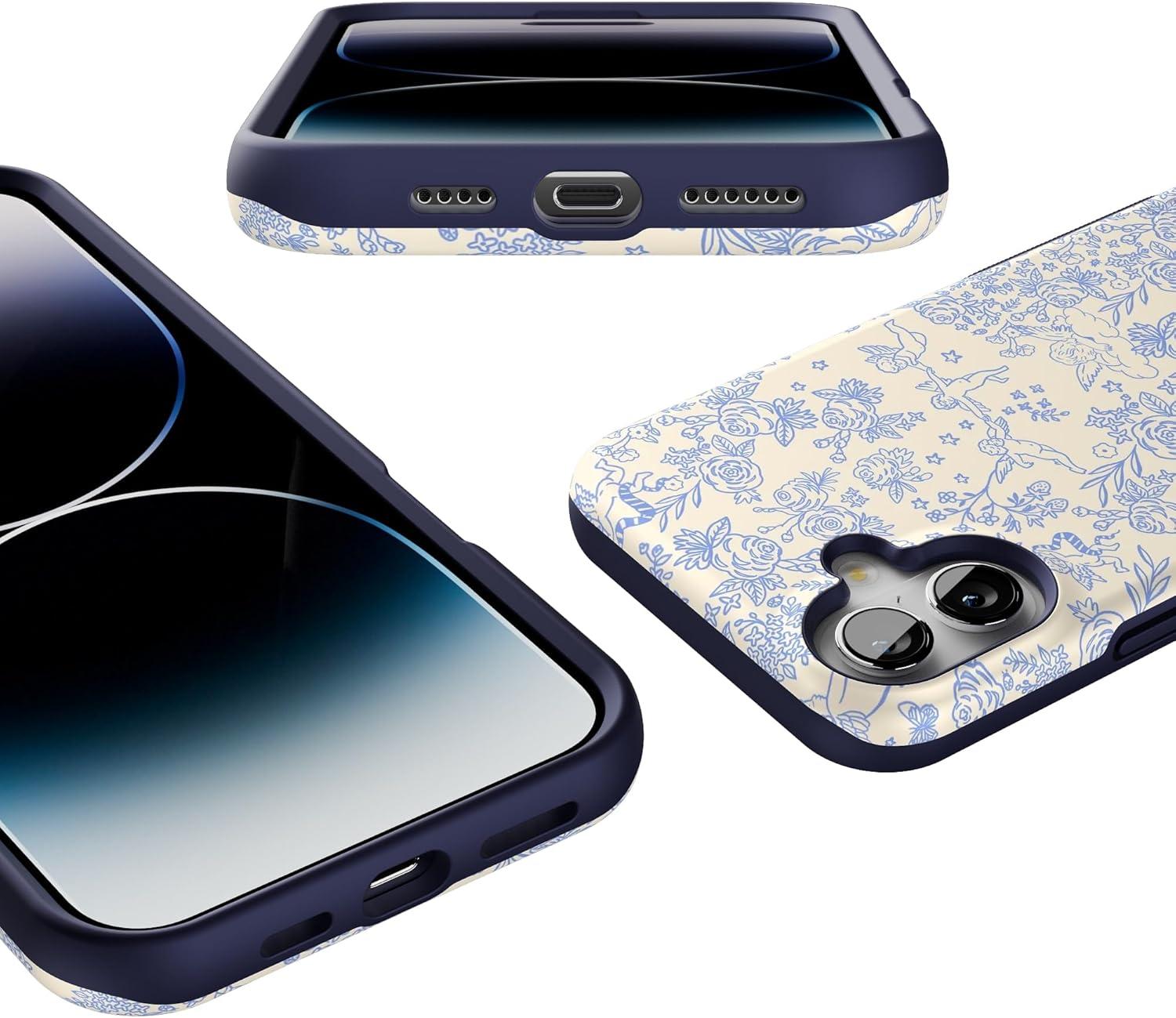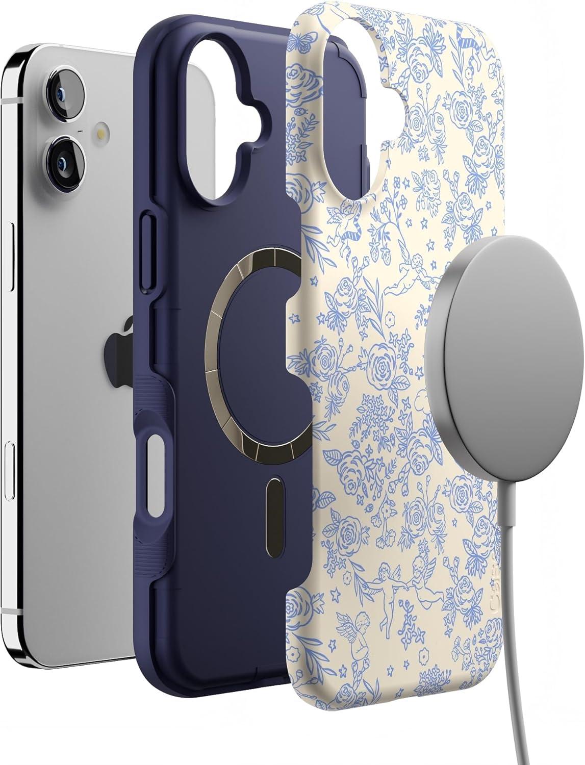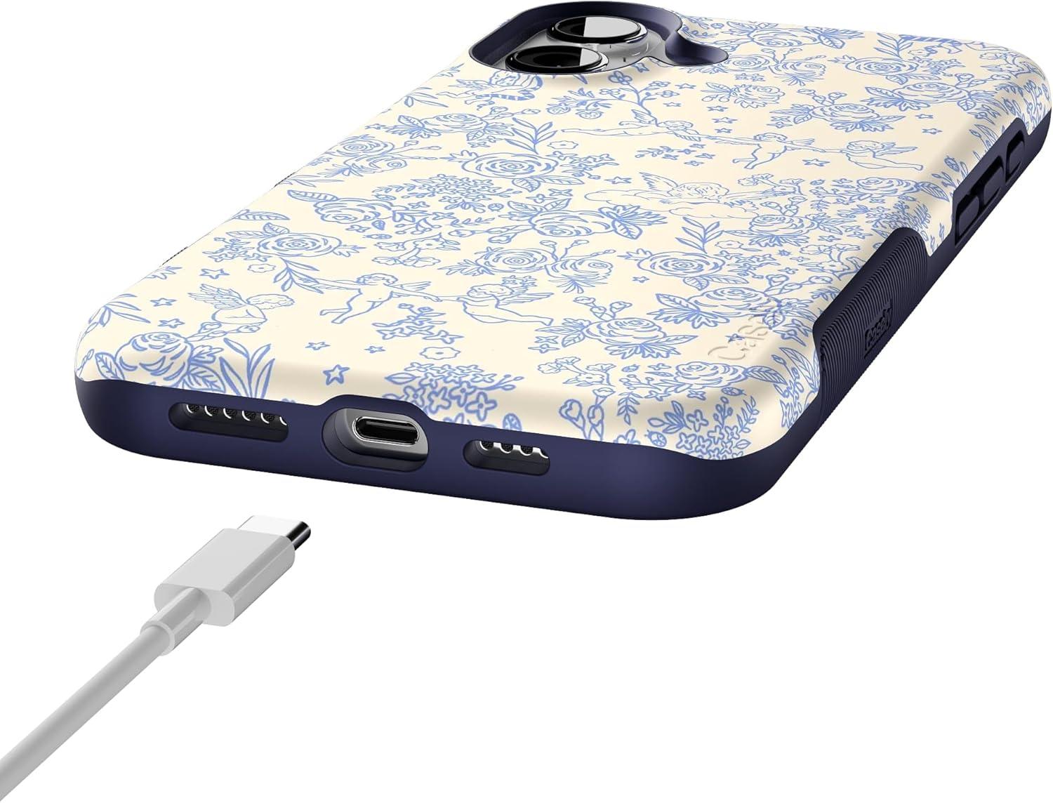 Casely iPhone 16 Case | Botanical Blooms | Floral Patchwork | Compatible with MagSafe | Bold Protective Design(Cupid’s Canvas | Periwinkle Floral)