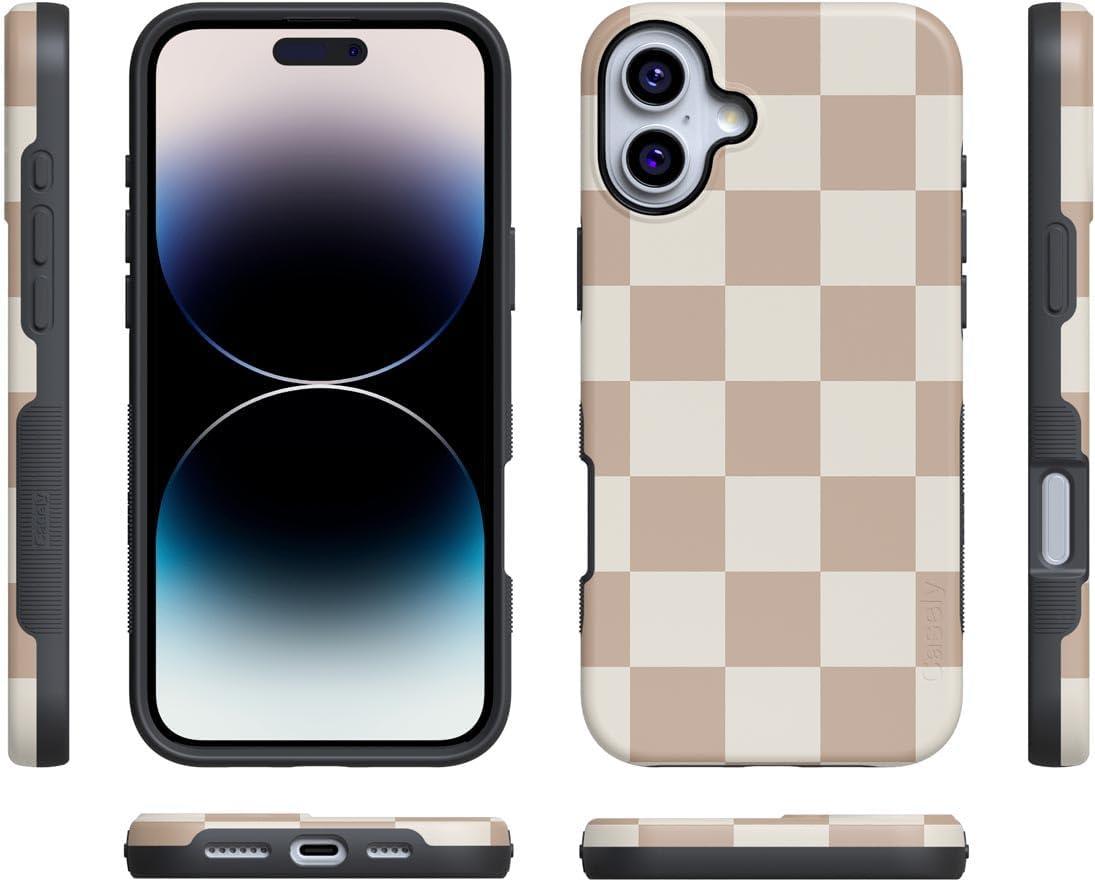 Casely iPhone 16 Case | Botanical Blooms | Floral Patchwork | Compatible with MagSafe | Bold Protective Design(Fit Check | Neutral Checkerboard Checkered)