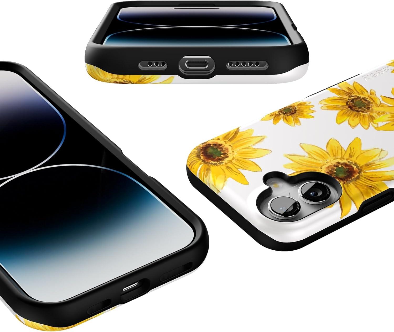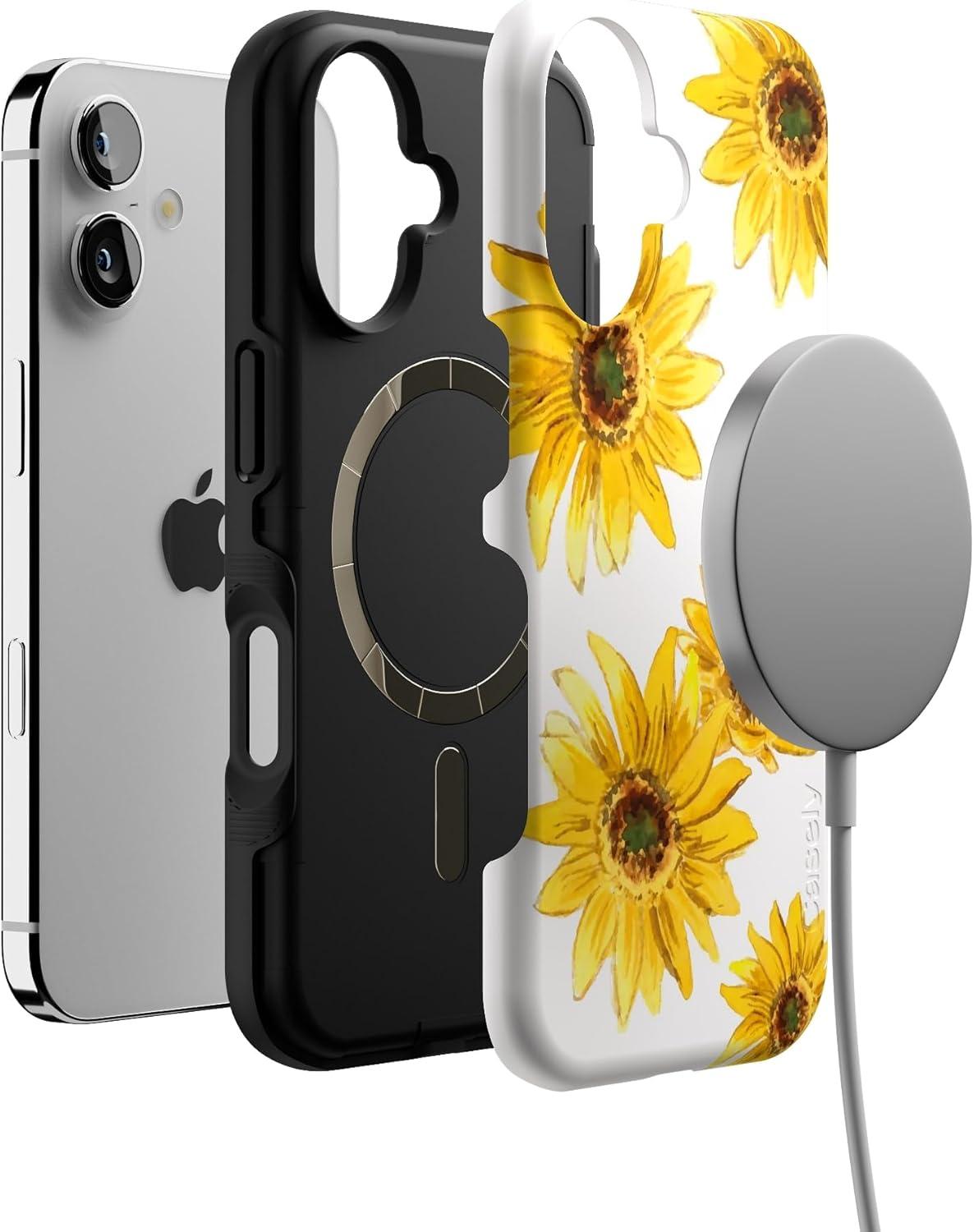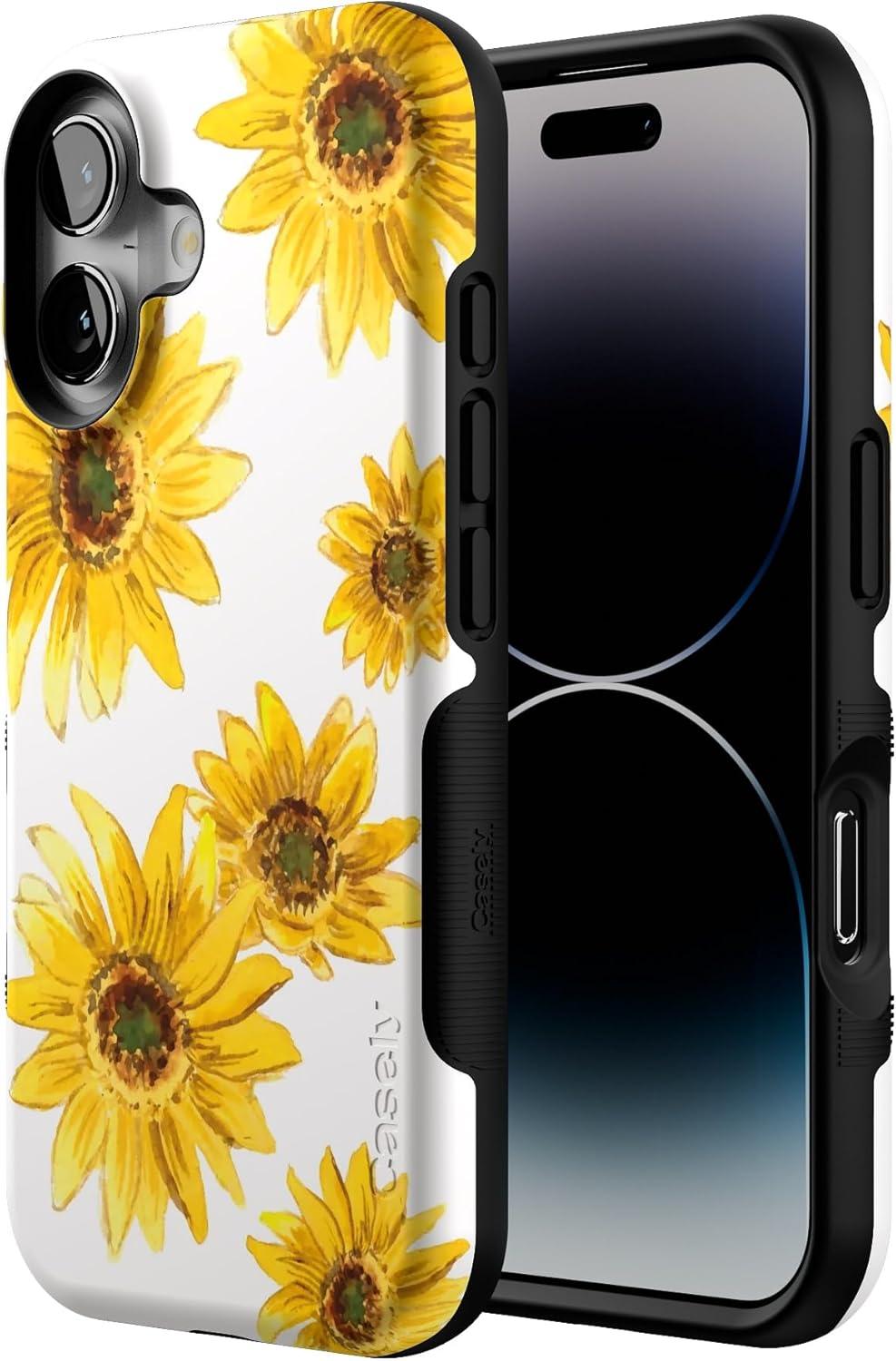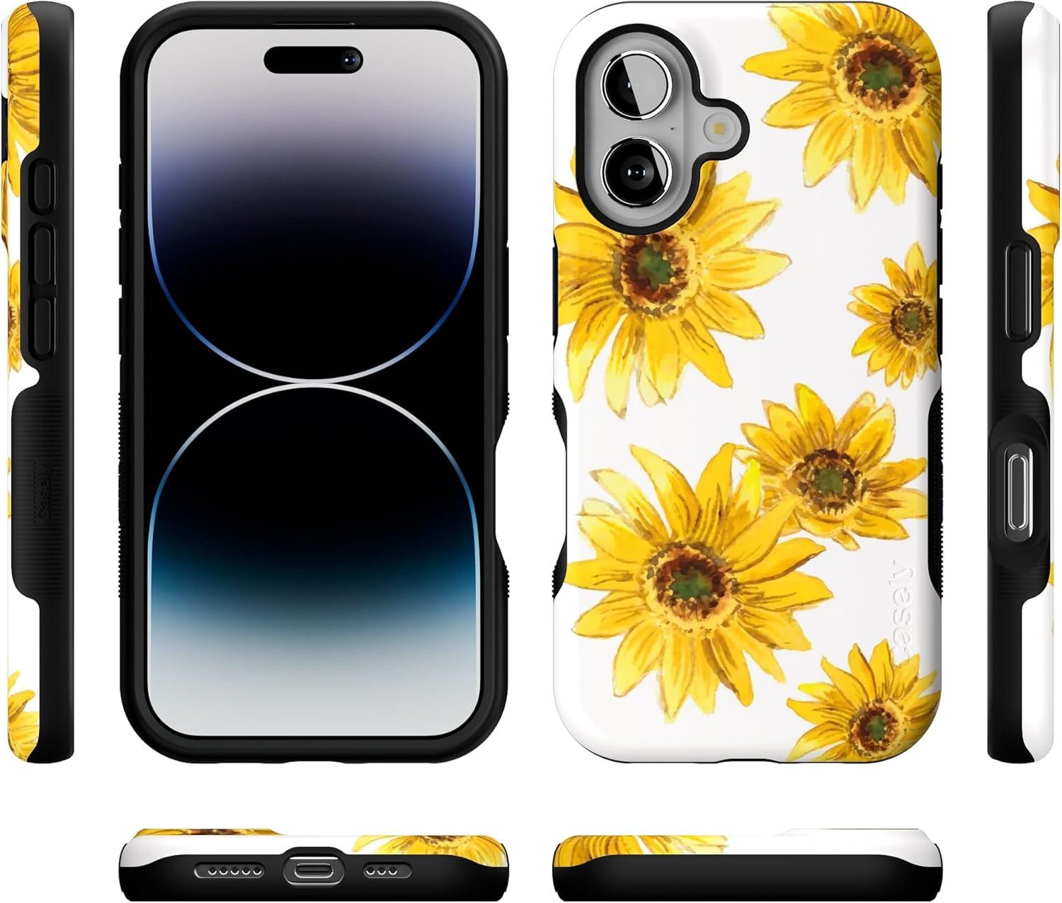 Casely iPhone 16 Case | Botanical Blooms | Floral Patchwork | Compatible with MagSafe | Bold Protective Design(Golden Garden | Yellow Sunflower Floral)