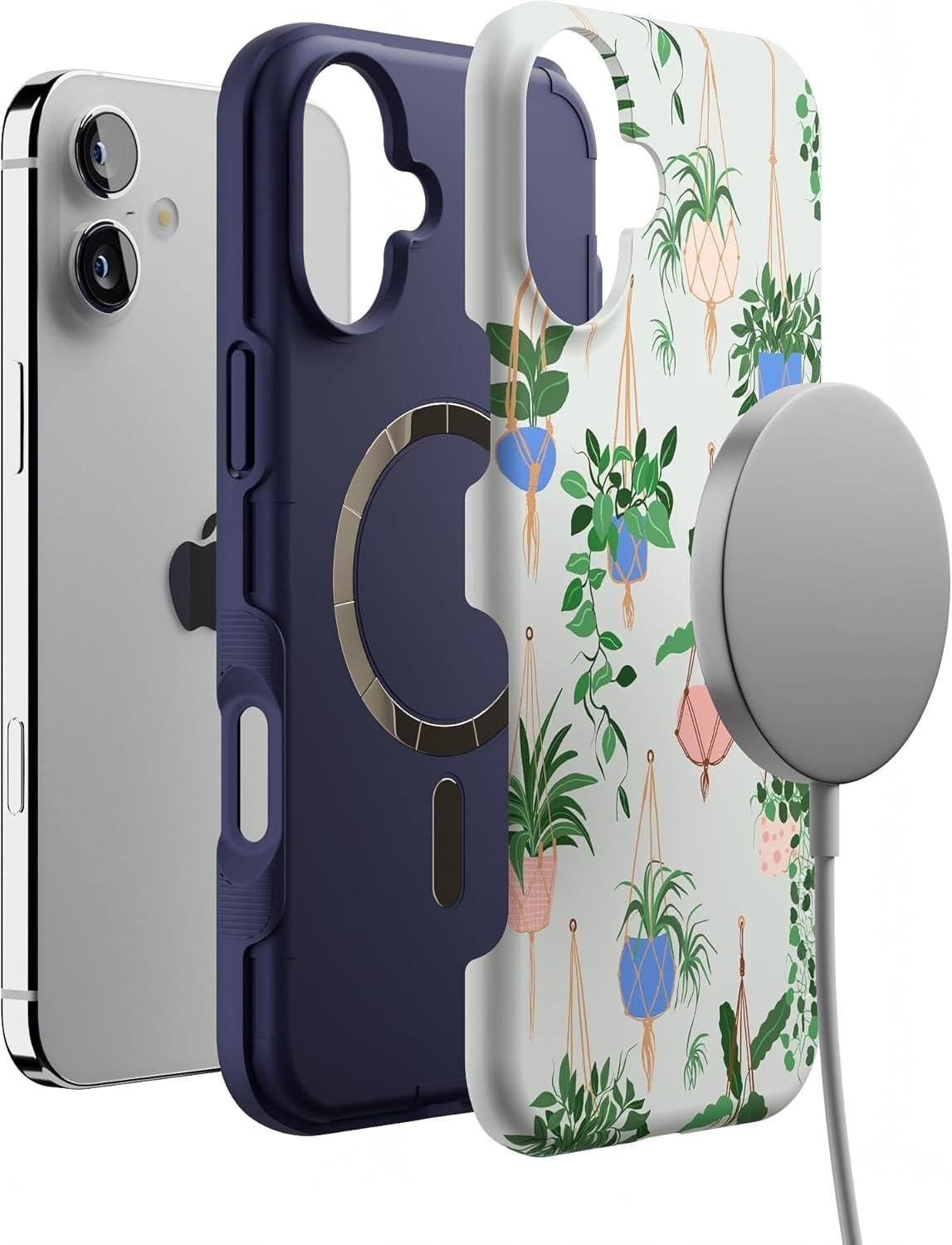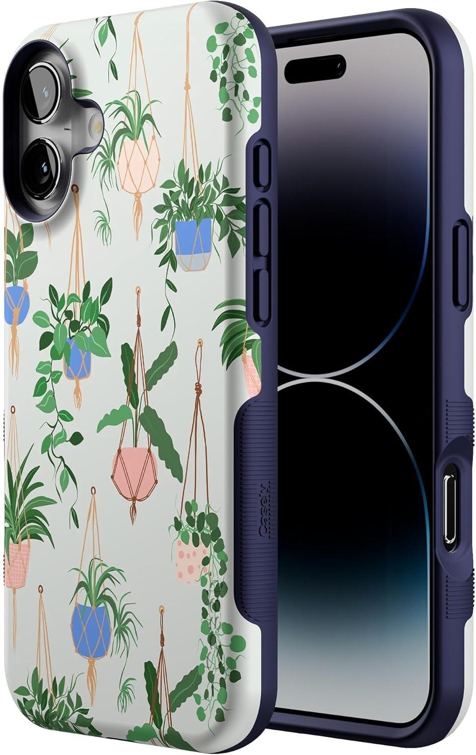 Casely iPhone 16 Case | Botanical Blooms | Floral Patchwork | Compatible with MagSafe | Bold Protective Design(Hanging Around | Potted Plants Floral)