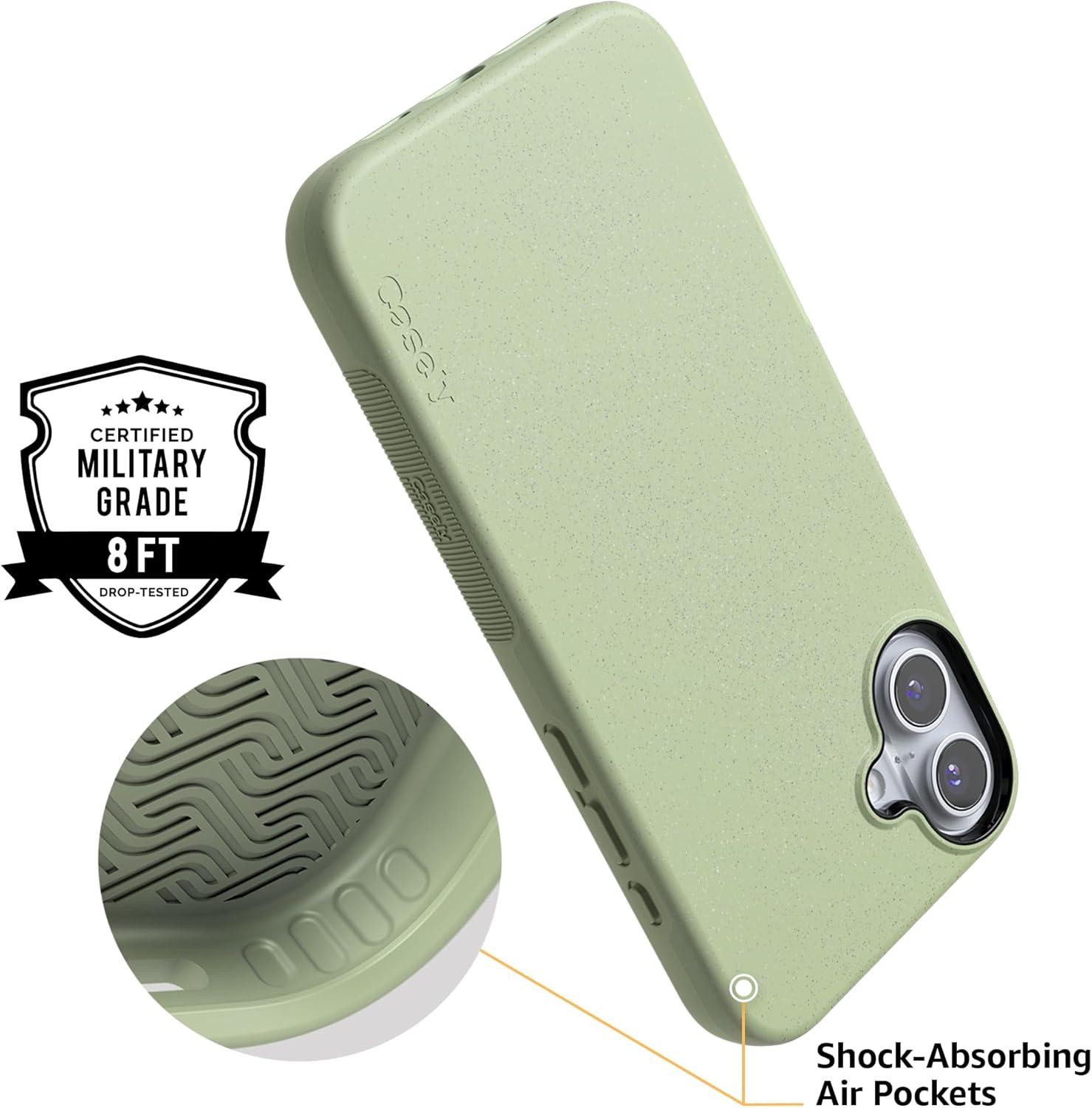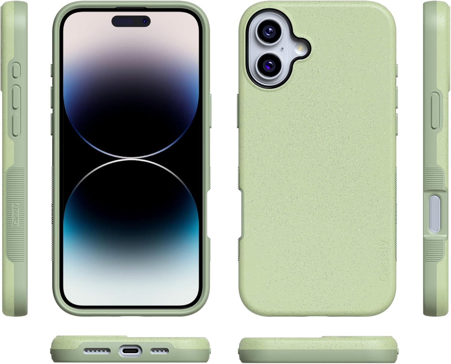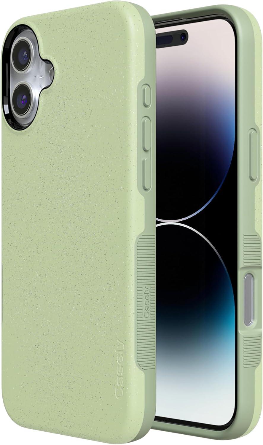 Casely iPhone 16 Case | Botanical Blooms | Floral Patchwork | Compatible with MagSafe | Bold Protective Design(Kiwi Kiss | Matcha Green Shimmer)