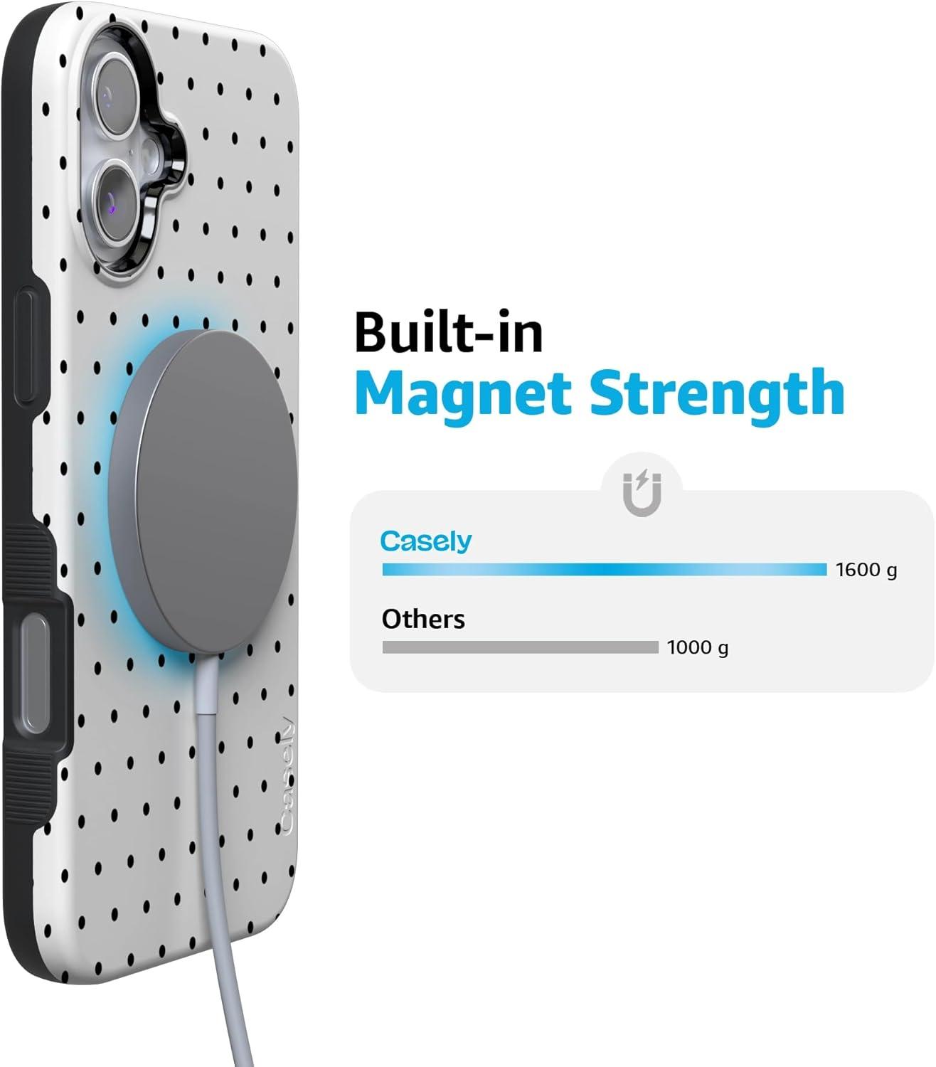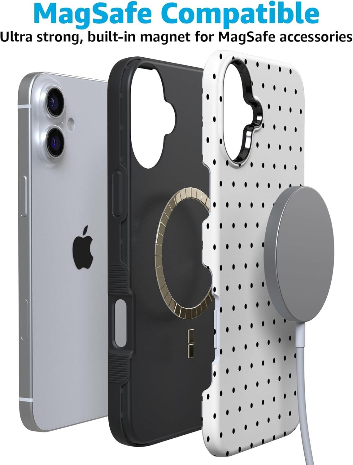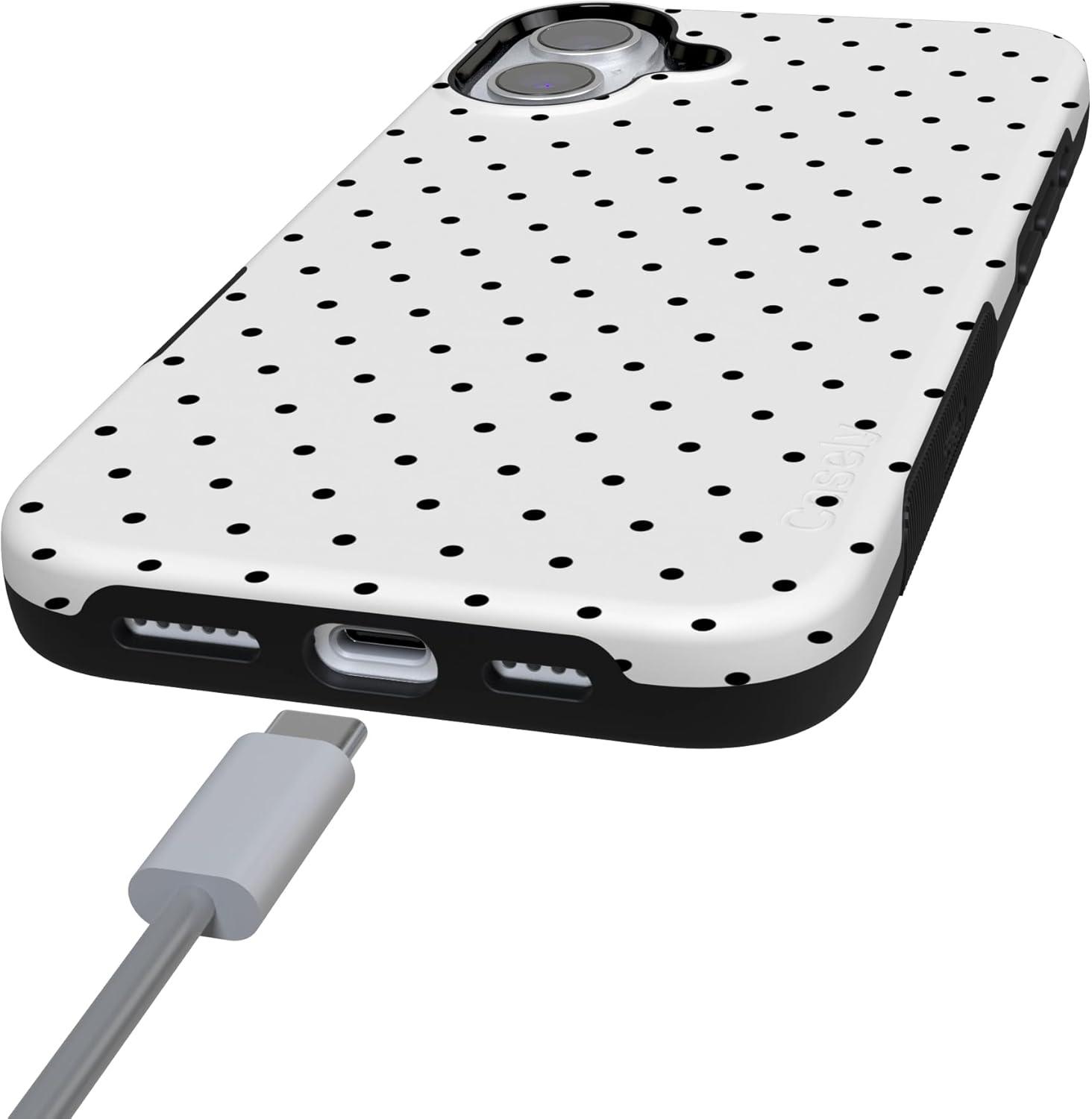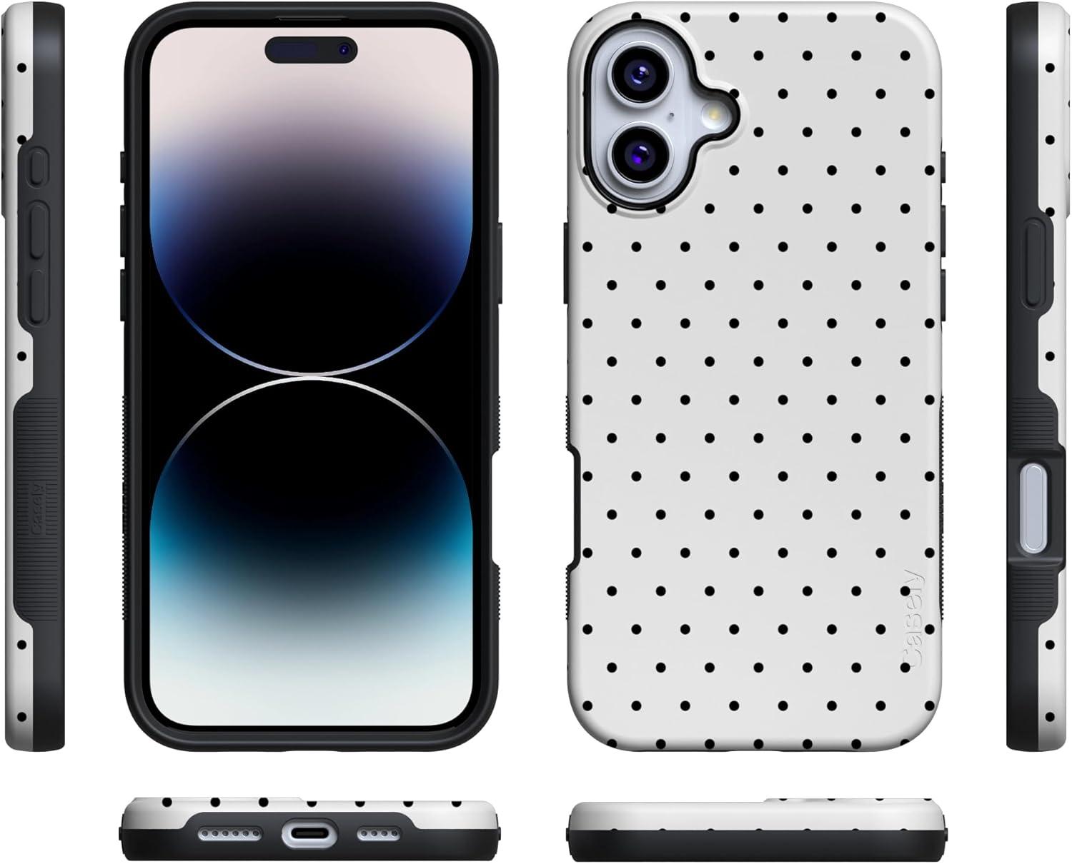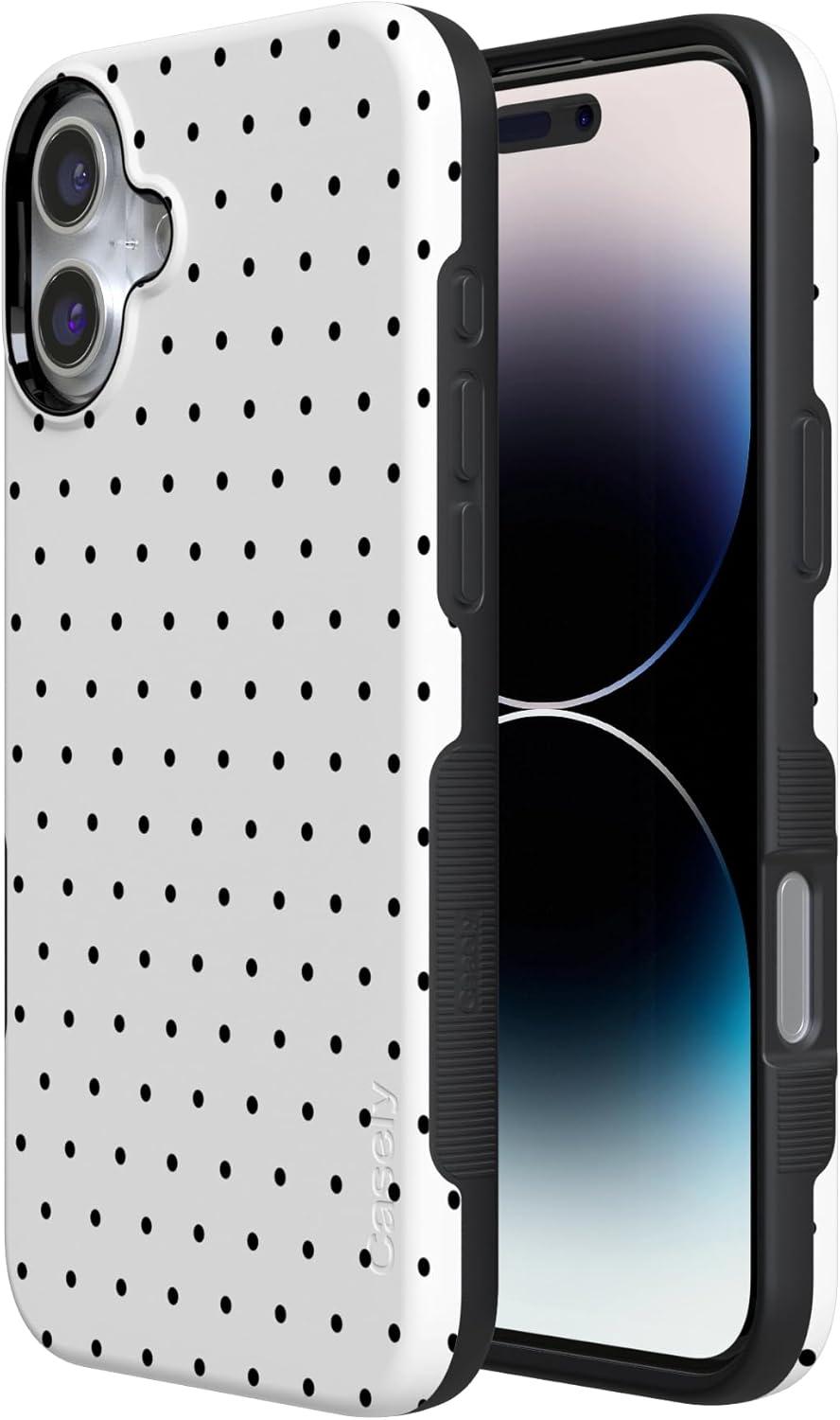 Casely iPhone 16 Case | Botanical Blooms | Floral Patchwork | Compatible with MagSafe | Bold Protective Design(On the Dot | White Polka Dot)