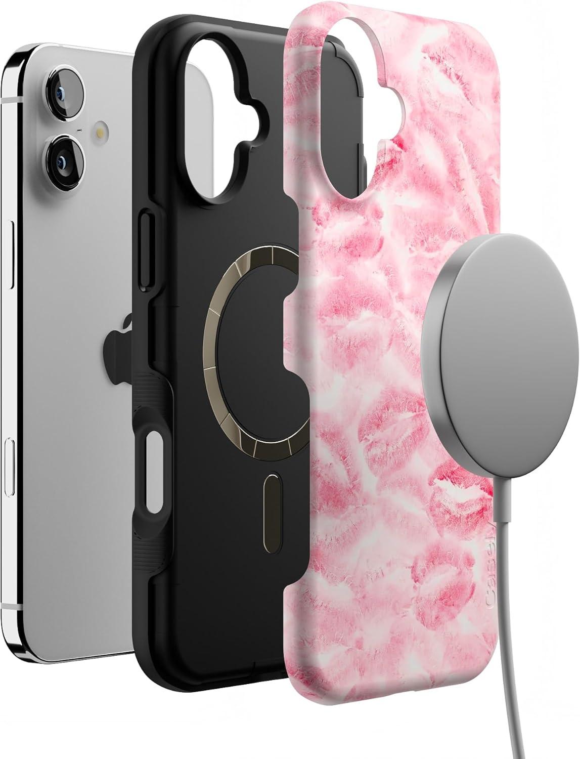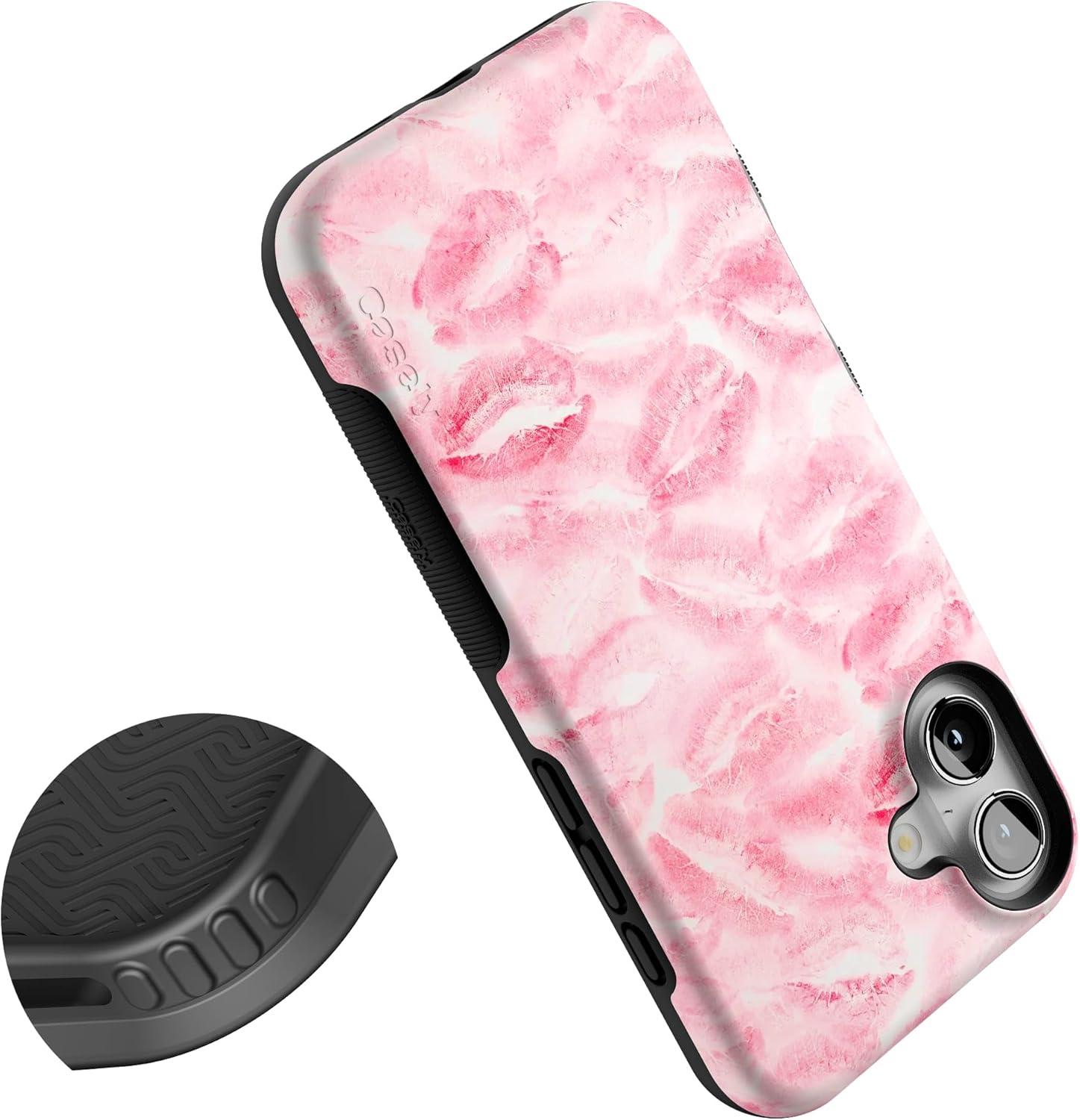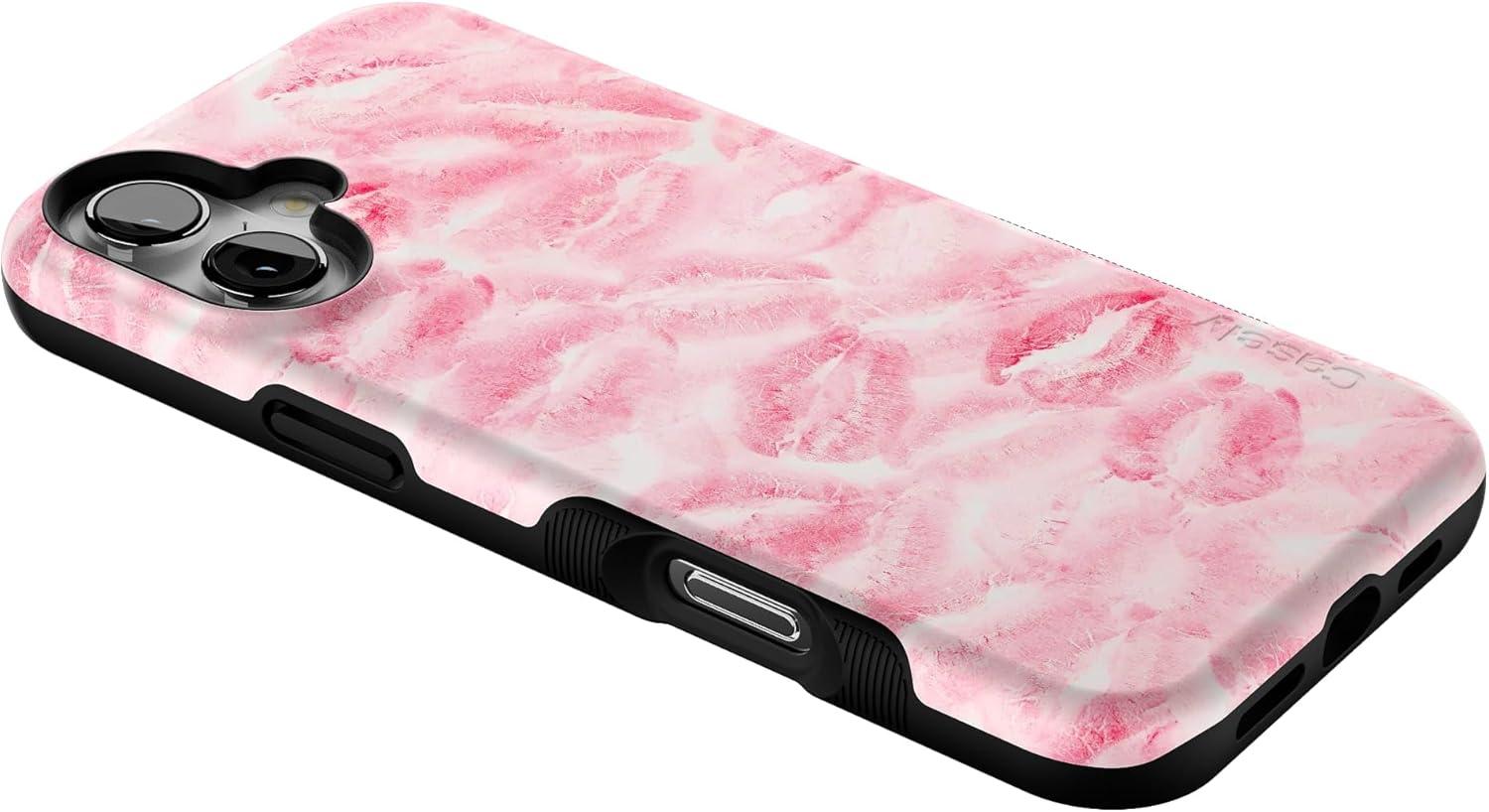 Casely iPhone 16 Case | Botanical Blooms | Floral Patchwork | Compatible with MagSafe | Bold Protective Design(Sealed with a Kiss | Pink Lipstick)