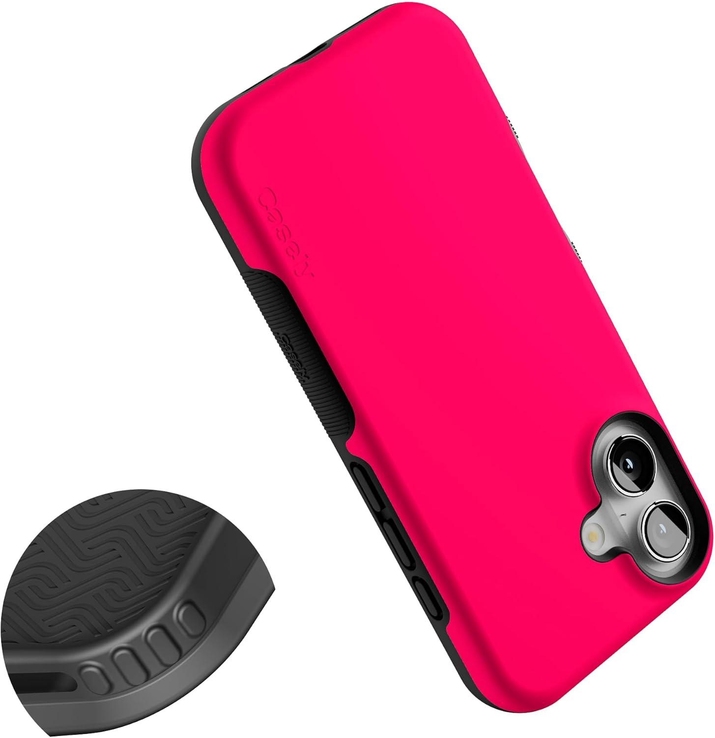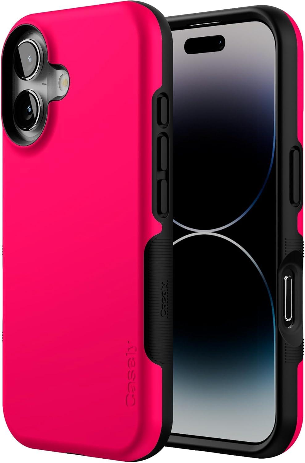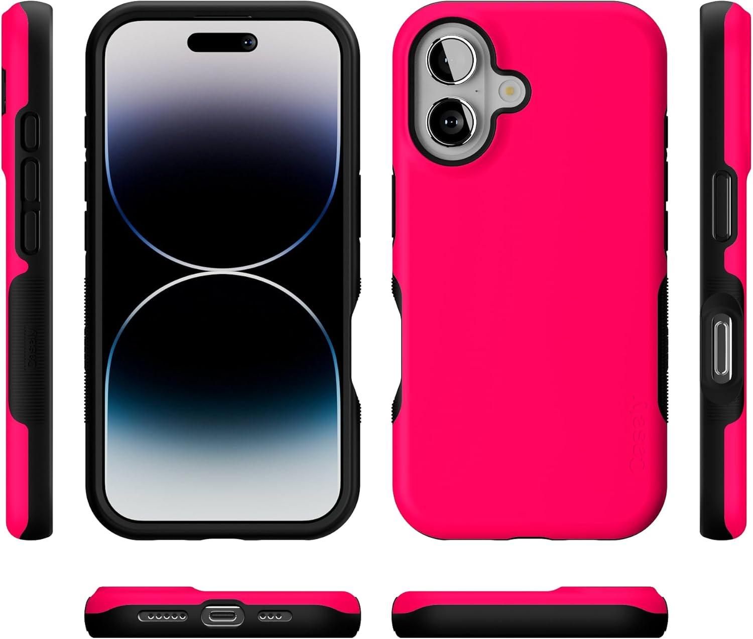 Casely iPhone 16 Case | Botanical Blooms | Floral Patchwork | Compatible with MagSafe | Bold Protective Design(Think Pink | Solid Neon Pink)