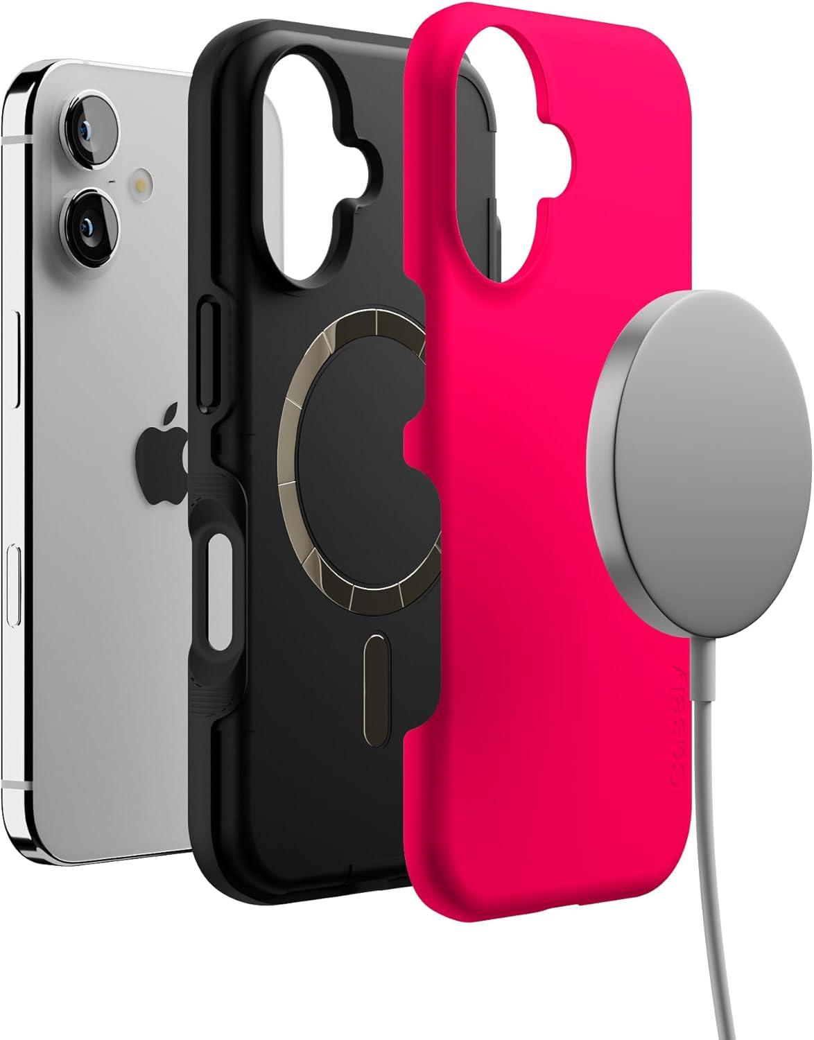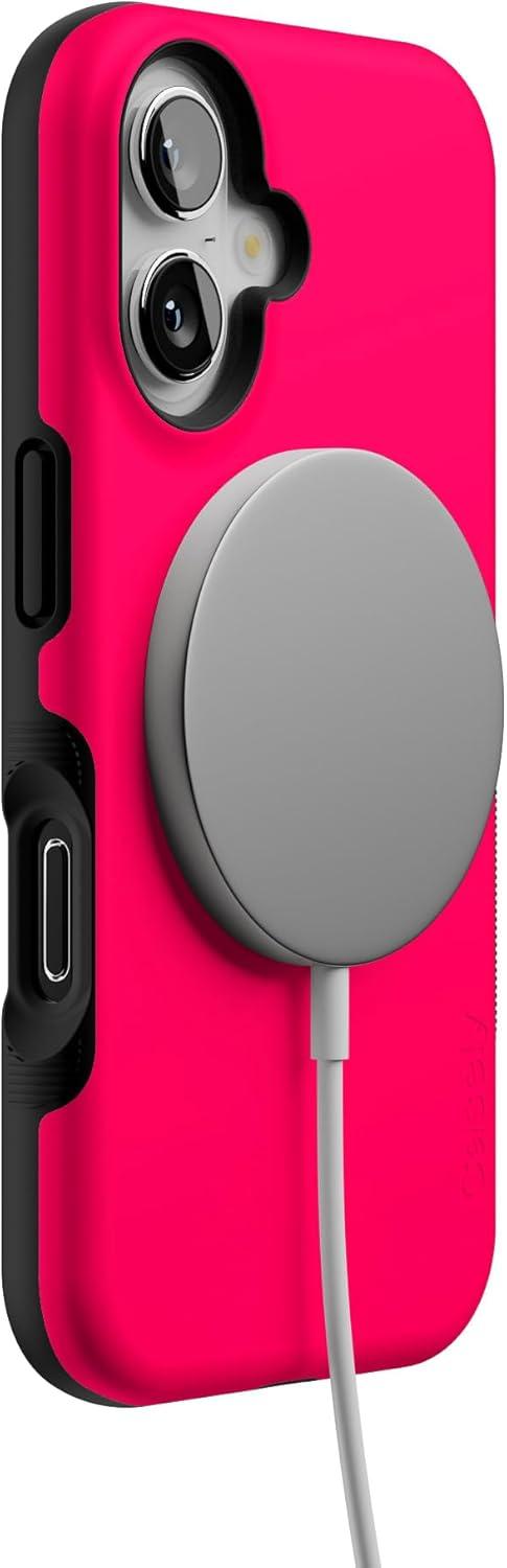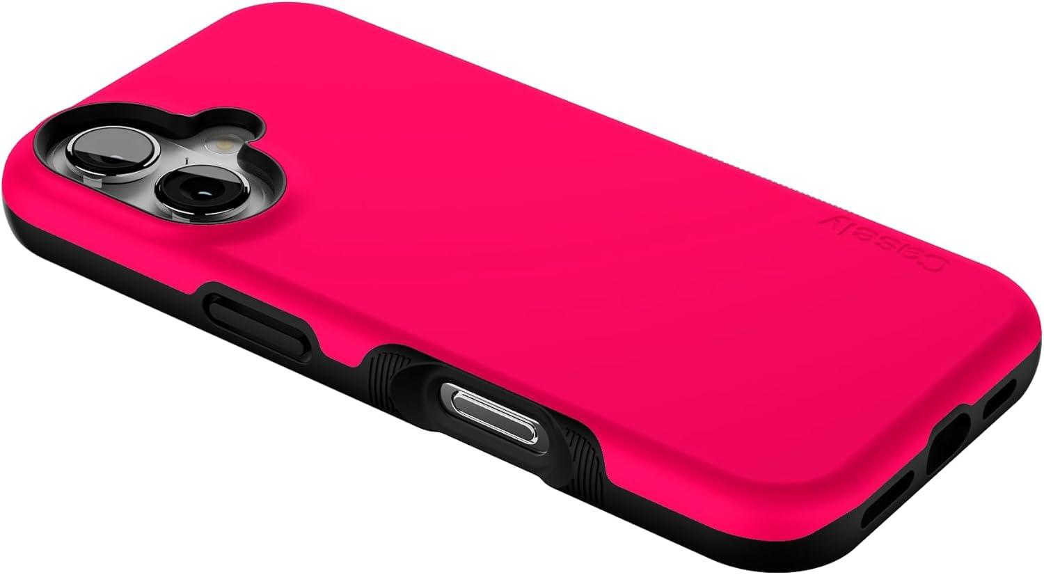 Casely iPhone 16 Case | Botanical Blooms | Floral Patchwork | Compatible with MagSafe | Bold Protective Design(Think Pink | Solid Neon Pink)