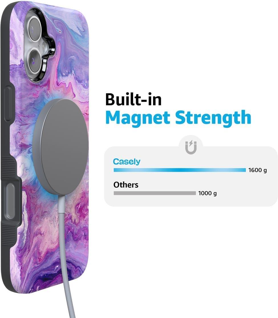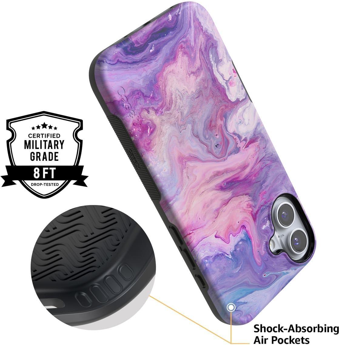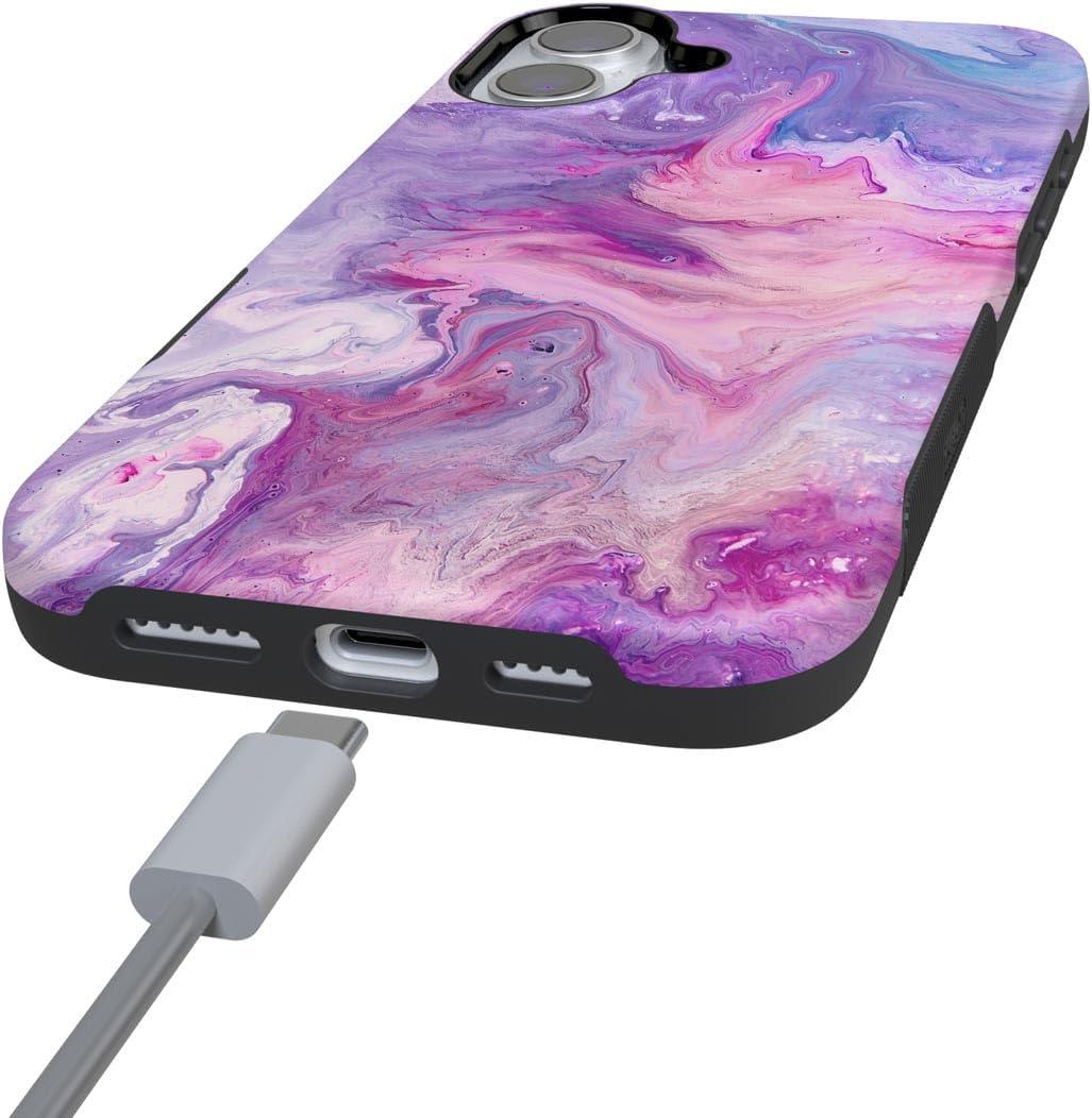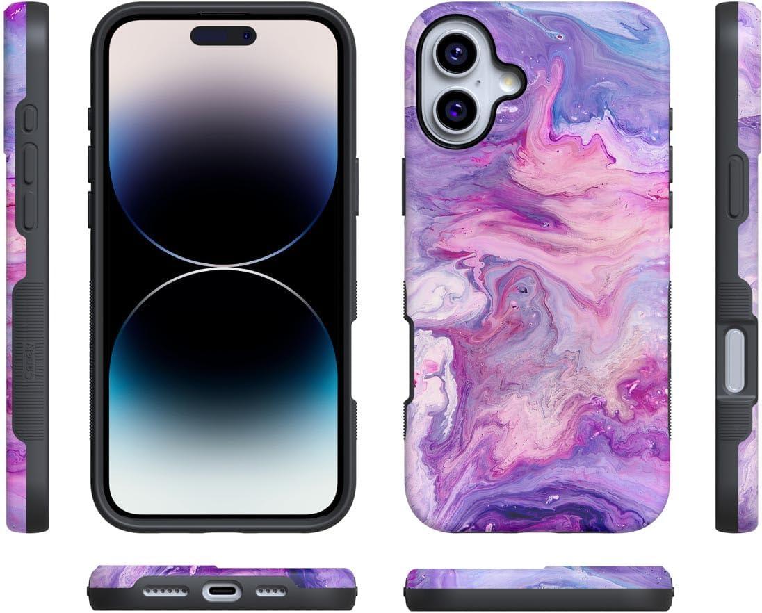 Casely iPhone 16 Case | Botanical Blooms | Floral Patchwork | Compatible with MagSafe | Bold Protective Design(Tie Dying Over You | Purple Marble)