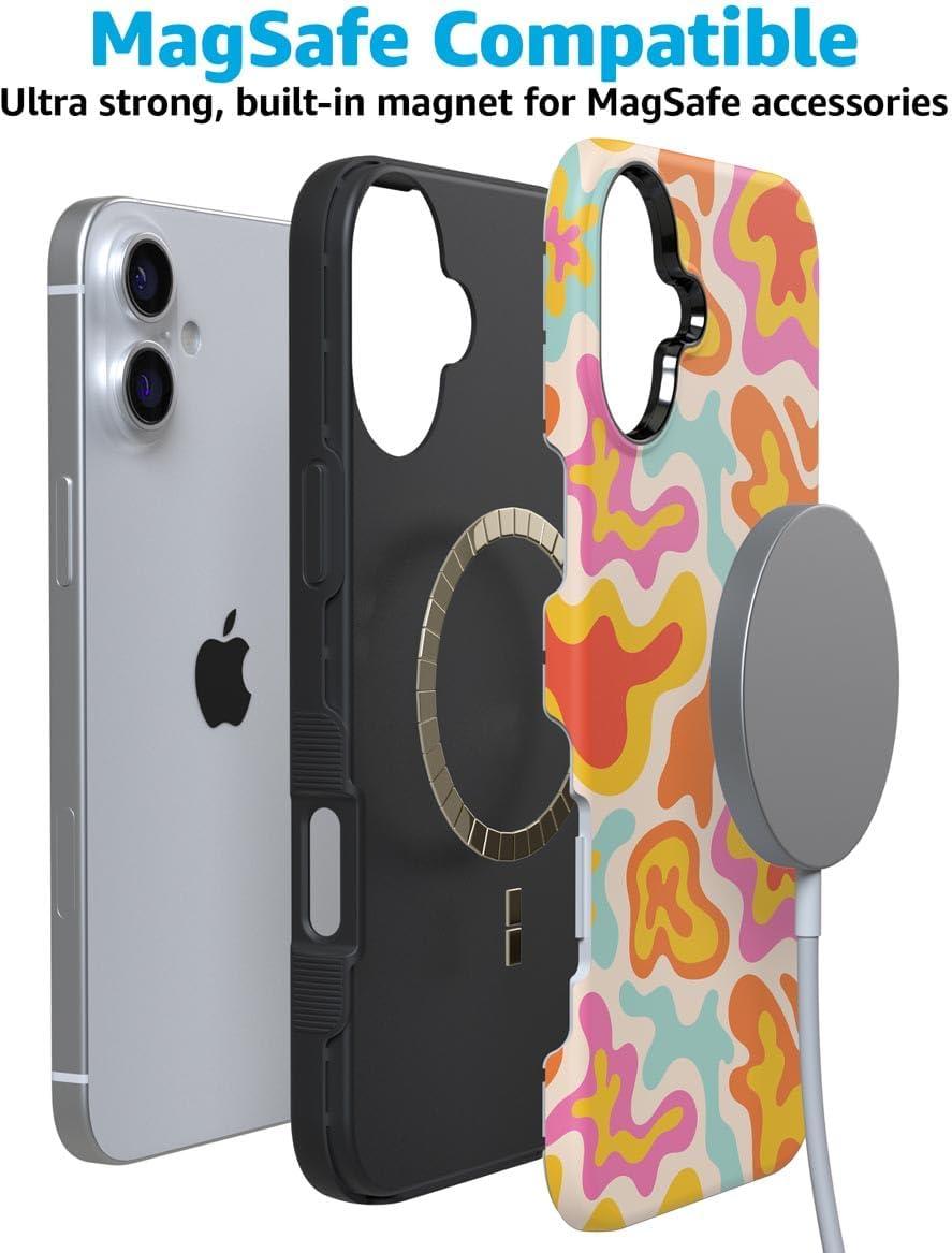 Casely iPhone 16 Case | Botanical Blooms | Floral Patchwork | Compatible with MagSafe | Bold Protective Design(Tropical Color Splash | Abstract Retro)