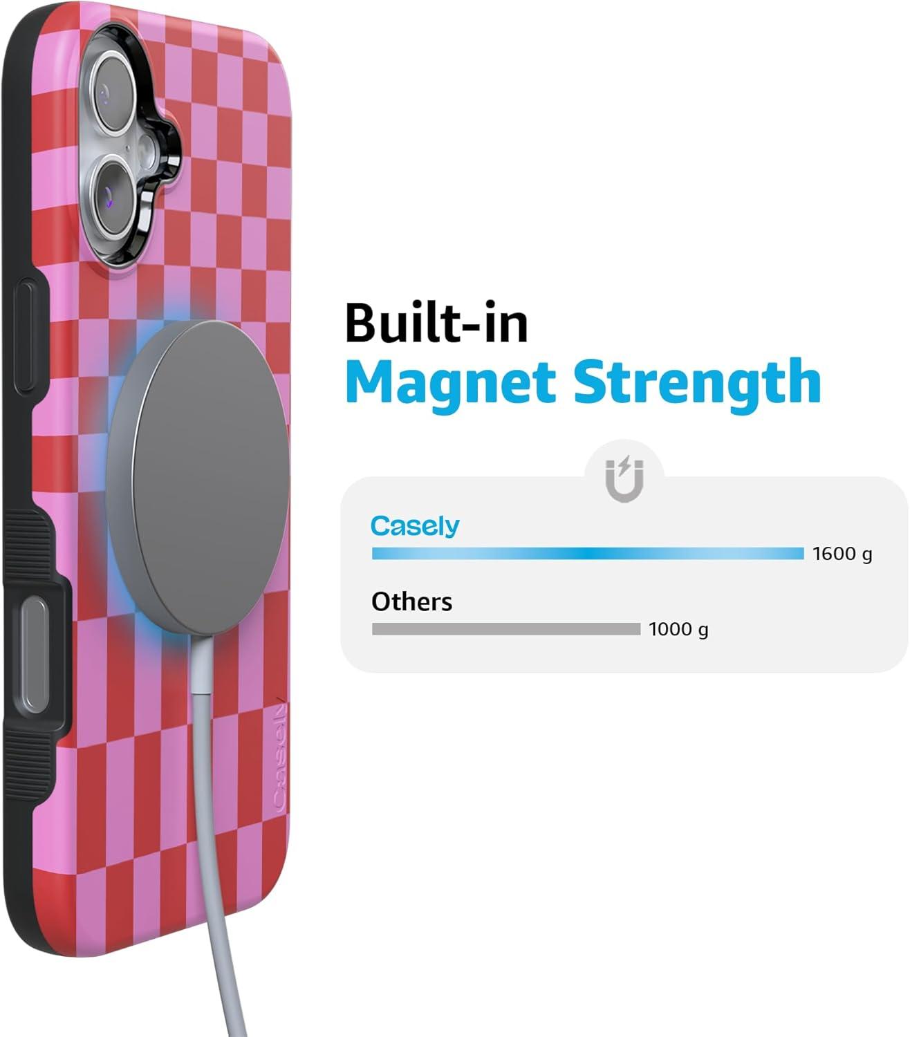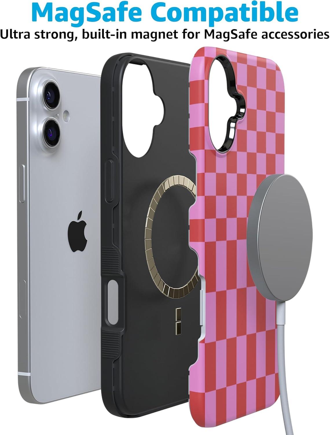 Casely iPhone 16 Case | Botanical Blooms | Floral Patchwork | Compatible with MagSafe | Bold Protective Design(Vibe Check | Pink Checkerboard)