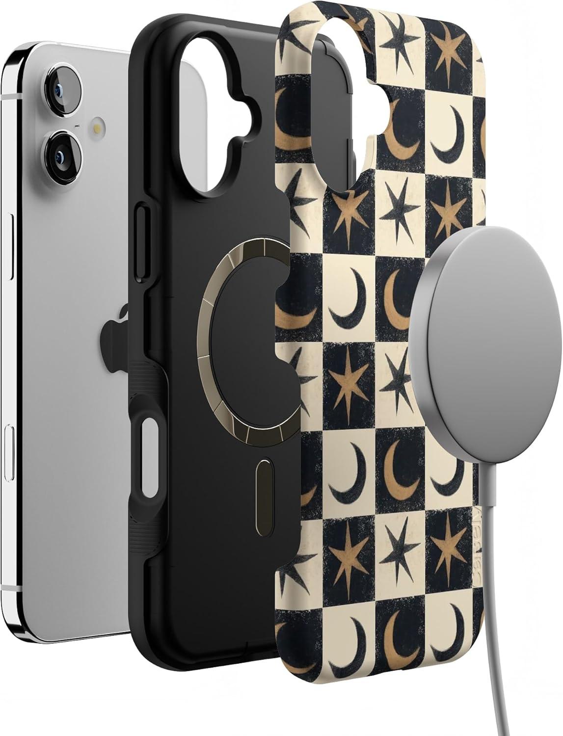 Casely iPhone 16 Case | Mystic Moonstar | Black Celestial | Compatible with MagSafe | Bold Protective Design