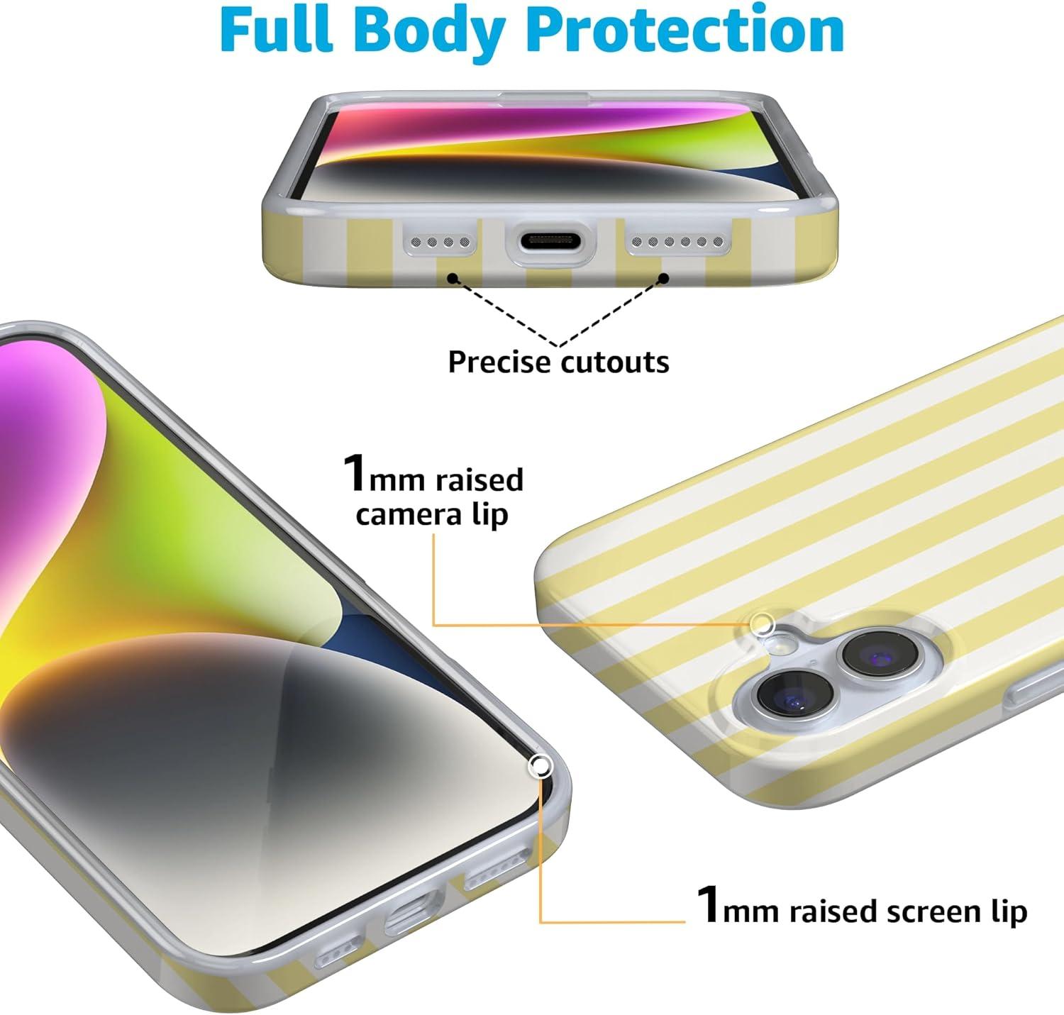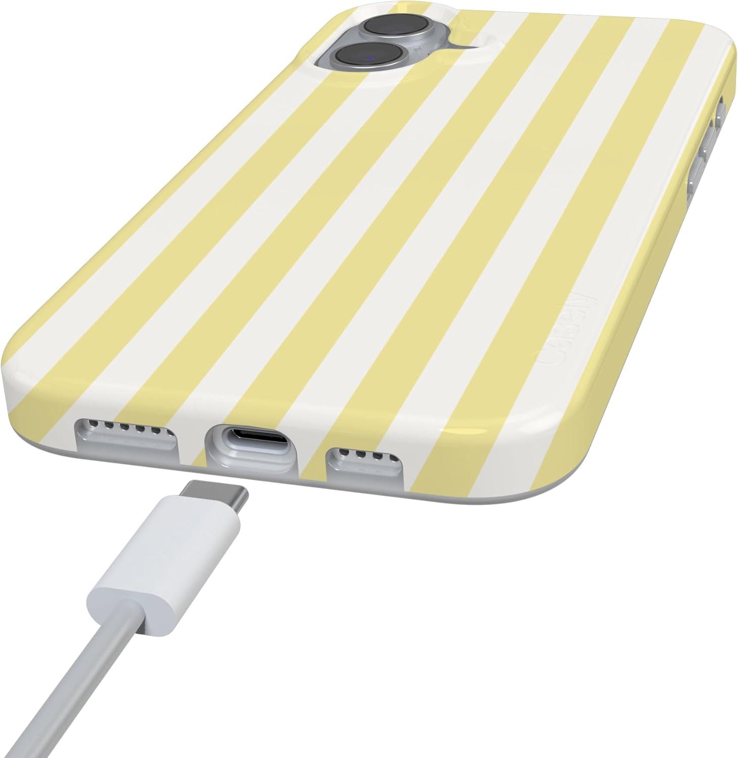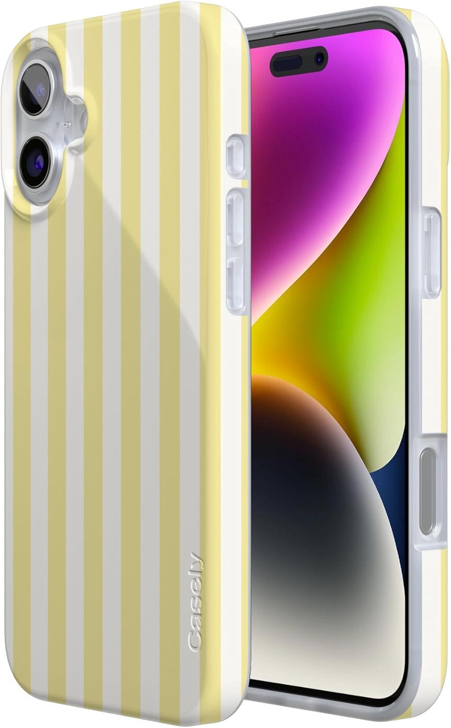 Casely iPhone 16 Case | Nantucket Cottage | Blue Hydrangea | Compatible with MagSafe | Classic Ultra Slim Design(Butter Yellow Stripes | Sunday Best)