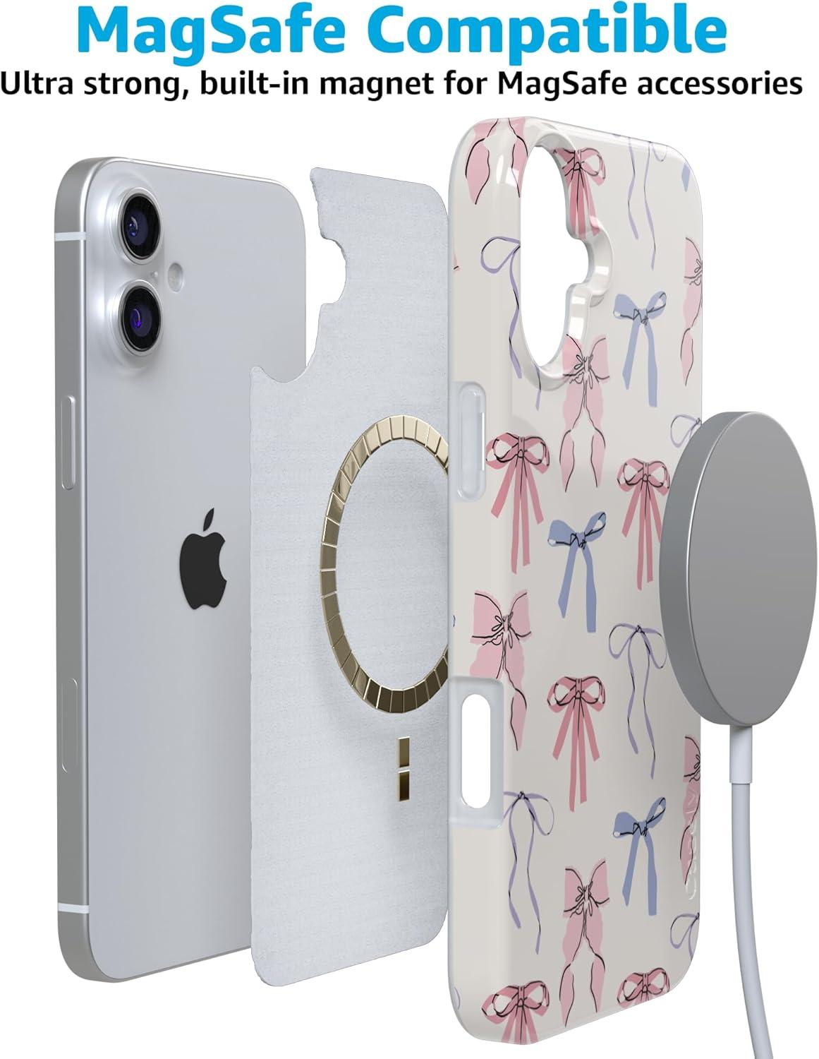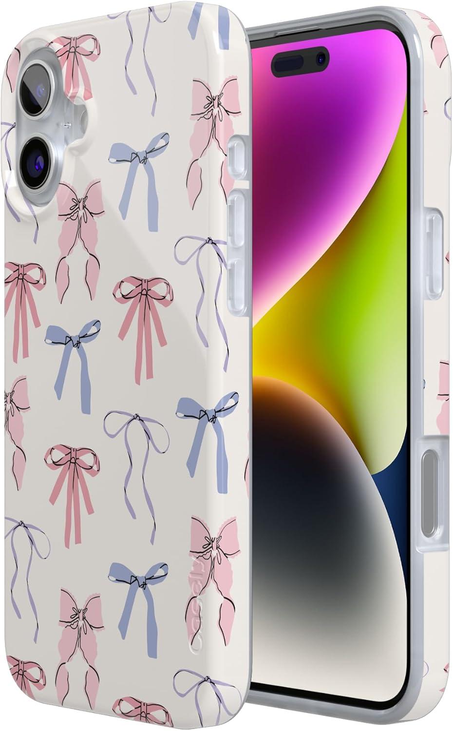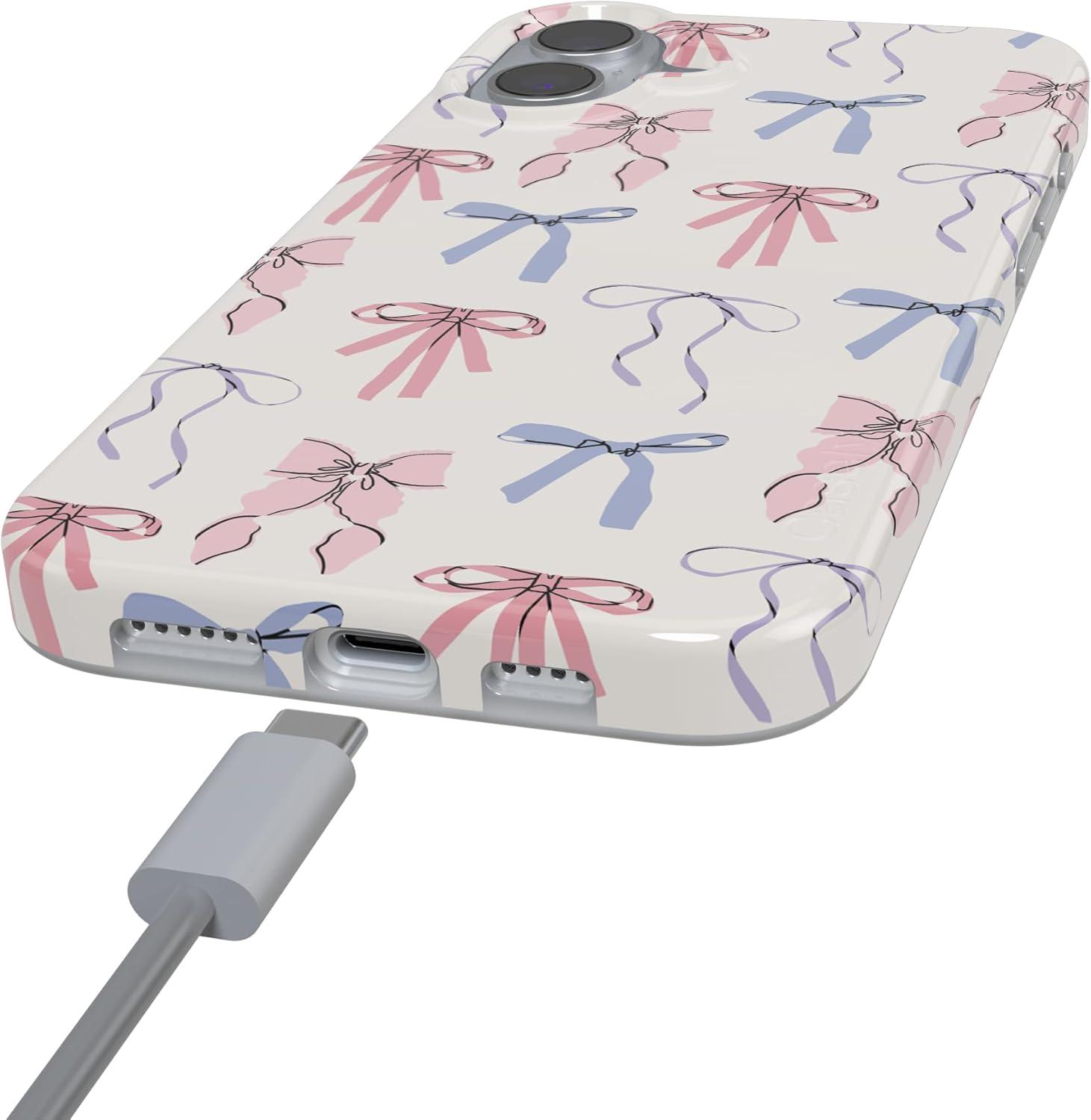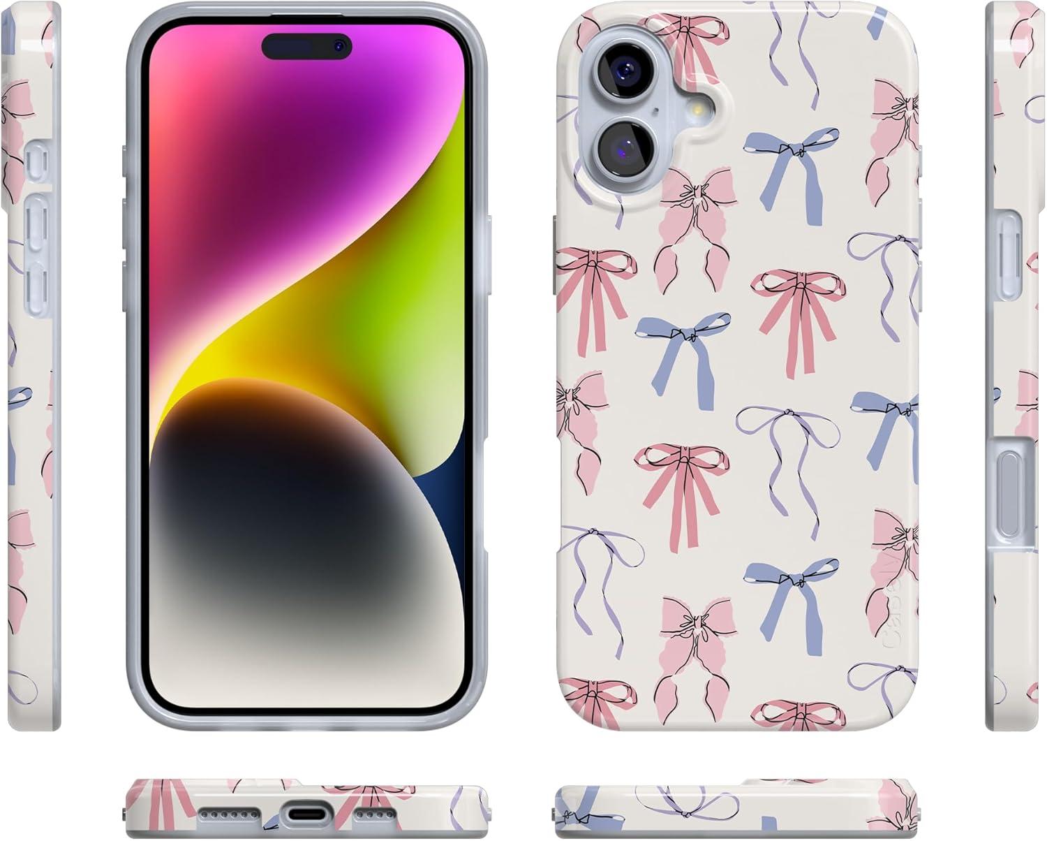 Casely iPhone 16 Case | Nantucket Cottage | Blue Hydrangea | Compatible with MagSafe | Classic Ultra Slim Design(Coquette Girlie | Pastel Bows)