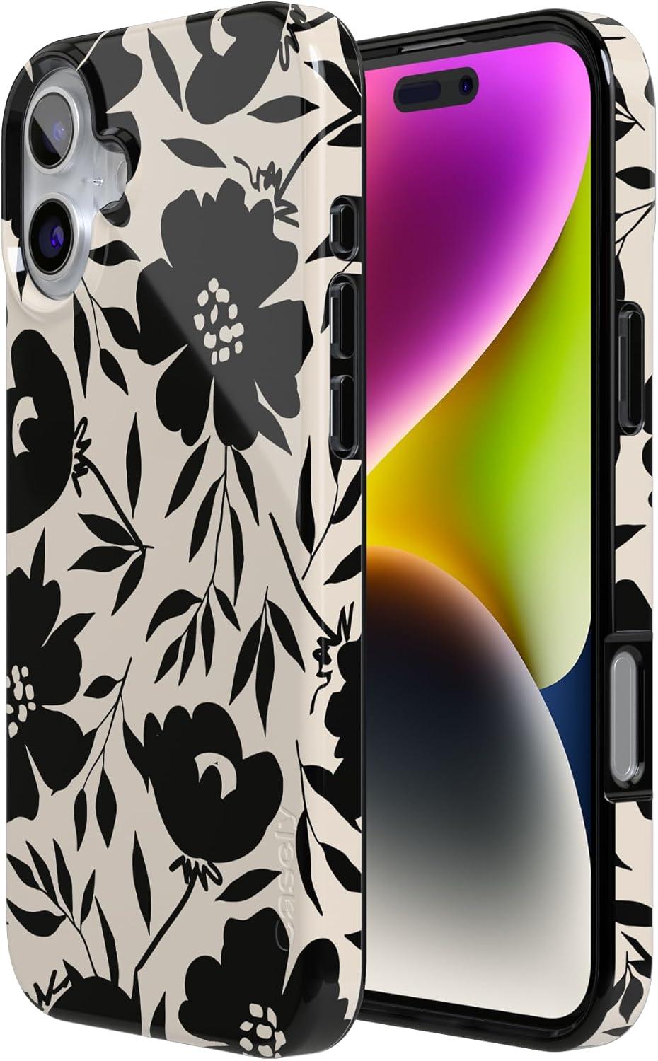 Casely iPhone 16 Case | Nantucket Cottage | Blue Hydrangea | Compatible with MagSafe | Classic Ultra Slim Design(Dark Fantasy | Contrast Floral)