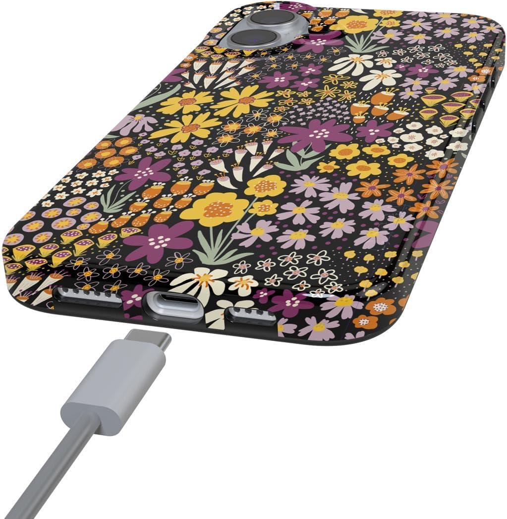 Casely iPhone 16 Case | Nantucket Cottage | Blue Hydrangea | Compatible with MagSafe | Classic Ultra Slim Design(Falling for You | Plum Floral)