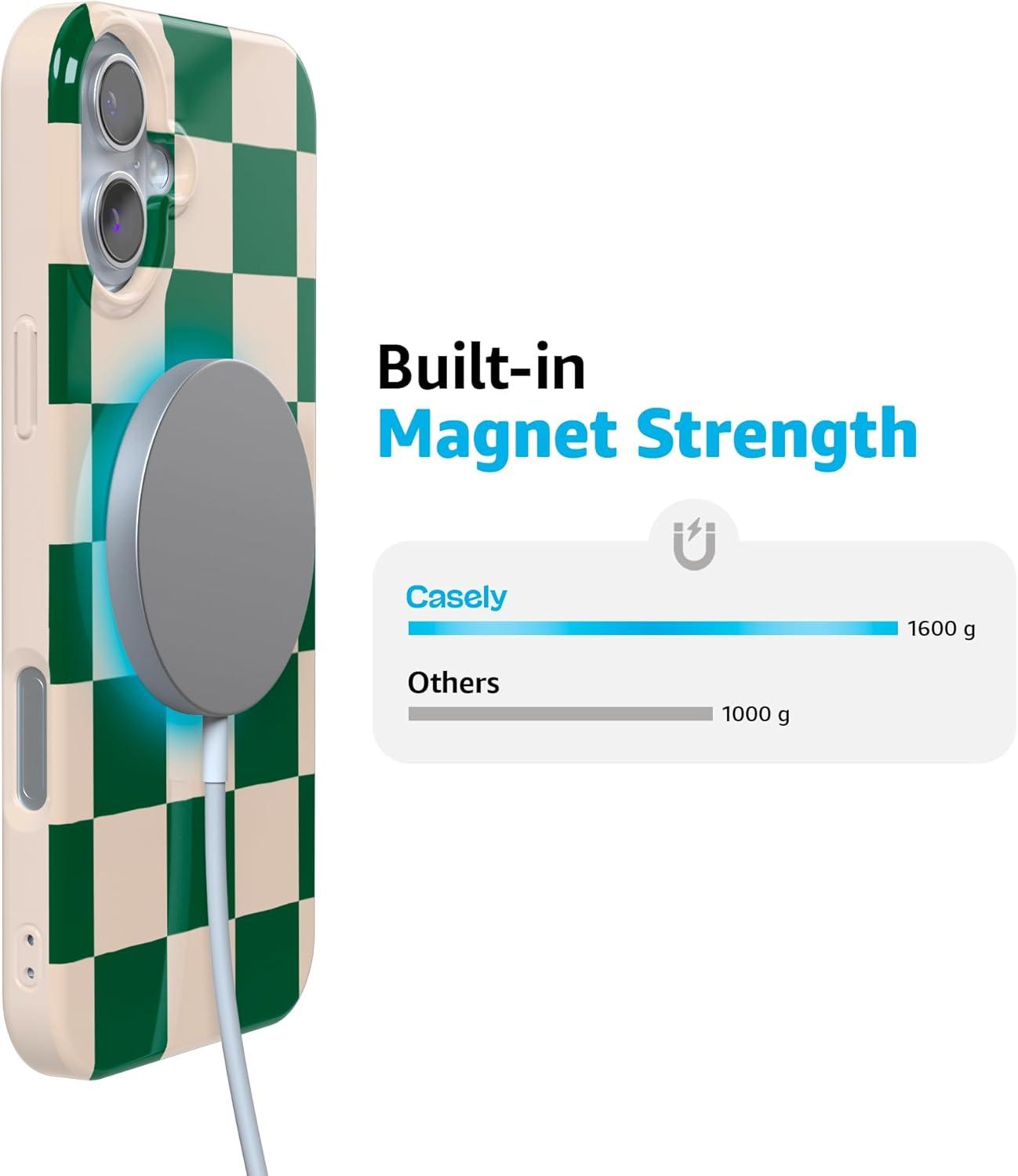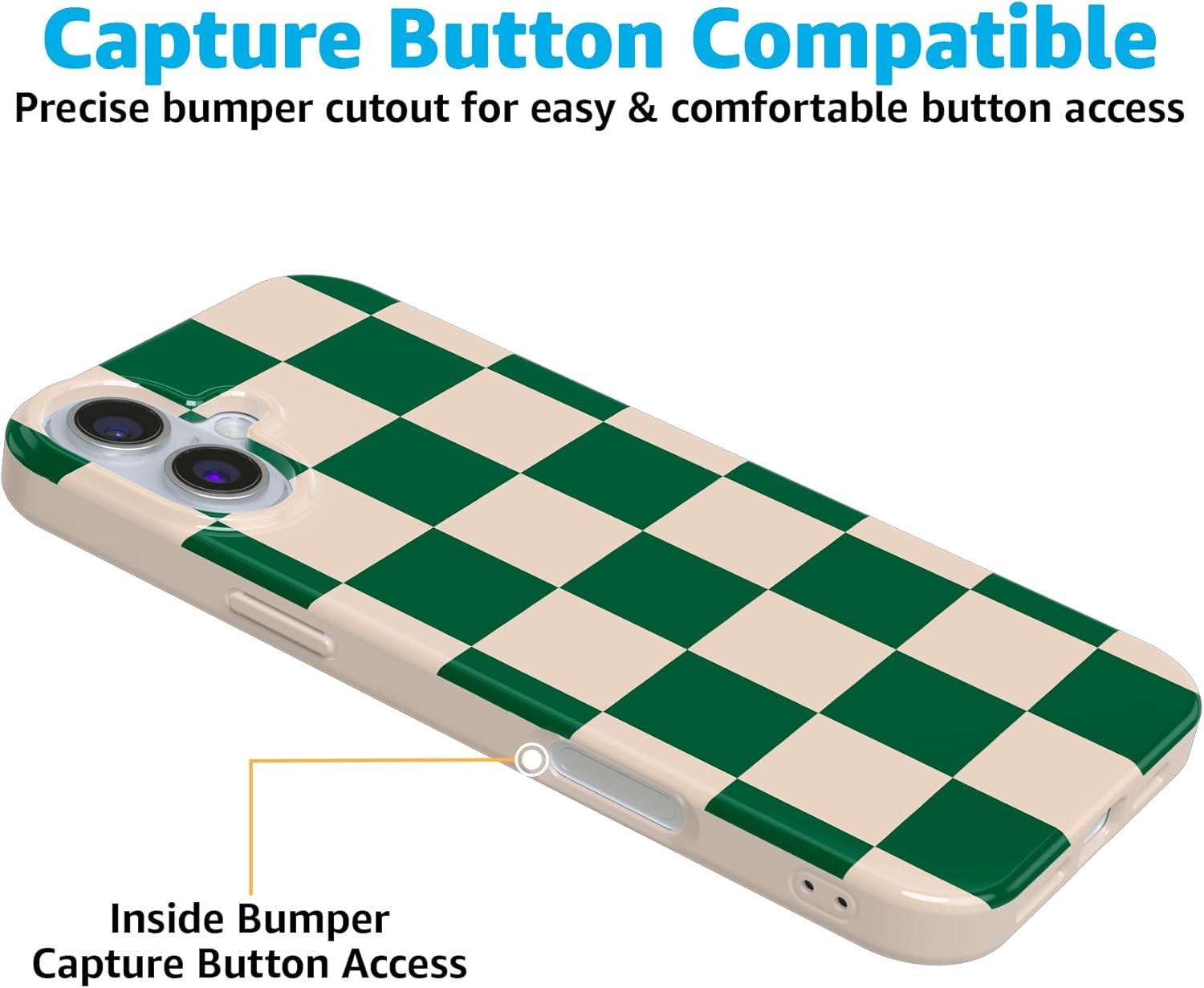 Casely iPhone 16 Case | Nantucket Cottage | Blue Hydrangea | Compatible with MagSafe | Classic Ultra Slim Design(Fit Check | Green Checkerboard)