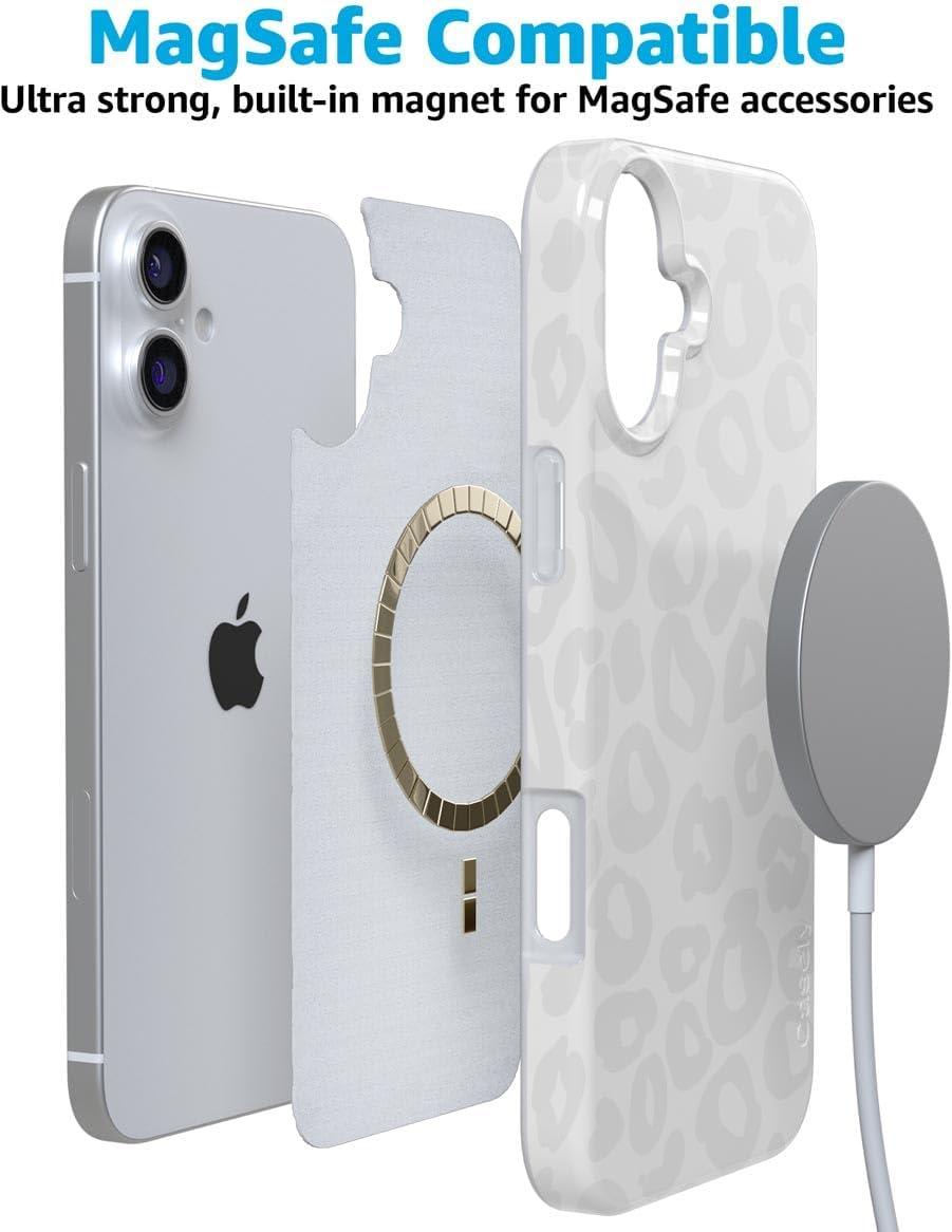 Casely iPhone 16 Case | Nantucket Cottage | Blue Hydrangea | Compatible with MagSafe | Classic Ultra Slim Design(Into the Wild | White Snow Leopard)