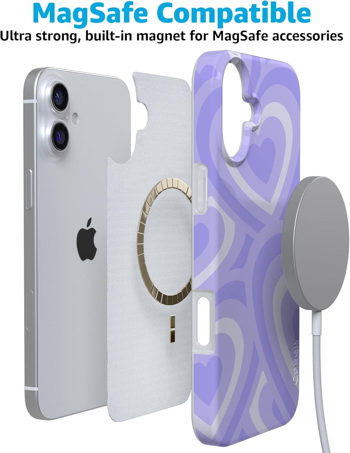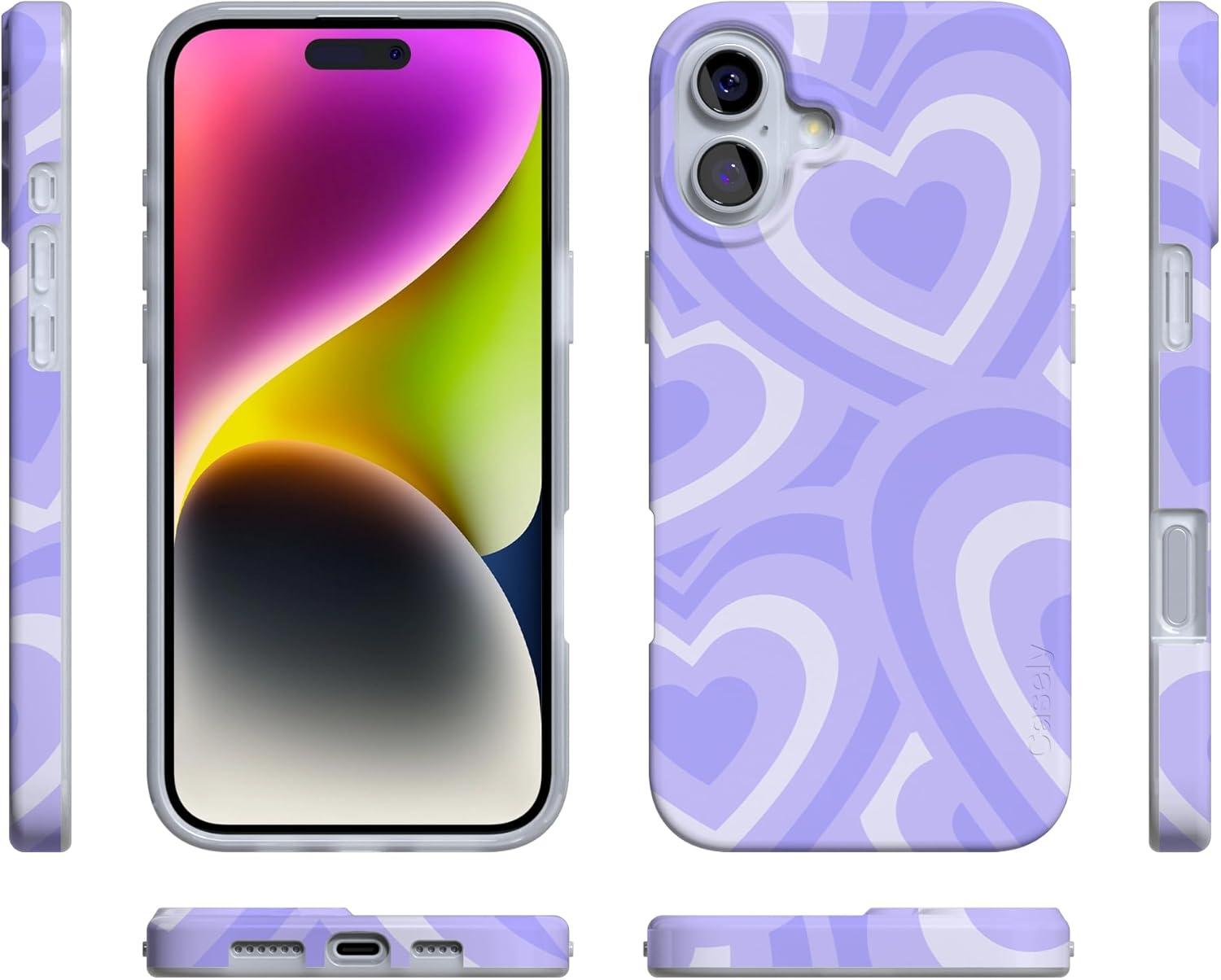 Casely iPhone 16 Case | Nantucket Cottage | Blue Hydrangea | Compatible with MagSafe | Classic Ultra Slim Design(Love Song | Lavender Heart)
