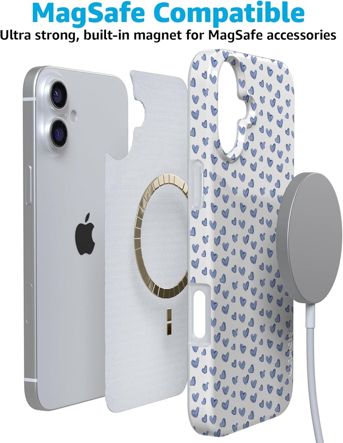 Casely iPhone 16 Case | Nantucket Cottage | Blue Hydrangea | Compatible with MagSafe | Classic Ultra Slim Design(Lovebug | Blue Hearts)