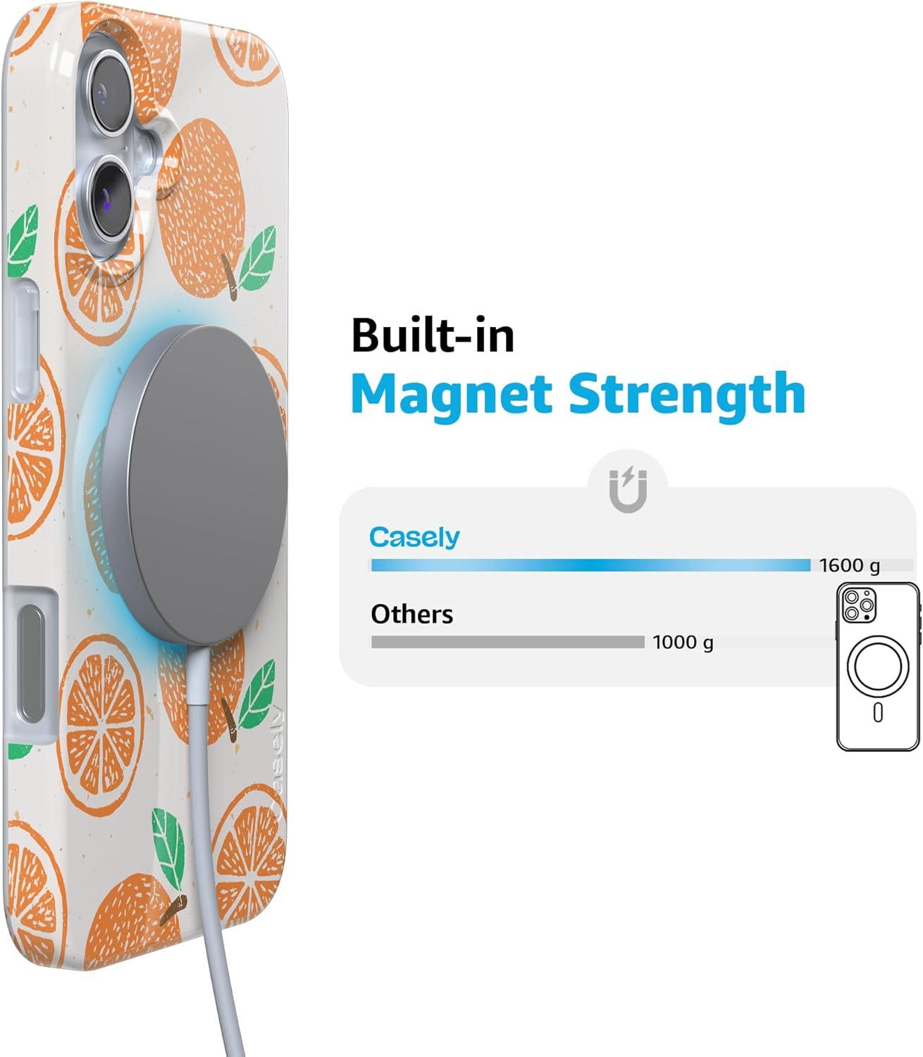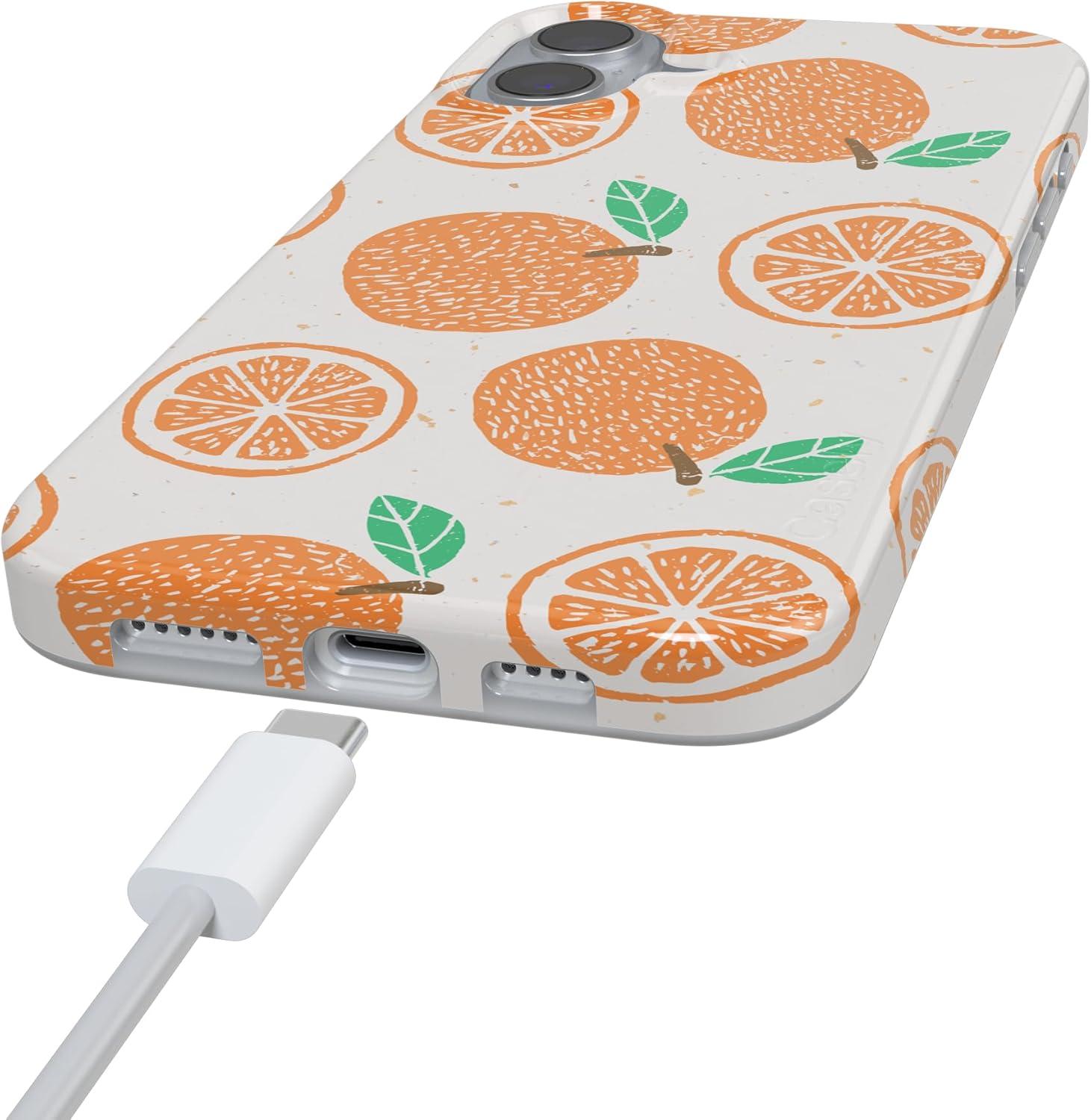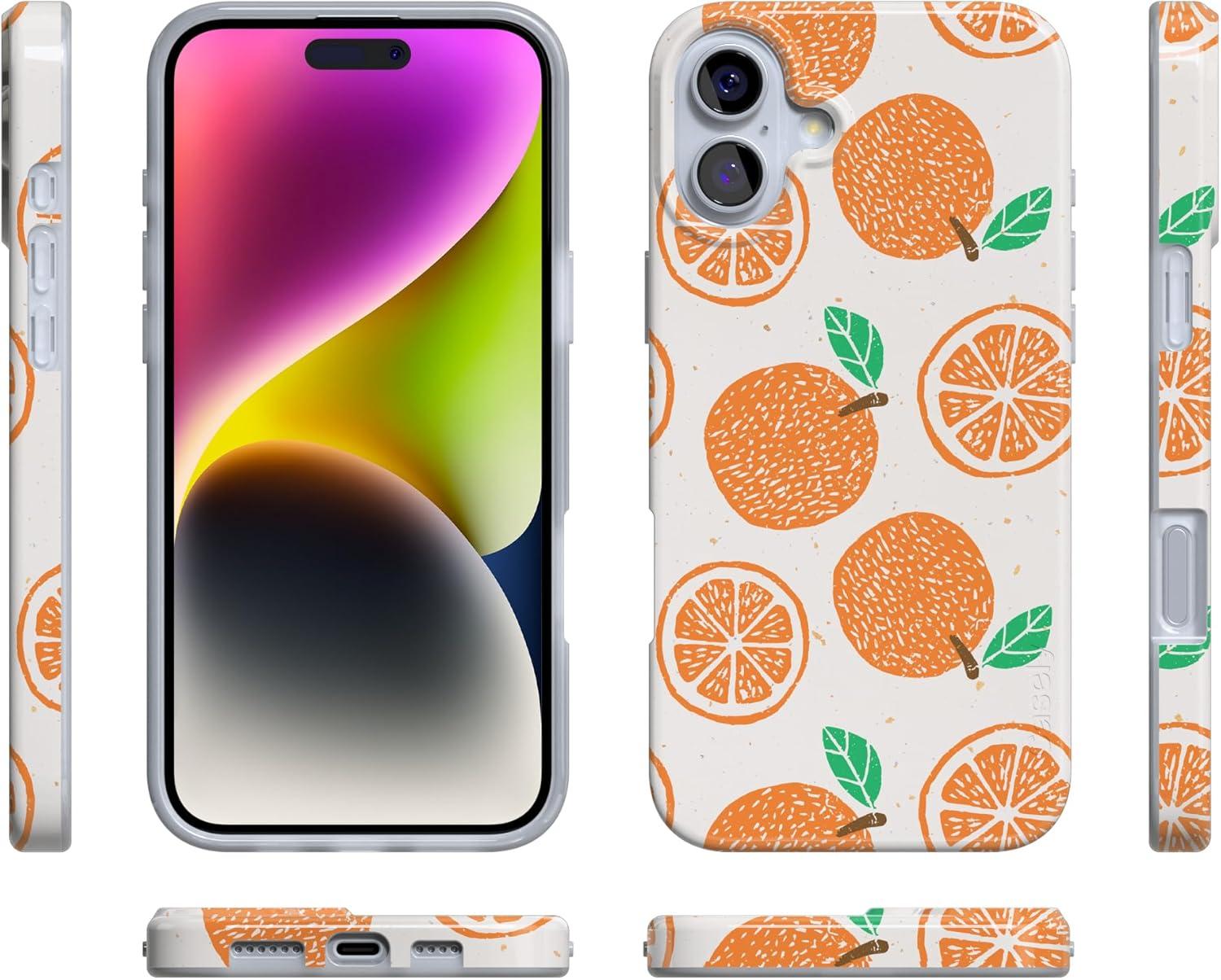 Casely iPhone 16 Case | Nantucket Cottage | Blue Hydrangea | Compatible with MagSafe | Classic Ultra Slim Design(Main Squeeze | Orange Stamped)