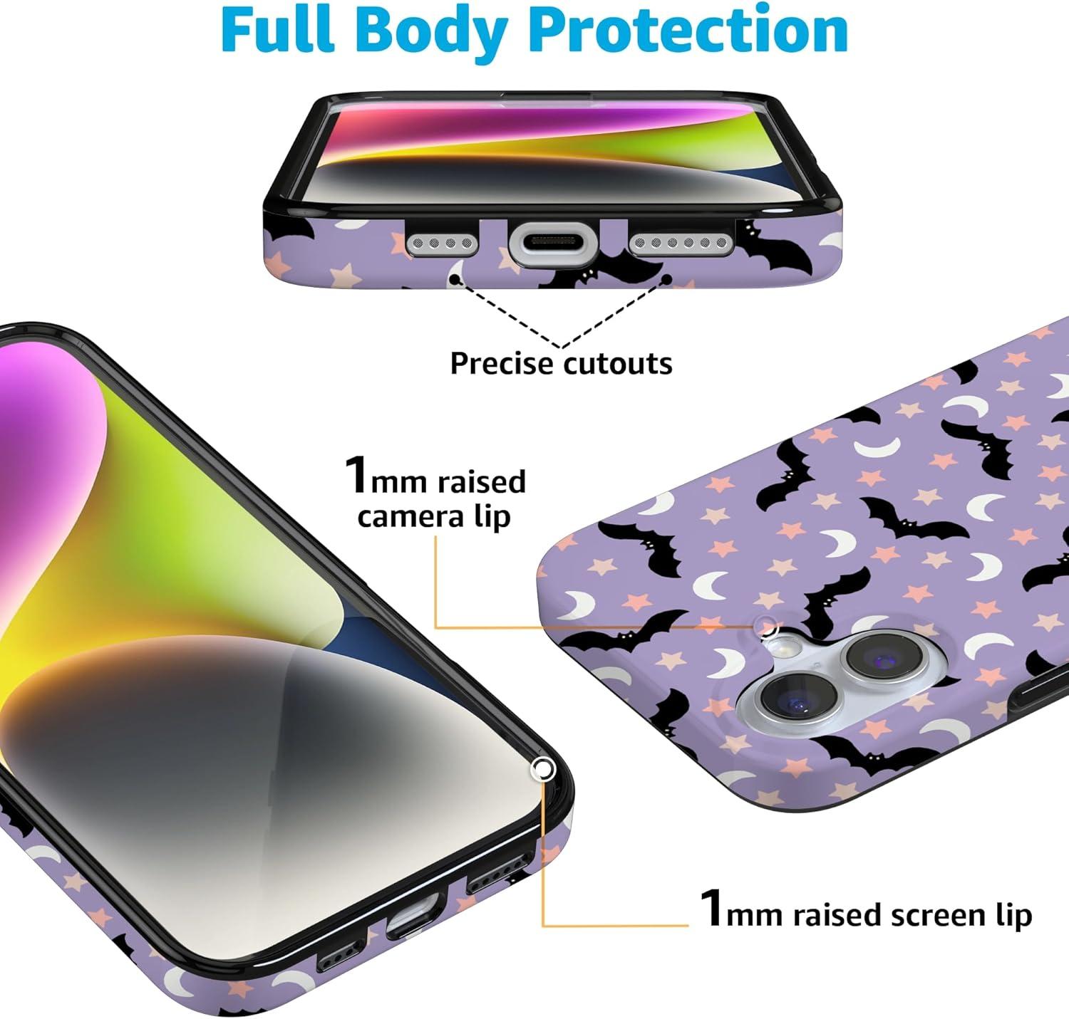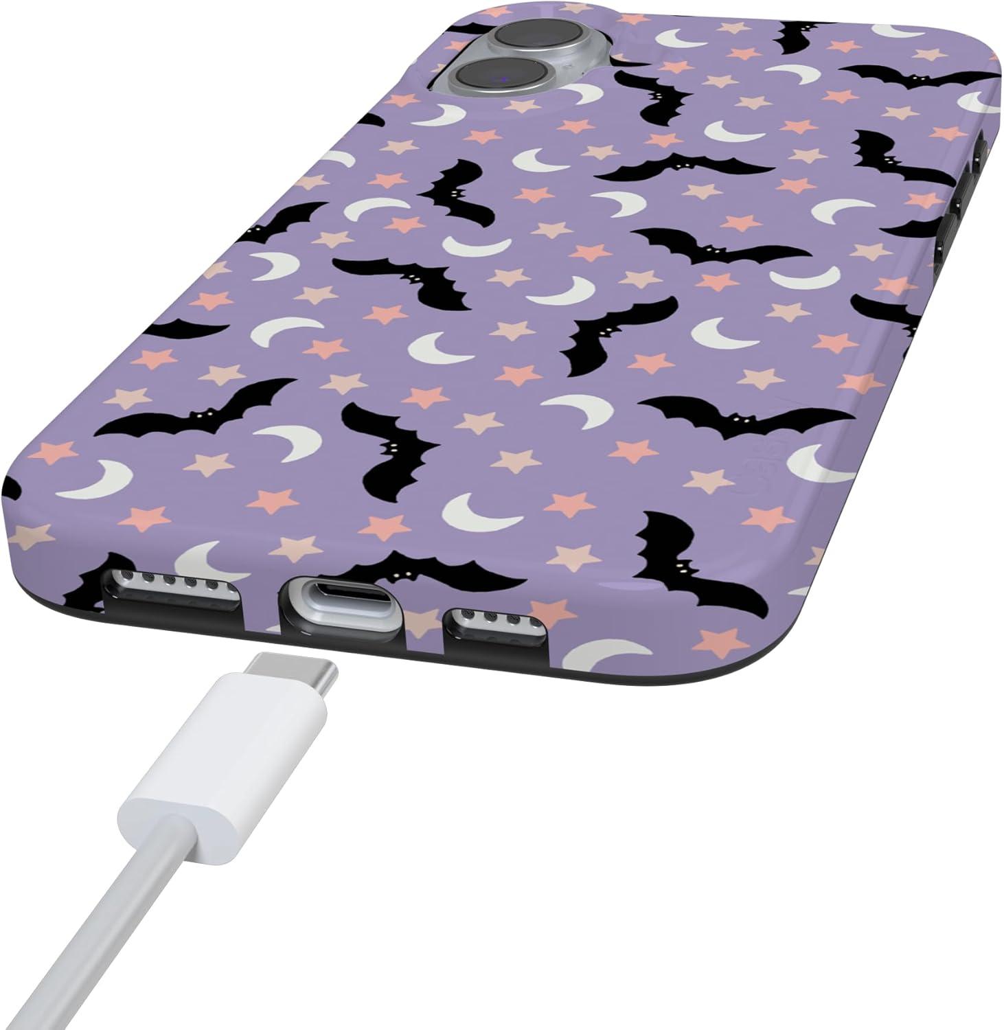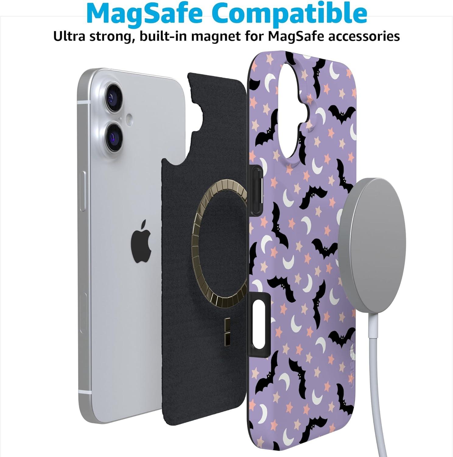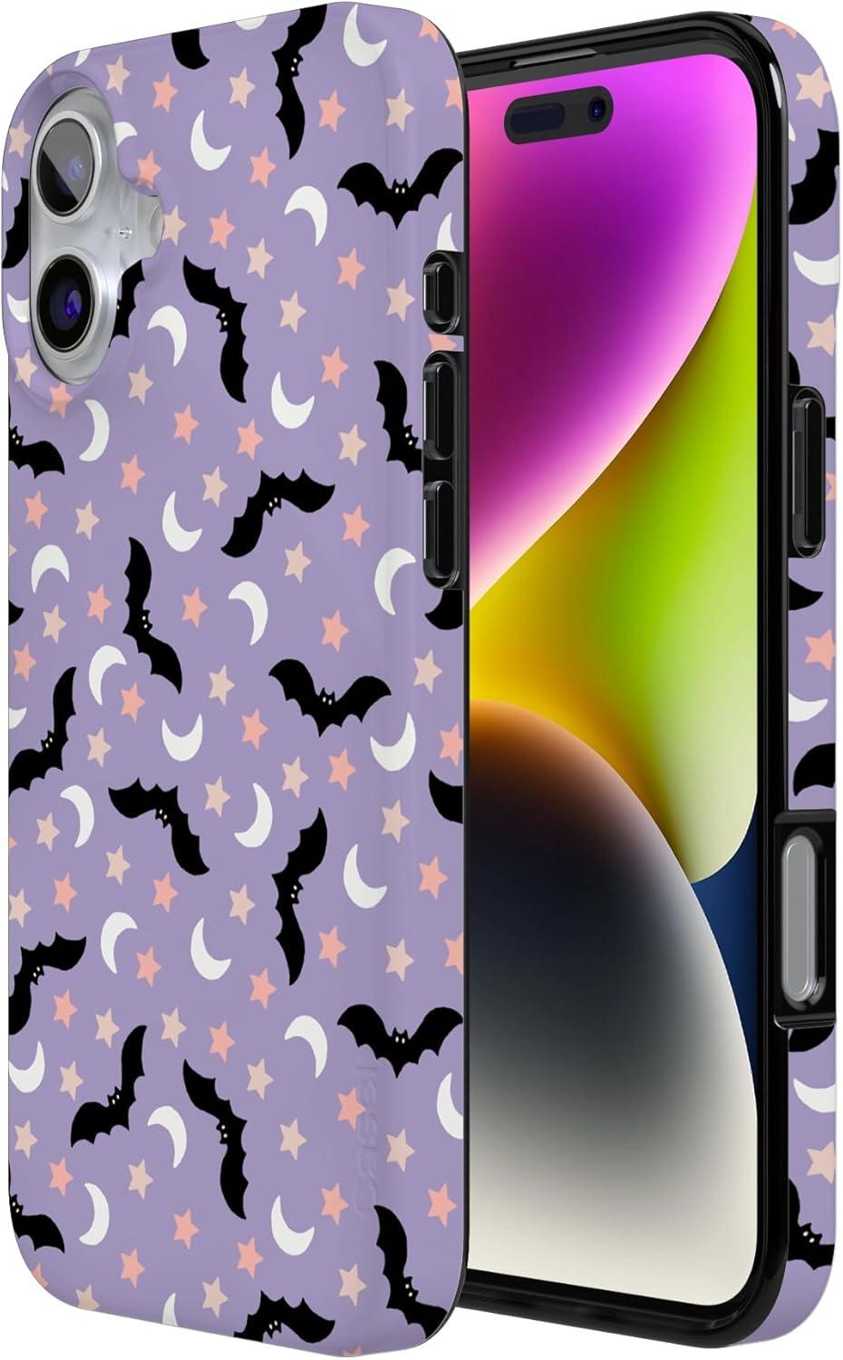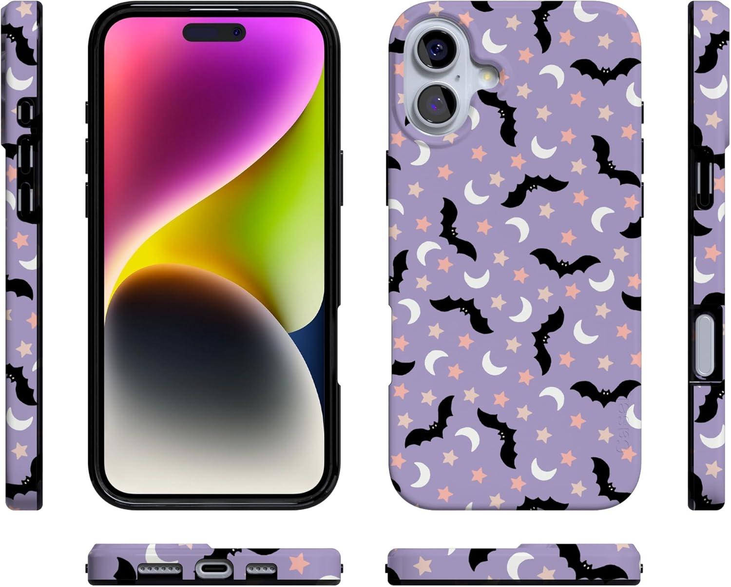 Casely iPhone 16 Case | Nantucket Cottage | Blue Hydrangea | Compatible with MagSafe | Classic Ultra Slim Design(Midnight Flight | Celestial Bats)
