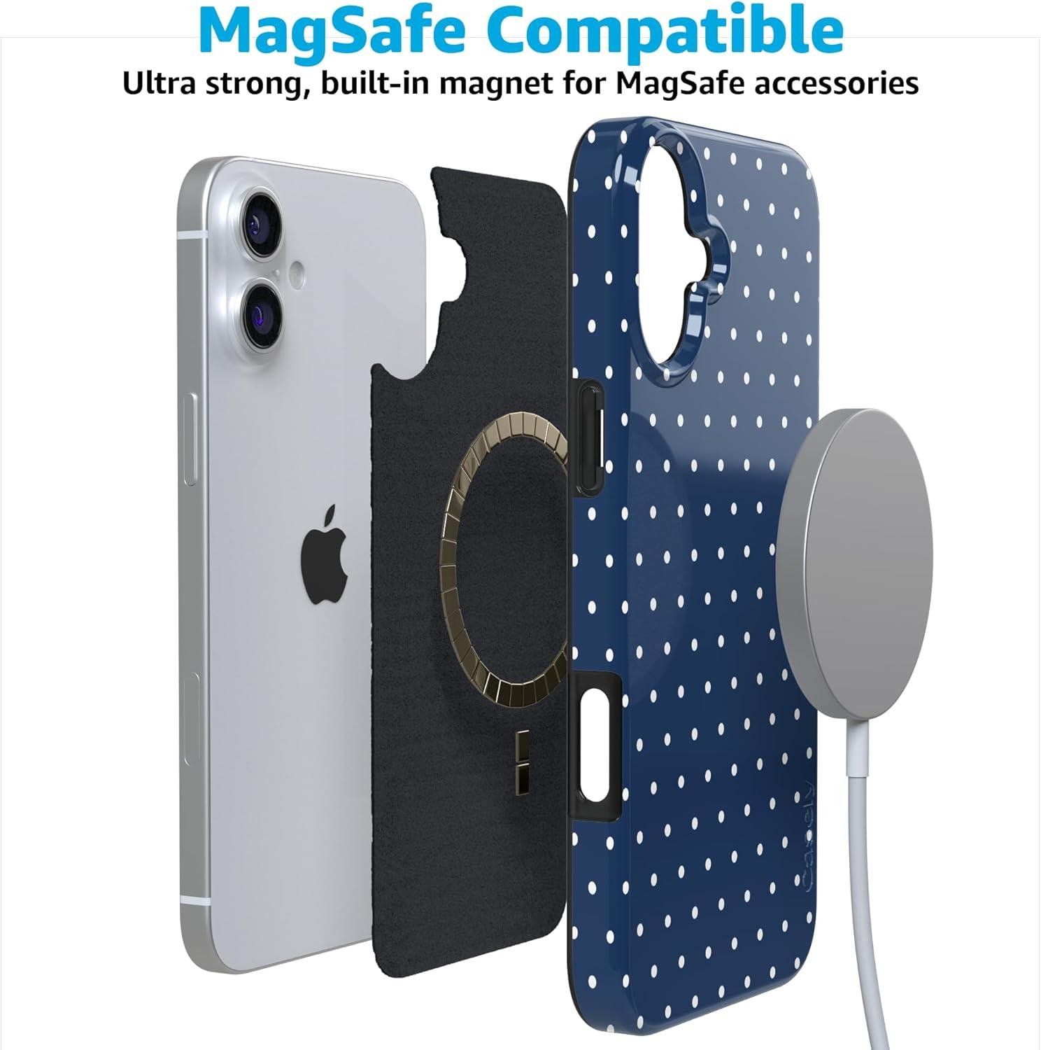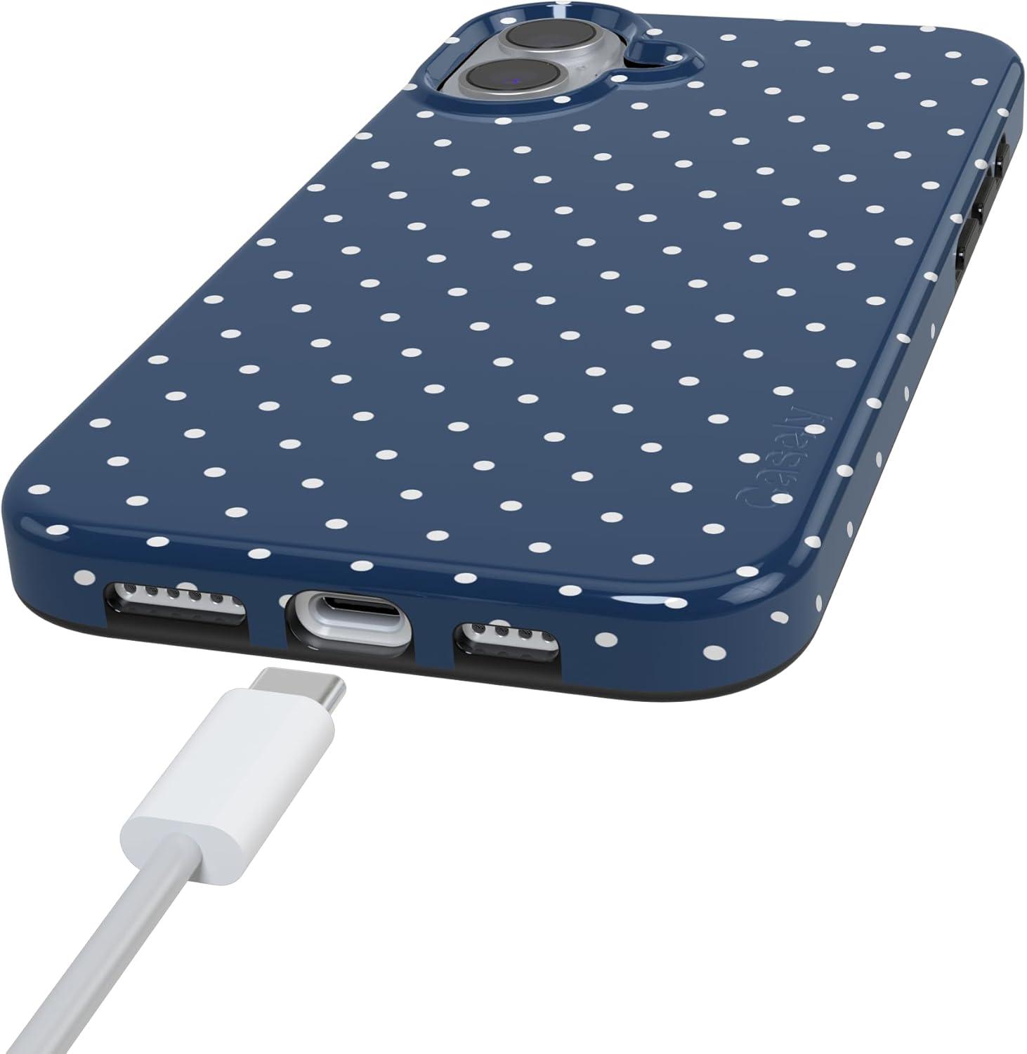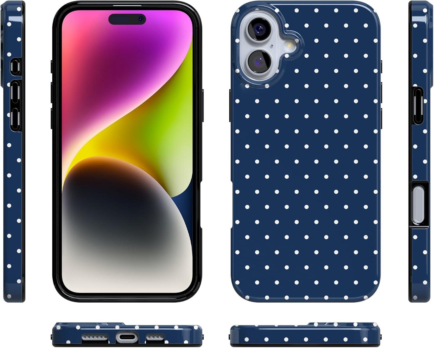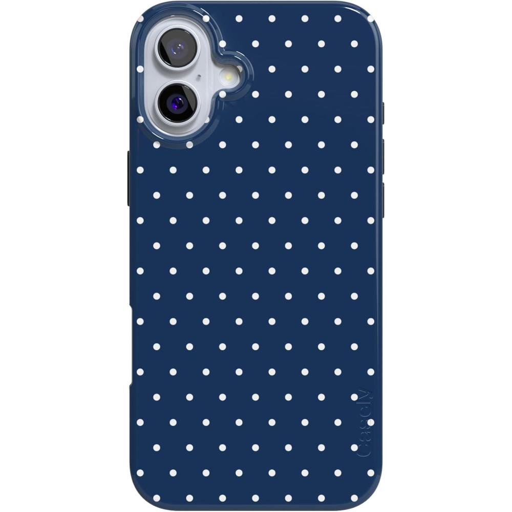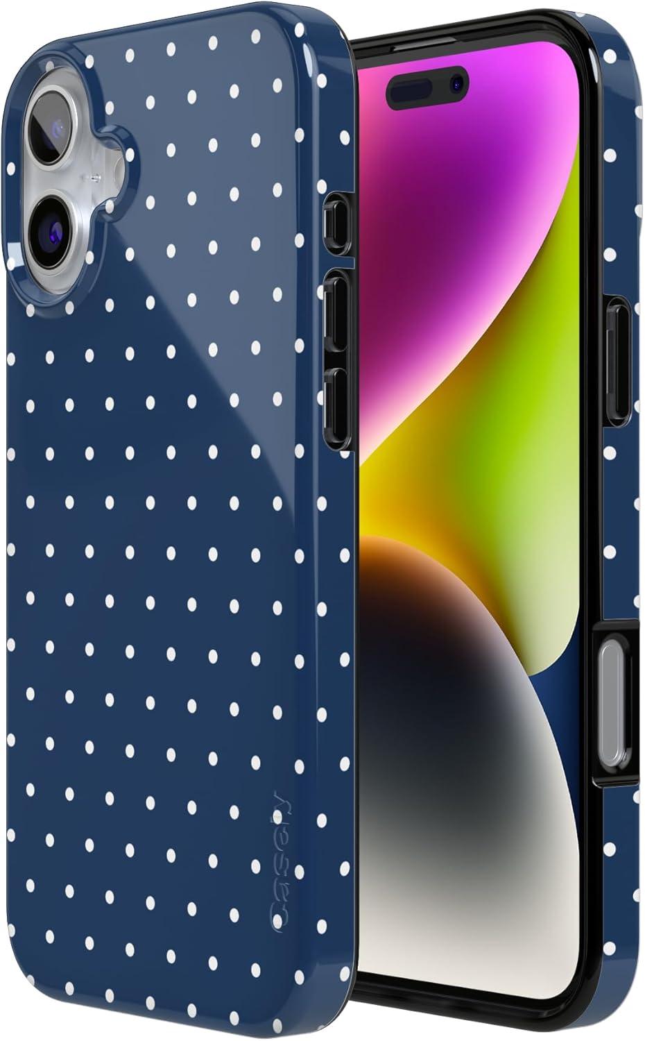 Casely iPhone 16 Case | Nantucket Cottage | Blue Hydrangea | Compatible with MagSafe | Classic Ultra Slim Design(On the Dot | Navy Polka Dot)