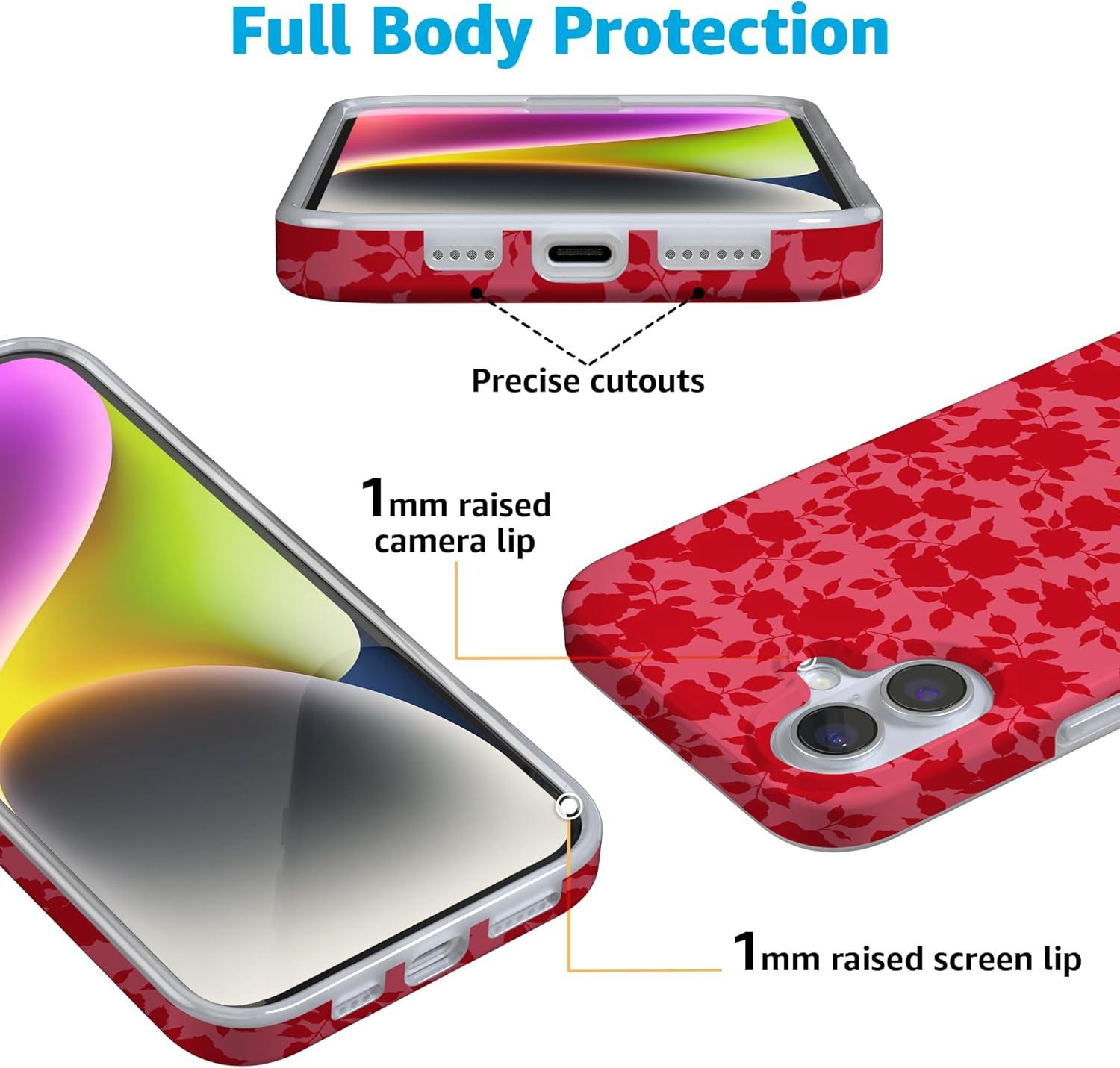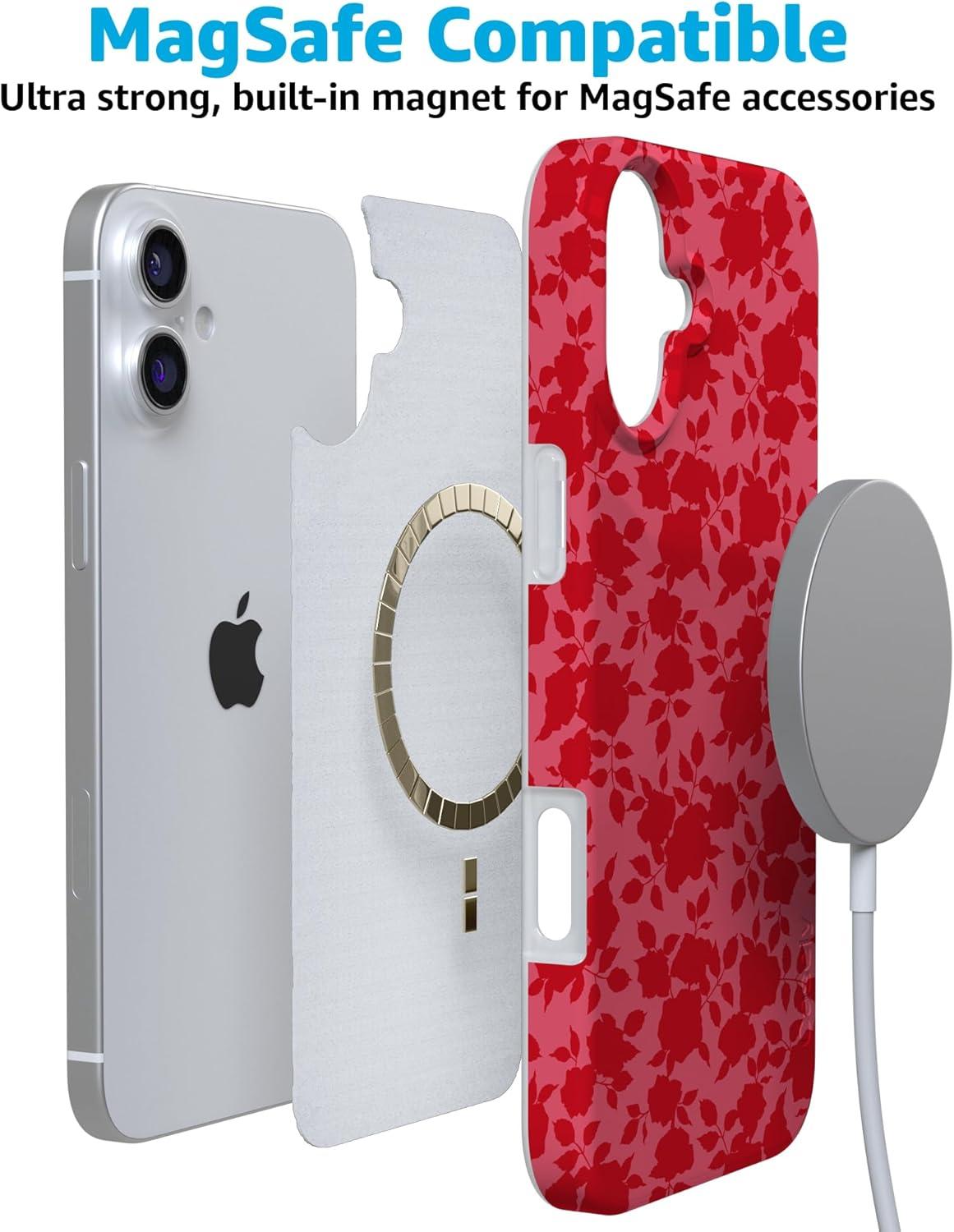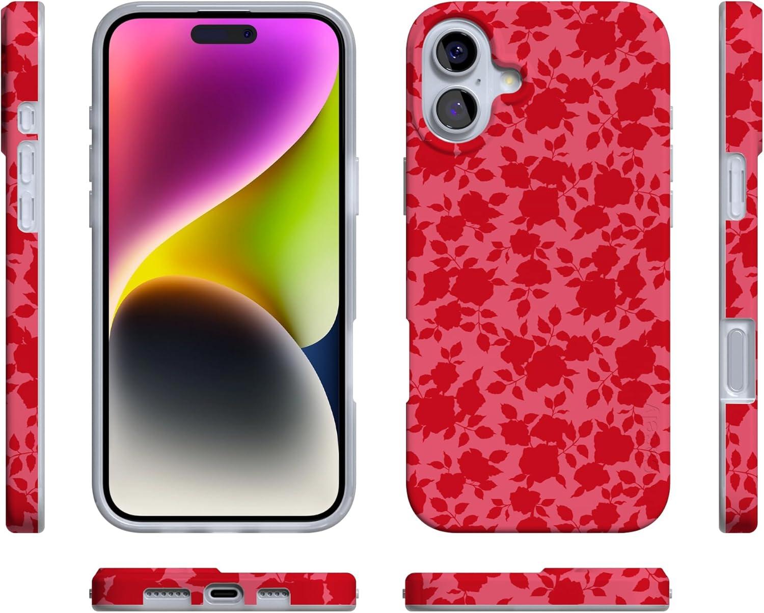 Casely iPhone 16 Case | Nantucket Cottage | Blue Hydrangea | Compatible with MagSafe | Classic Ultra Slim Design(Rose Garden | Red Aesthetic)