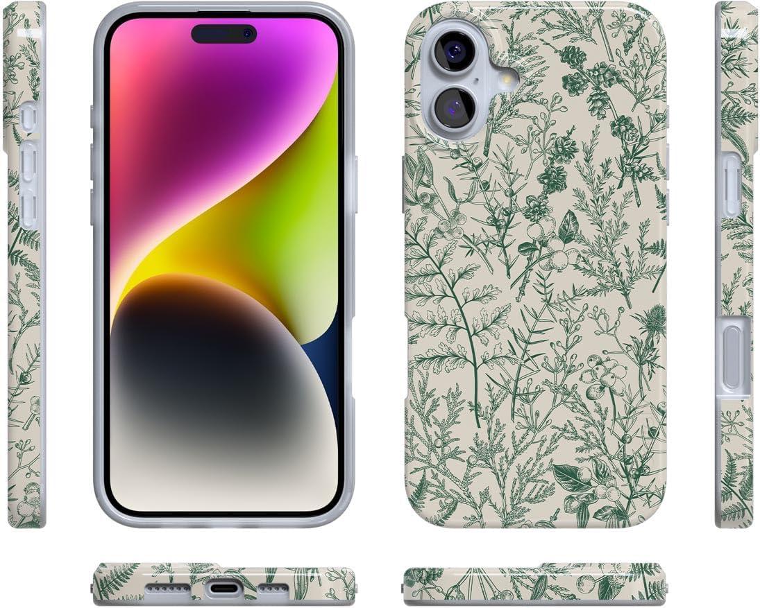 Casely iPhone 16 Case | Nantucket Cottage | Blue Hydrangea | Compatible with MagSafe | Classic Ultra Slim Design(Sage Garden | Green Floral)