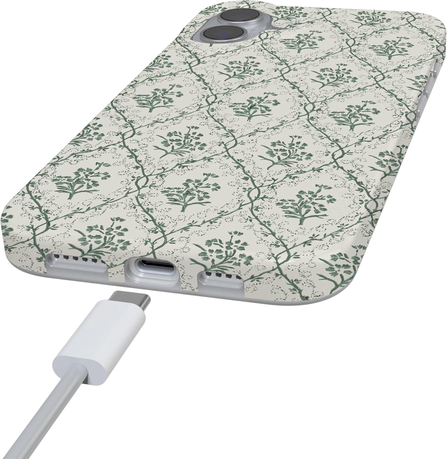 Casely iPhone 16 Case | Nantucket Cottage | Blue Hydrangea | Compatible with MagSafe | Classic Ultra Slim Design(Sage Tapestry | Floral Vines)