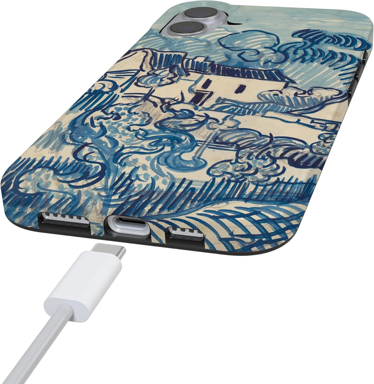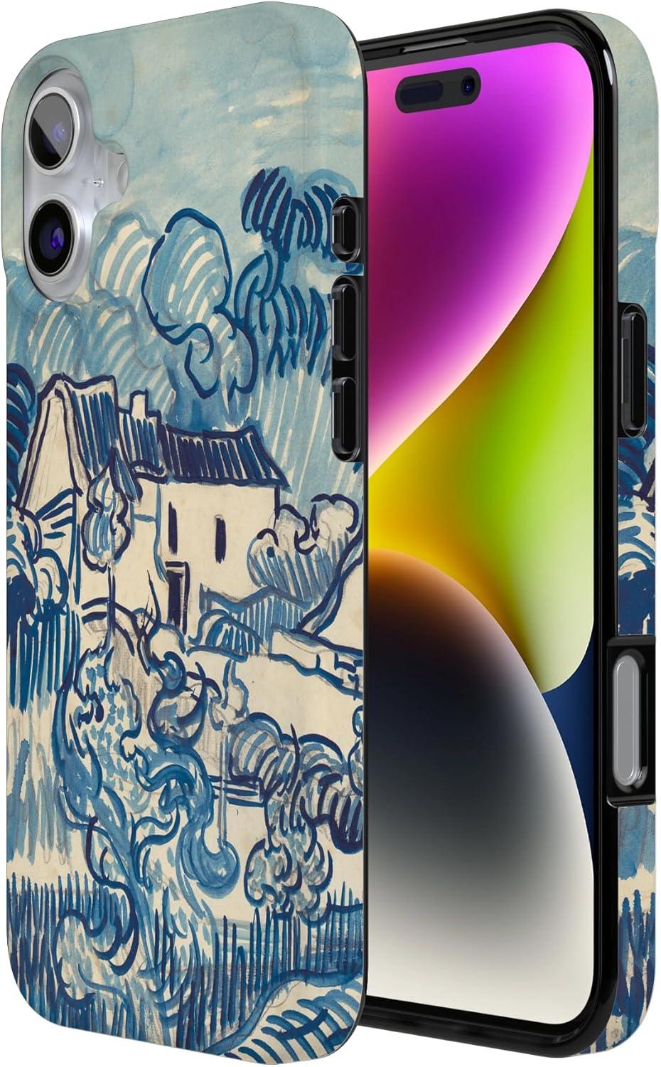 Casely iPhone 16 Case | Nantucket Cottage | Blue Hydrangea | Compatible with MagSafe | Classic Ultra Slim Design(Van Gogh | Landscape With Houses)