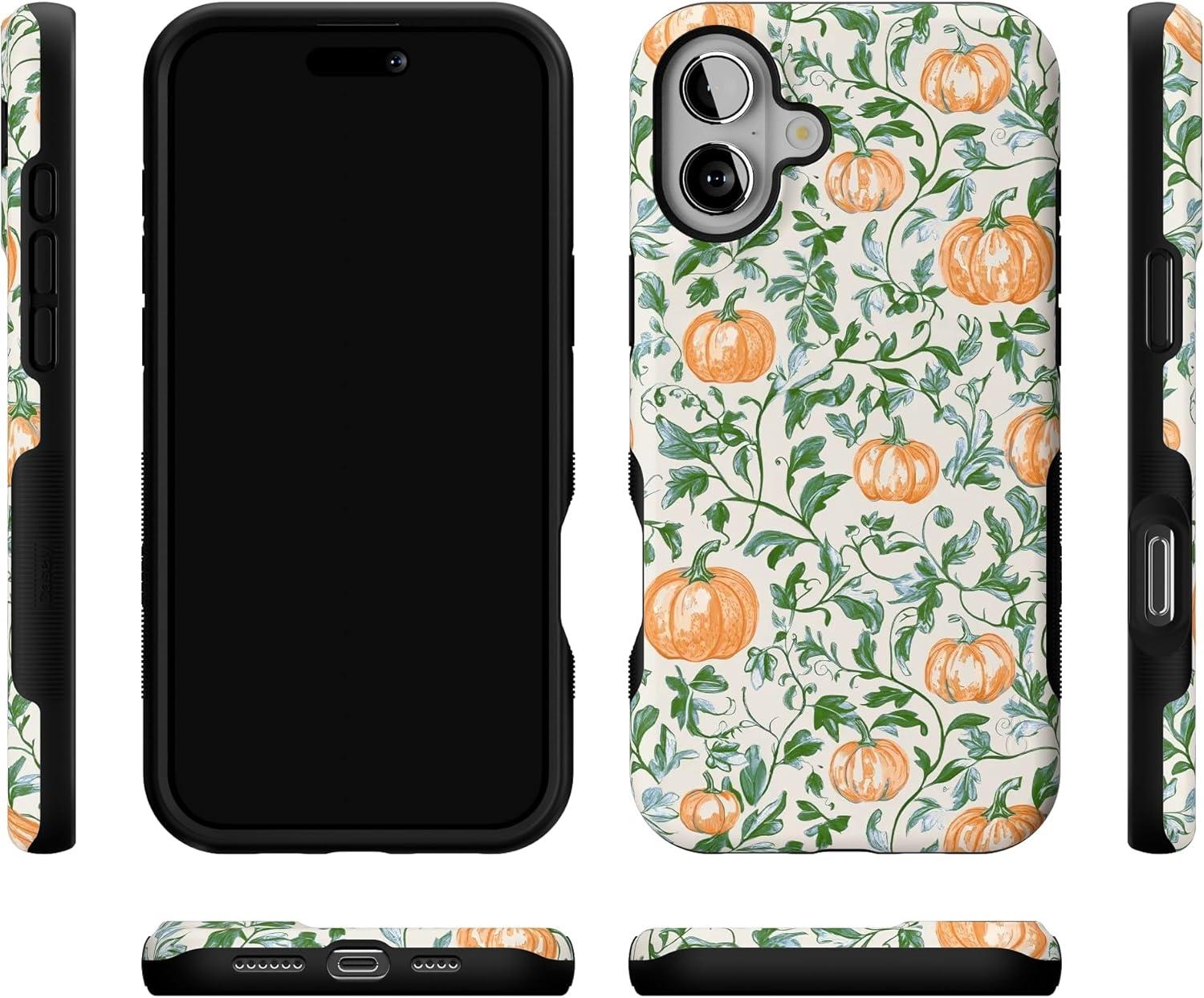 Casely iPhone 16 Case | Pumpkin Patch | Green Vines | Compatible with MagSafe | Bold Protective Design