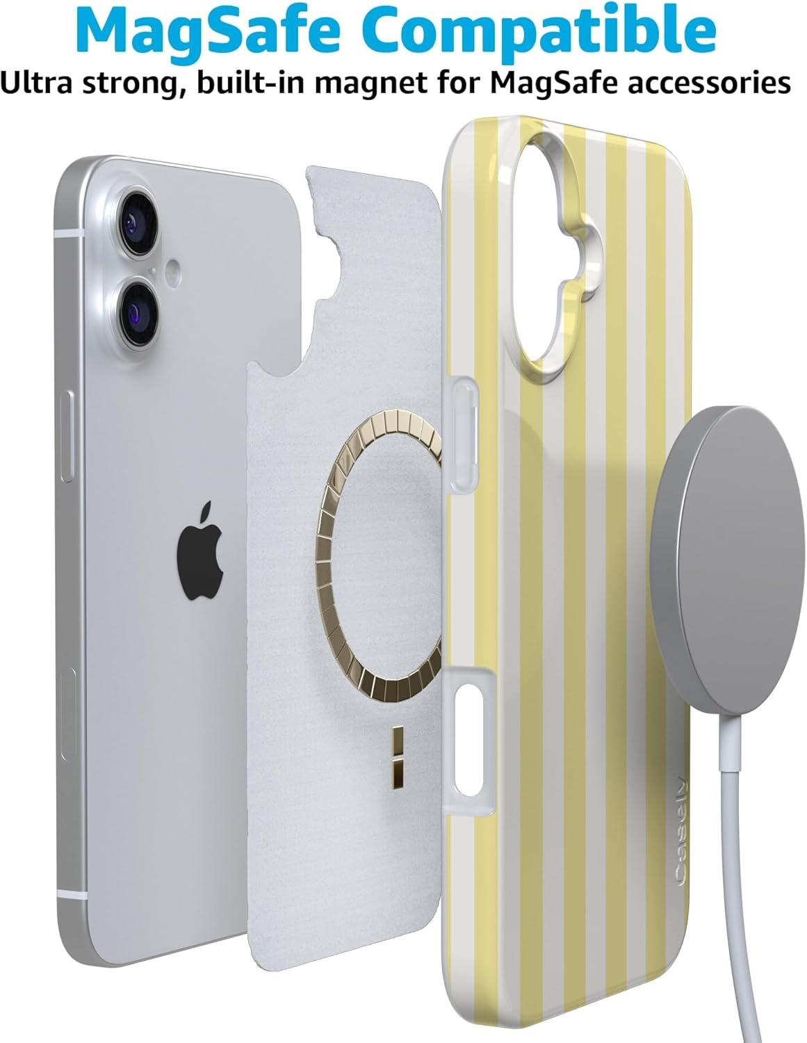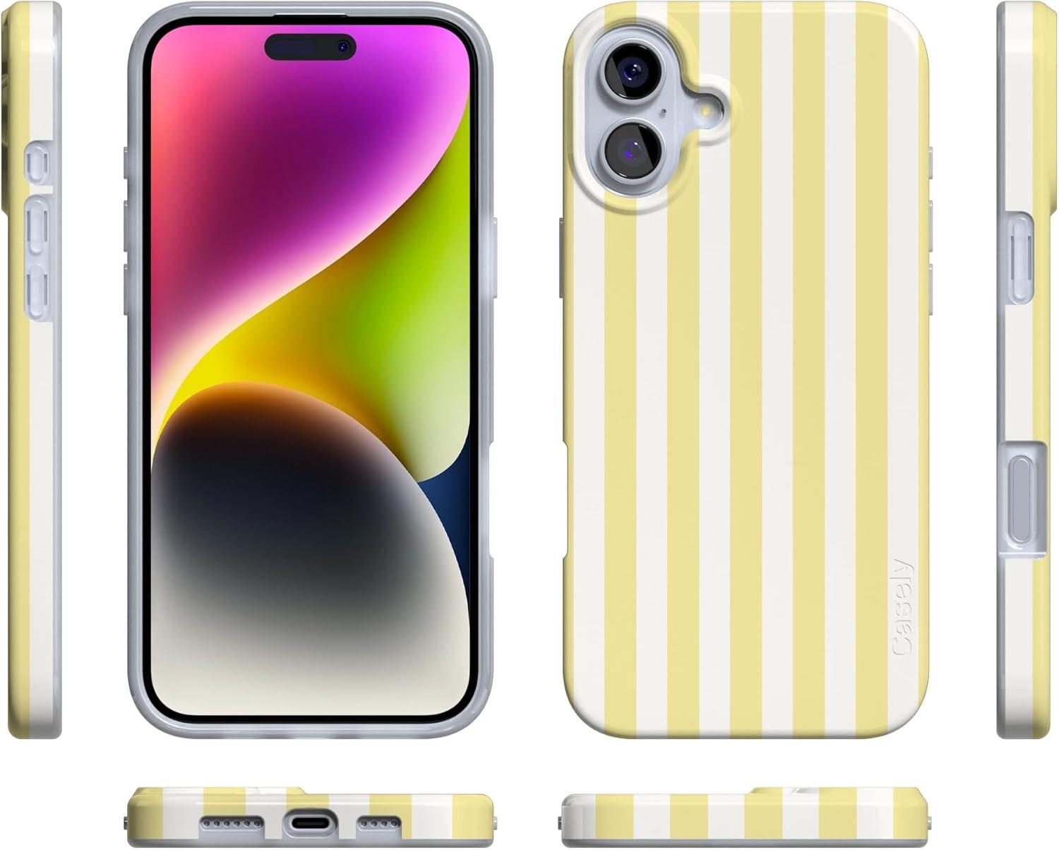 Casely iPhone 16 Case | Van Gogh | Head of a Skeleton with a Burning Cigarette Phone | Classic Ultra-Slim Design | Compatible with MagSafe(Butter Yellow Stripes | Sunday Best)