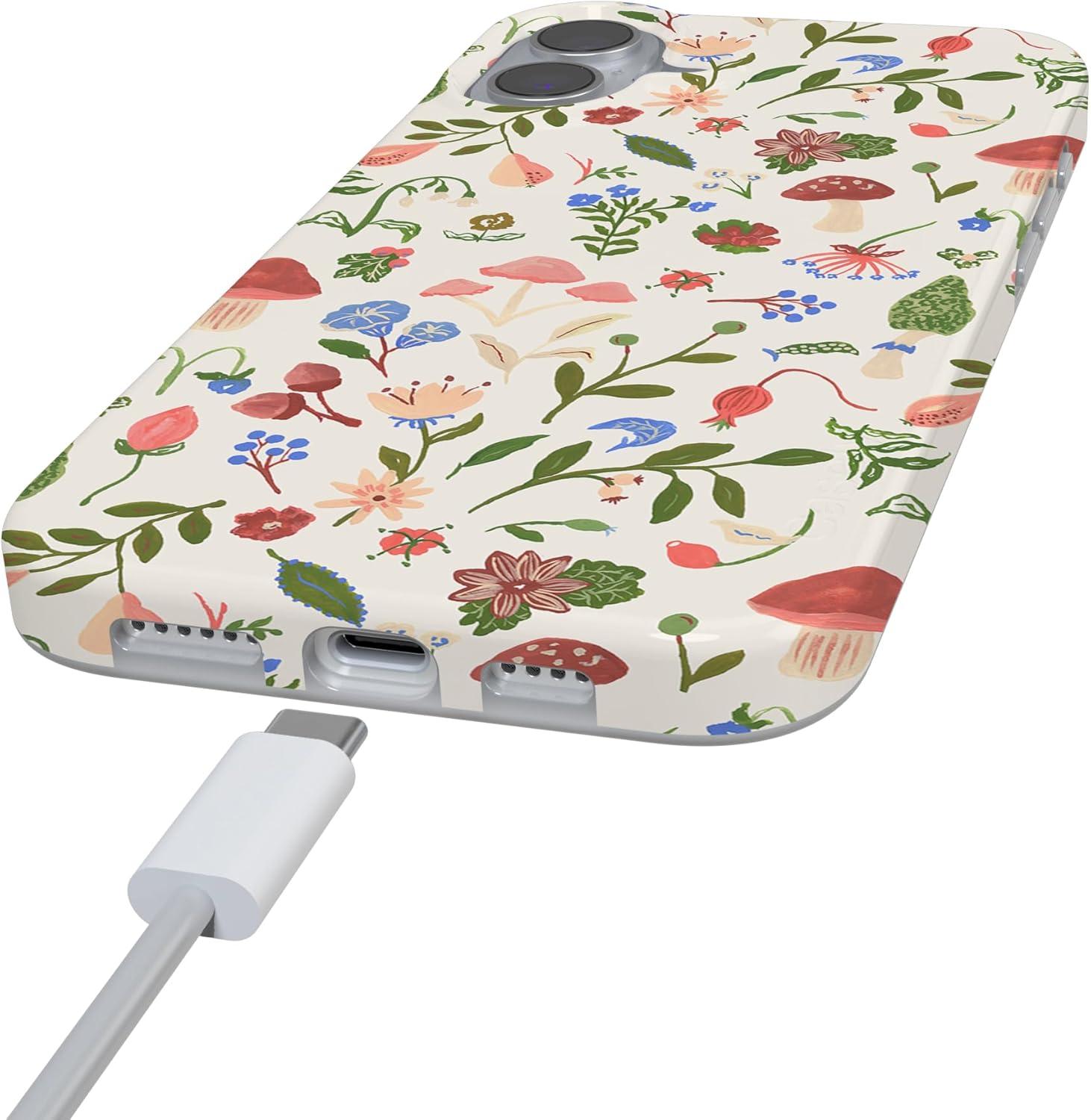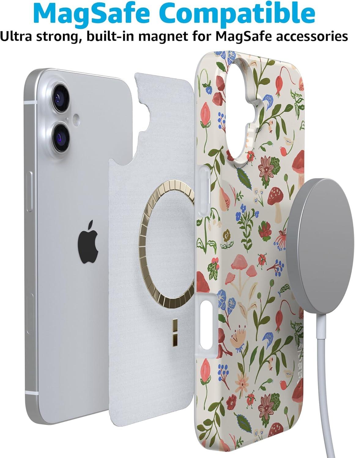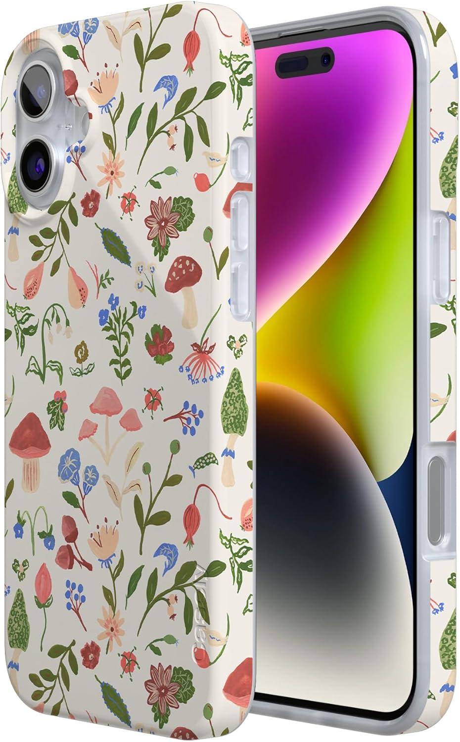 Casely iPhone 16 Case | Van Gogh | Head of a Skeleton with a Burning Cigarette Phone | Classic Ultra-Slim Design | Compatible with MagSafe(Garden Party | Mushroom Floral)