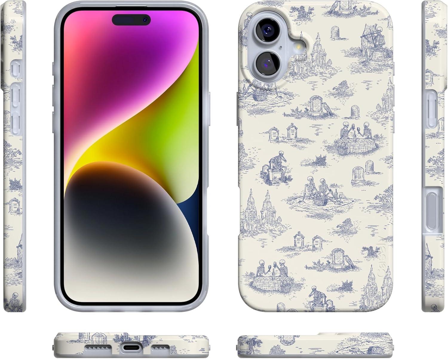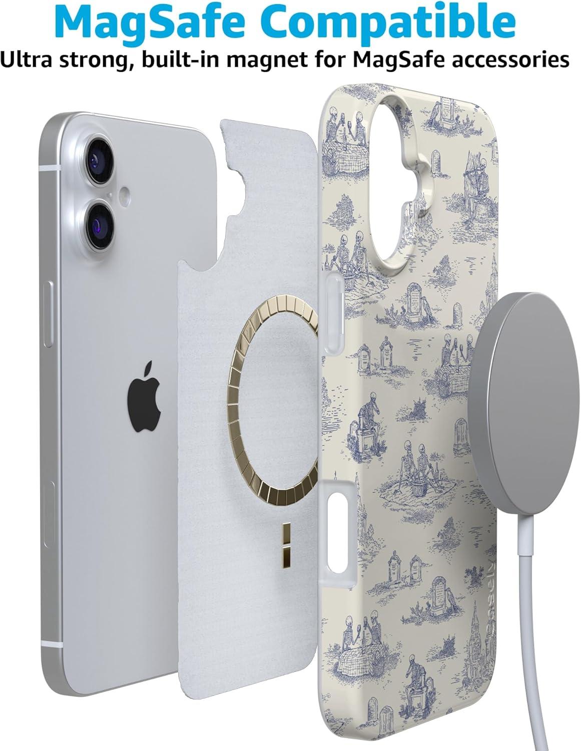 Casely iPhone 16 Case | Van Gogh | Head of a Skeleton with a Burning Cigarette Phone | Classic Ultra-Slim Design | Compatible with MagSafe(Graveyard Gathering | Skeleton Picnic)
