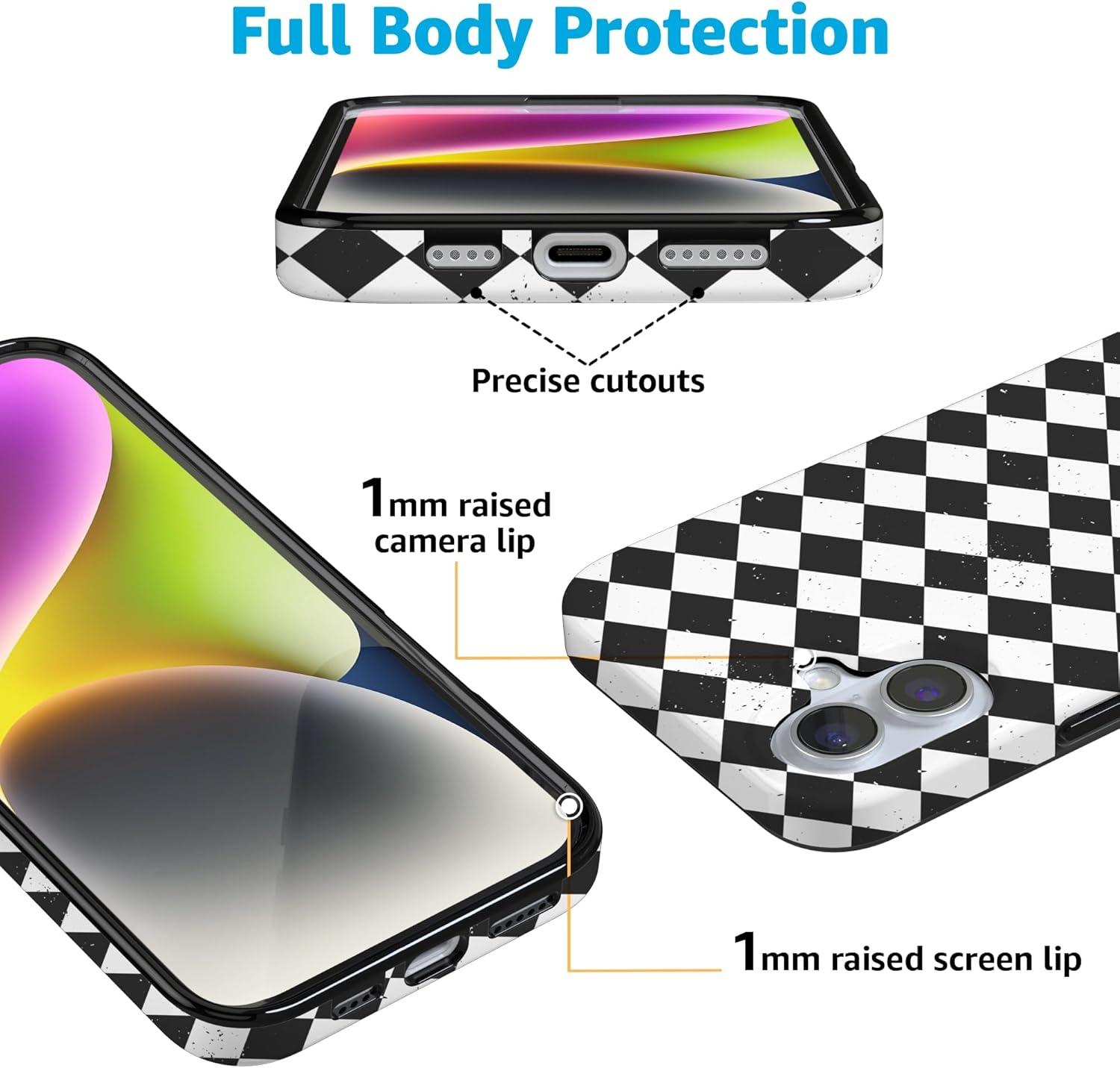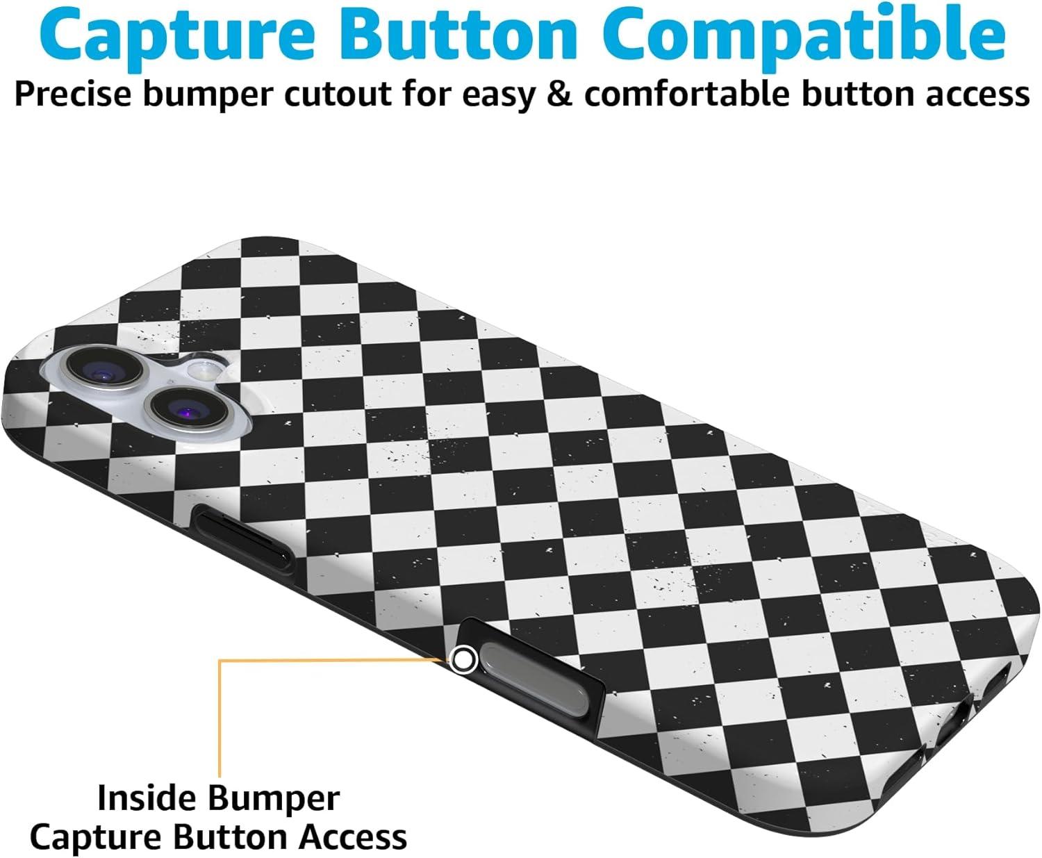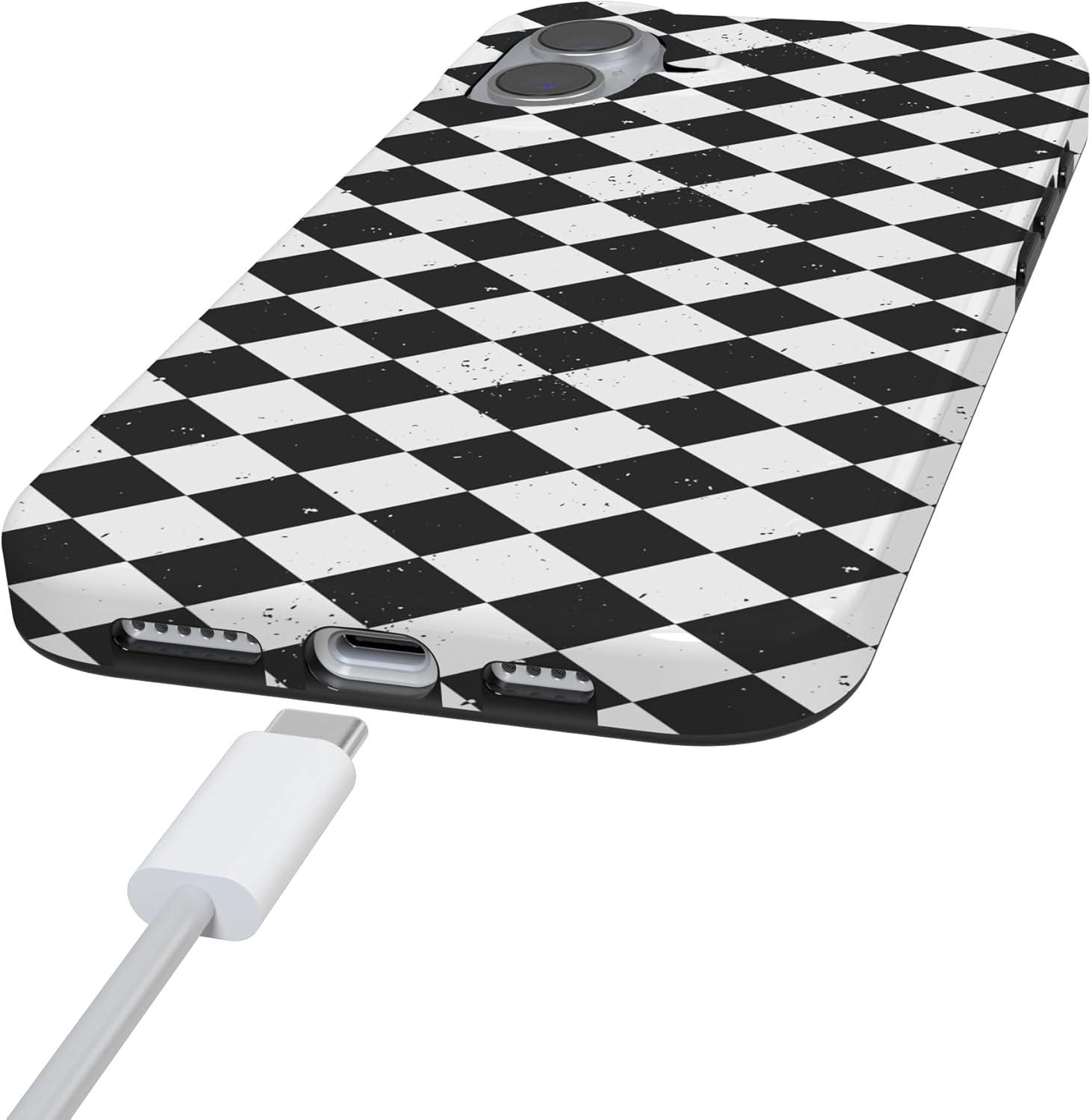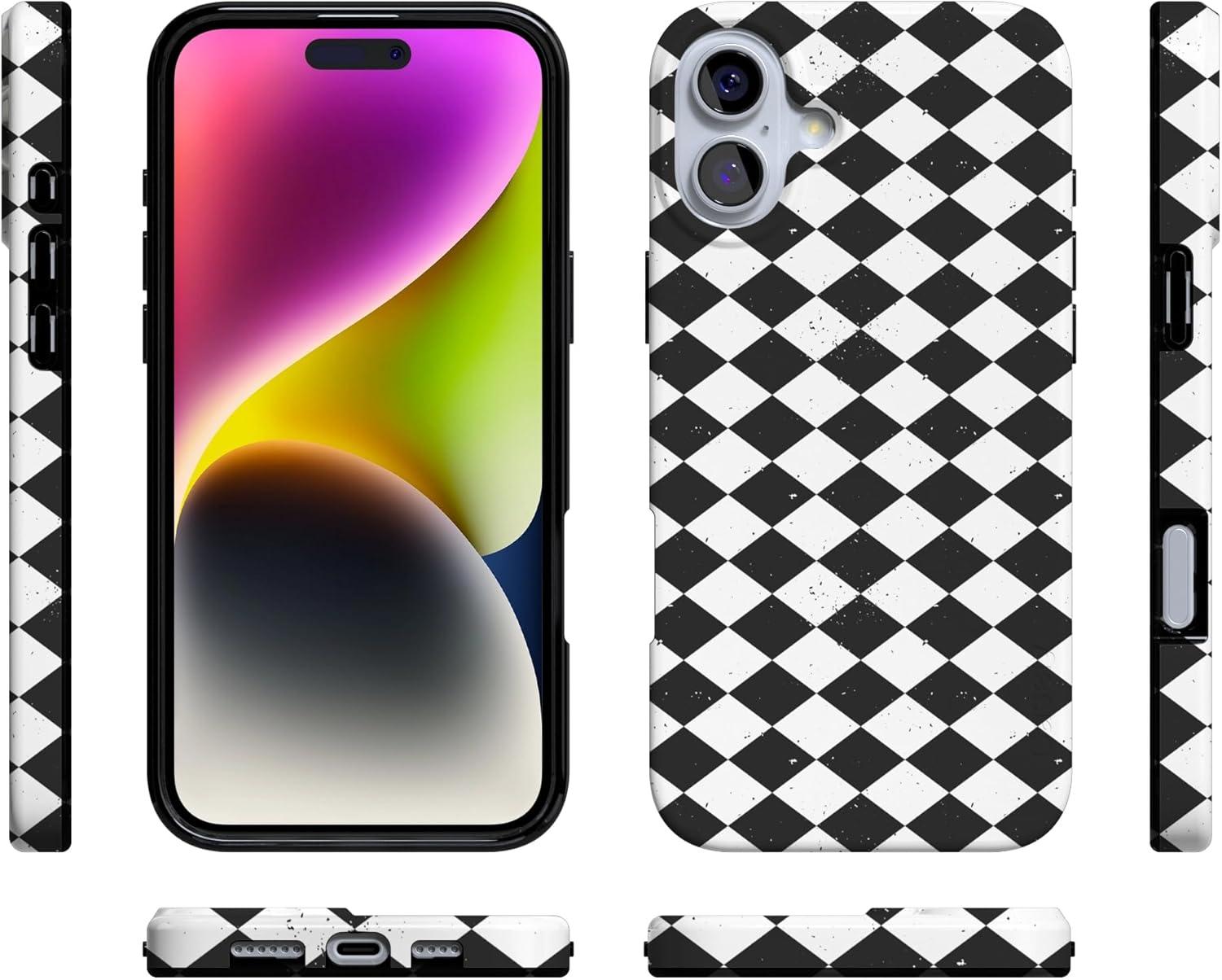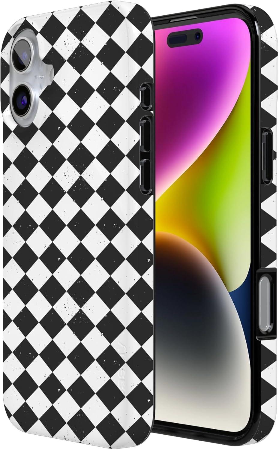 Casely iPhone 16 Case | Van Gogh | Head of a Skeleton with a Burning Cigarette Phone | Classic Ultra-Slim Design | Compatible with MagSafe(Harlequin Salem Diamond | Black and White)