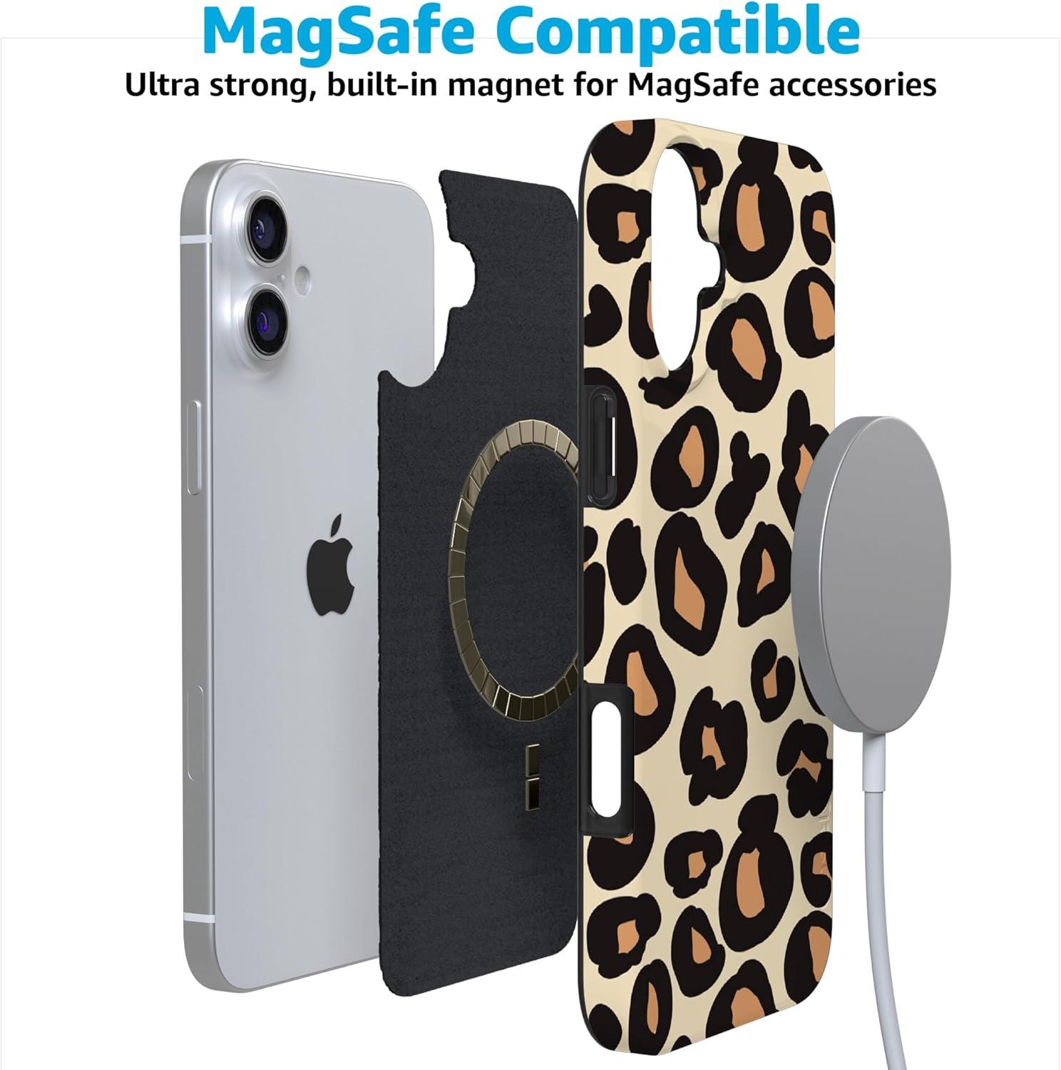 Casely iPhone 16 Case | Van Gogh | Head of a Skeleton with a Burning Cigarette Phone | Classic Ultra-Slim Design | Compatible with MagSafe(Into the Wild | Leopard Print)