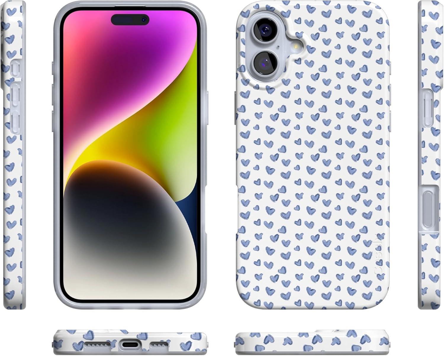 Casely iPhone 16 Case | Van Gogh | Head of a Skeleton with a Burning Cigarette Phone | Classic Ultra-Slim Design | Compatible with MagSafe(Lovebug | Blue Hearts)